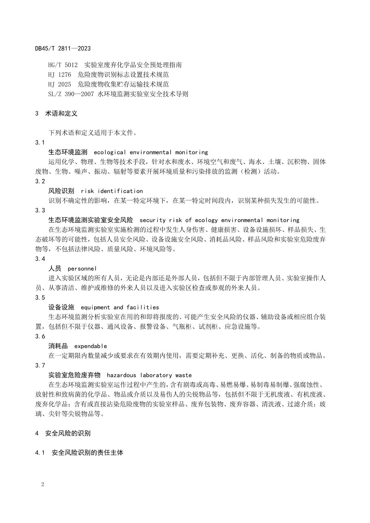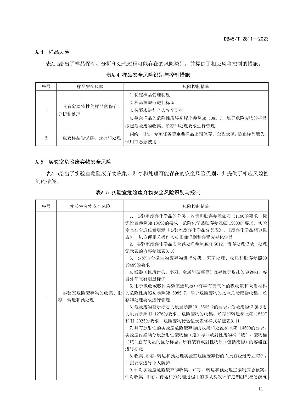 《生态环境监测实验室安全风险识别与控制指南》(DB45/T 2811-2023)