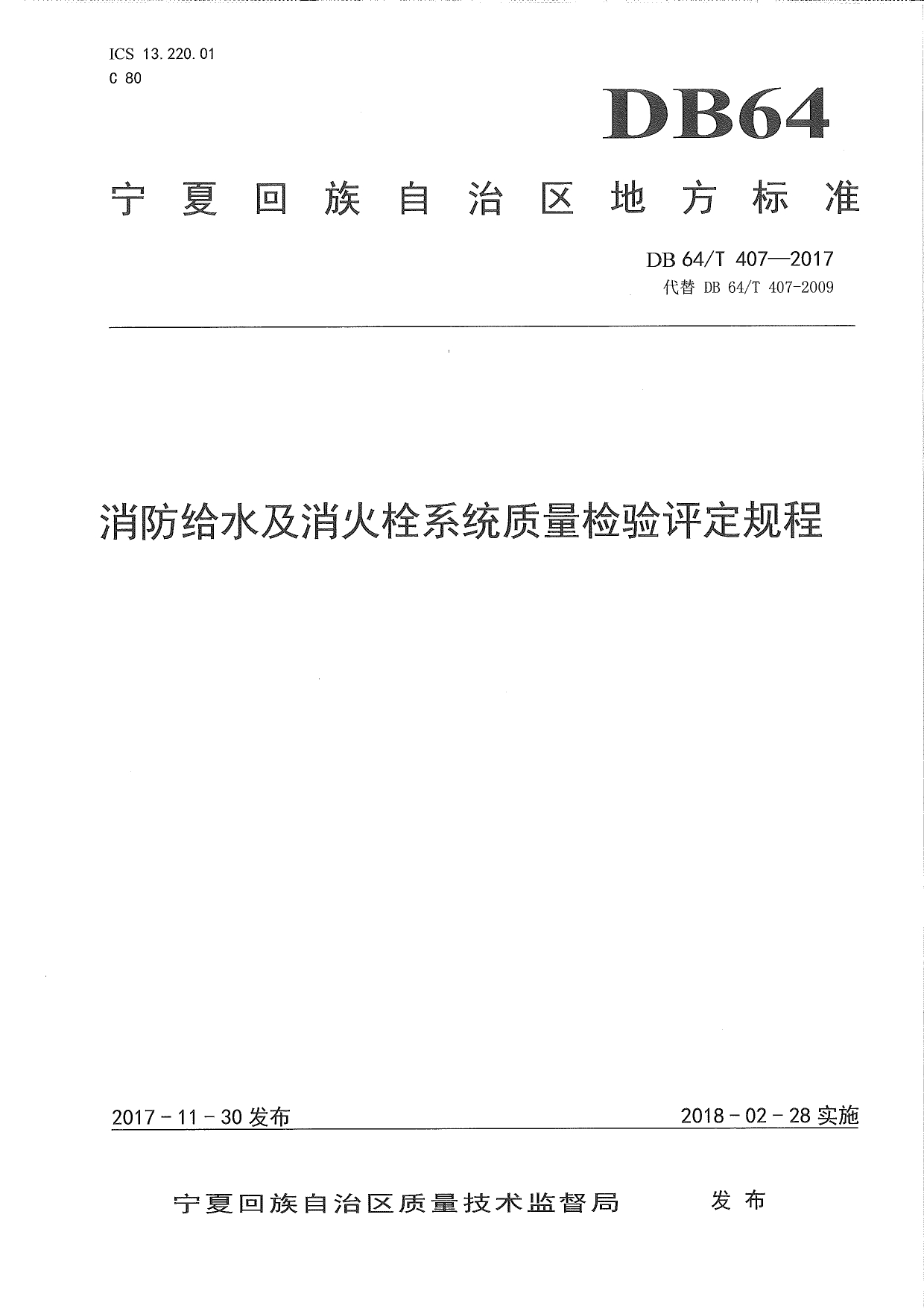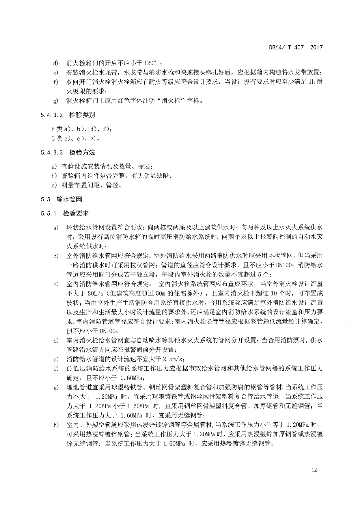 消防给水及消火栓系统质量检验评定规程DB64/T 407-2017