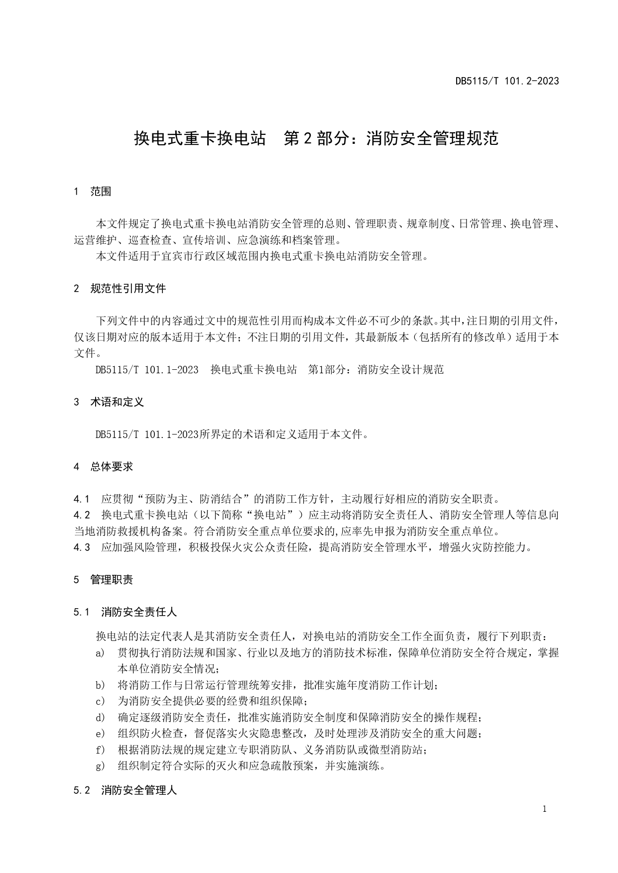换电式重卡换电站 第2部分:消防安全管理规范DB5115/T 101.2—2023