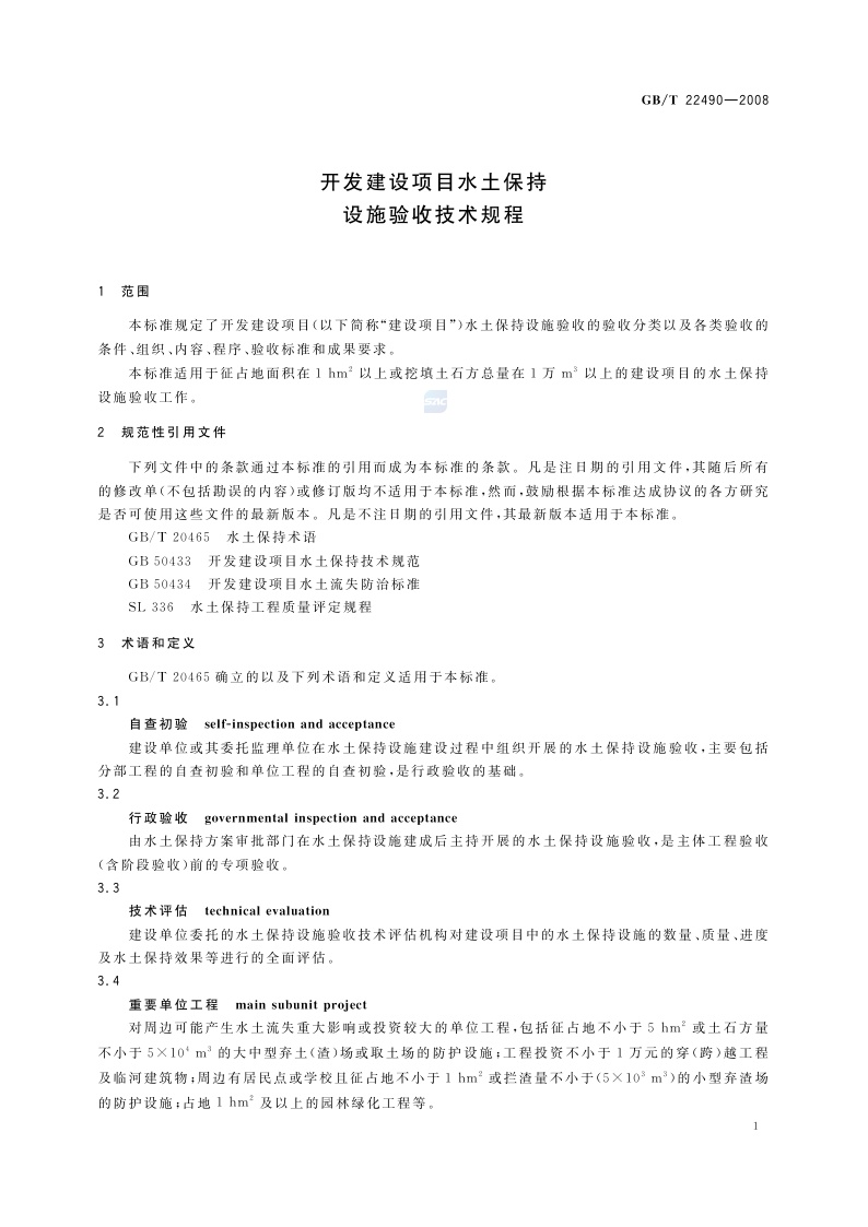 《开发建设项目水土保持设施验收技术规程》(GB/T 22490-2008)