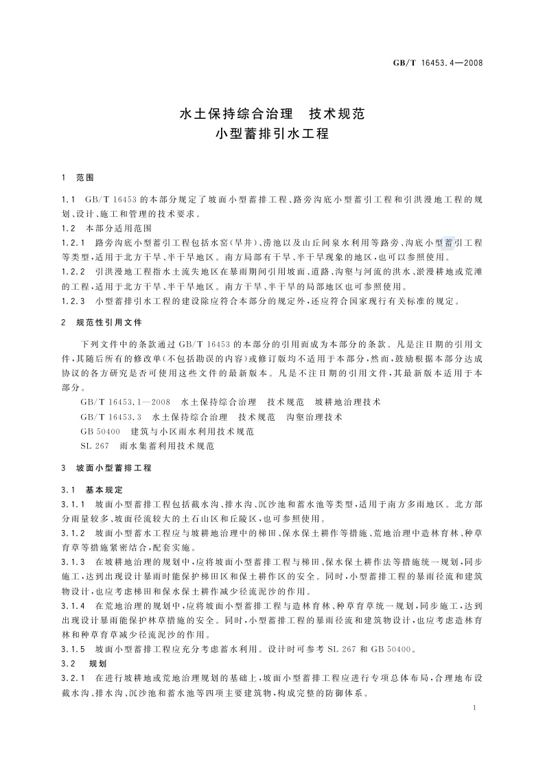 《水土保持综合治理 技术规范 小型蓄排引水工程》(GB/T 16453.4-2008)
