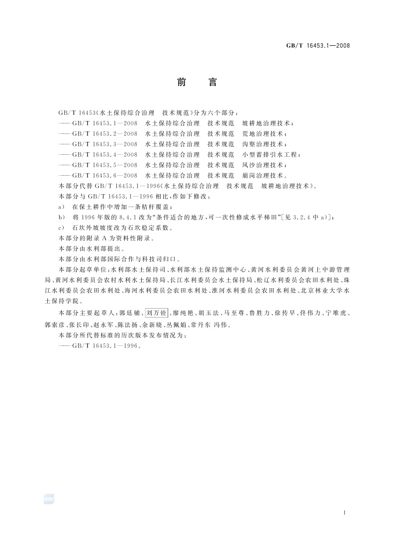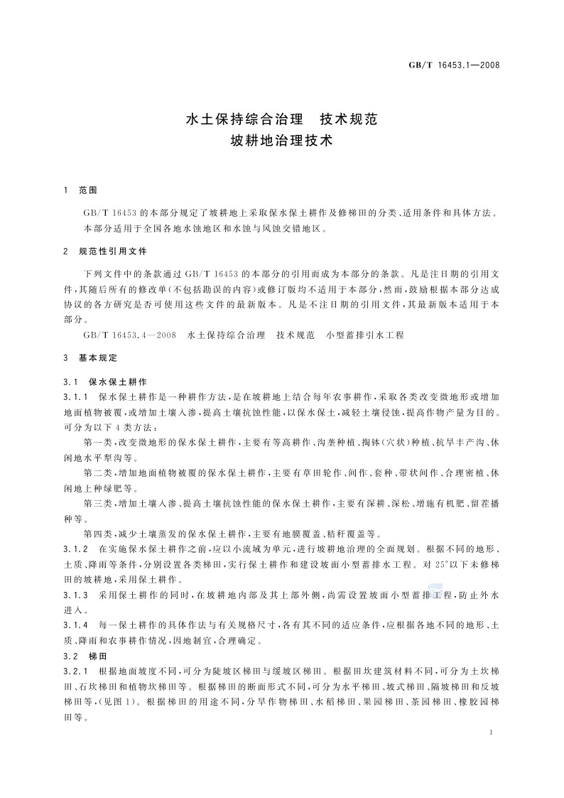 《水土保持综合治理 技术规范 坡耕地治理技术》(GB/T 16453.1-2008)