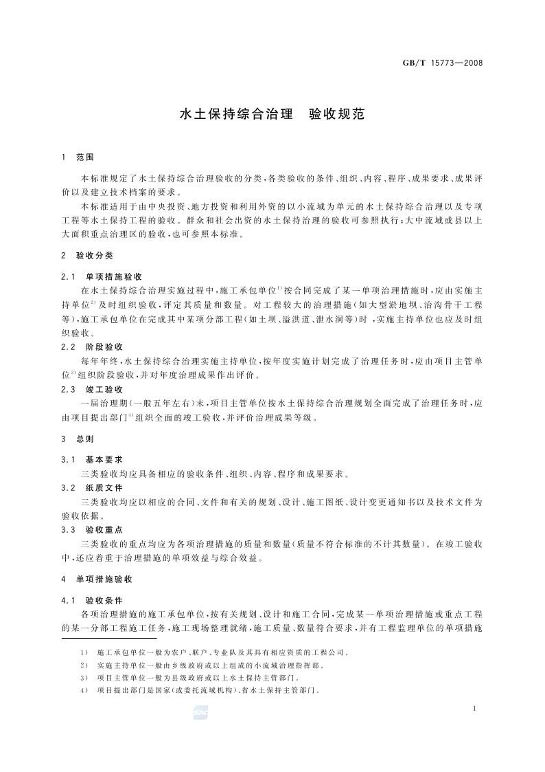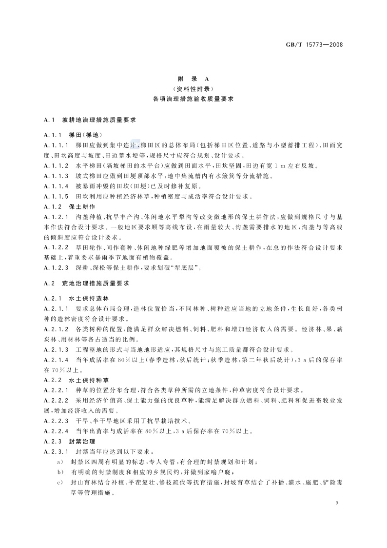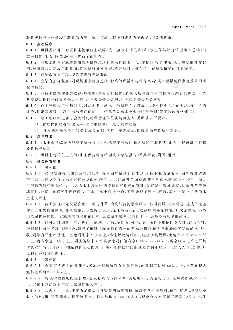 《水土保持综合治理 验收规范》(GB/T 15773-2008)
