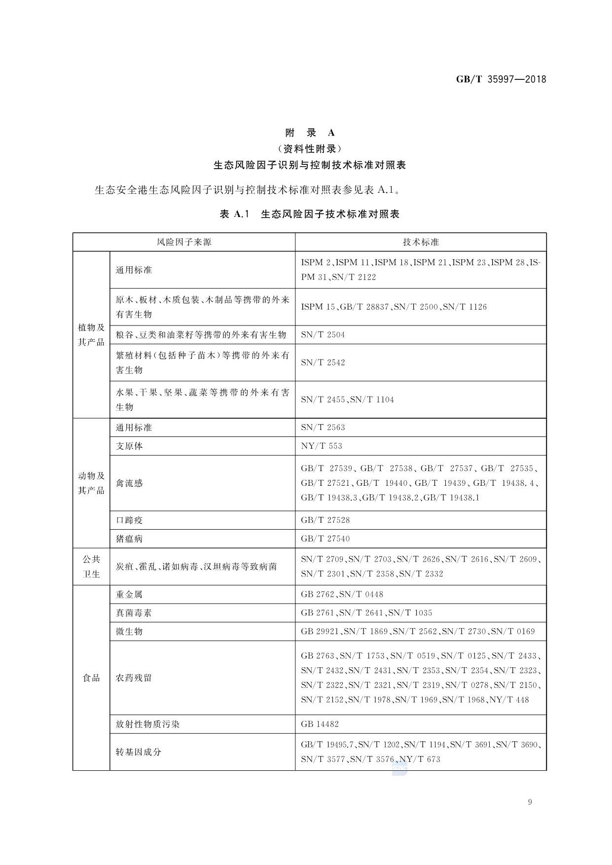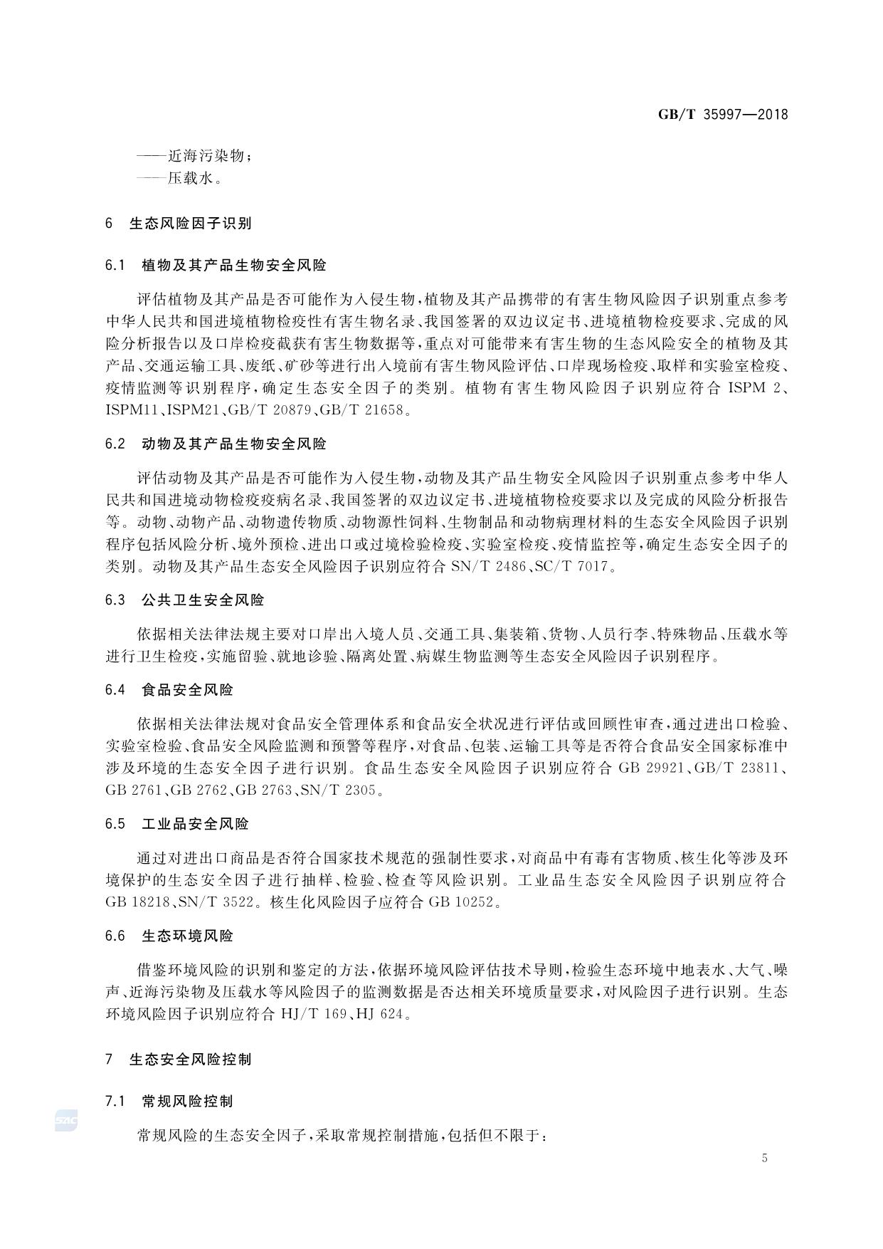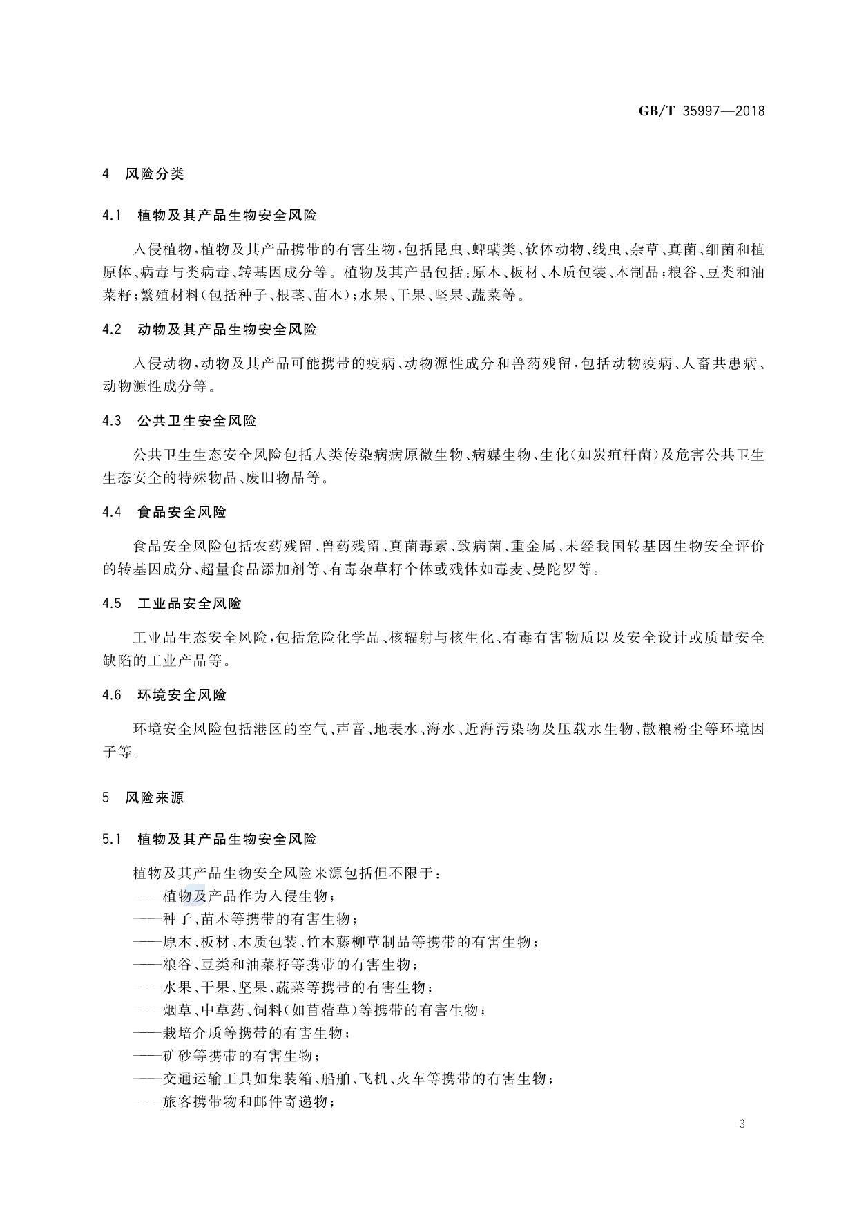 《生态安全港 生态风险因子分类、识别与控制》(GB/T 35997-2018)