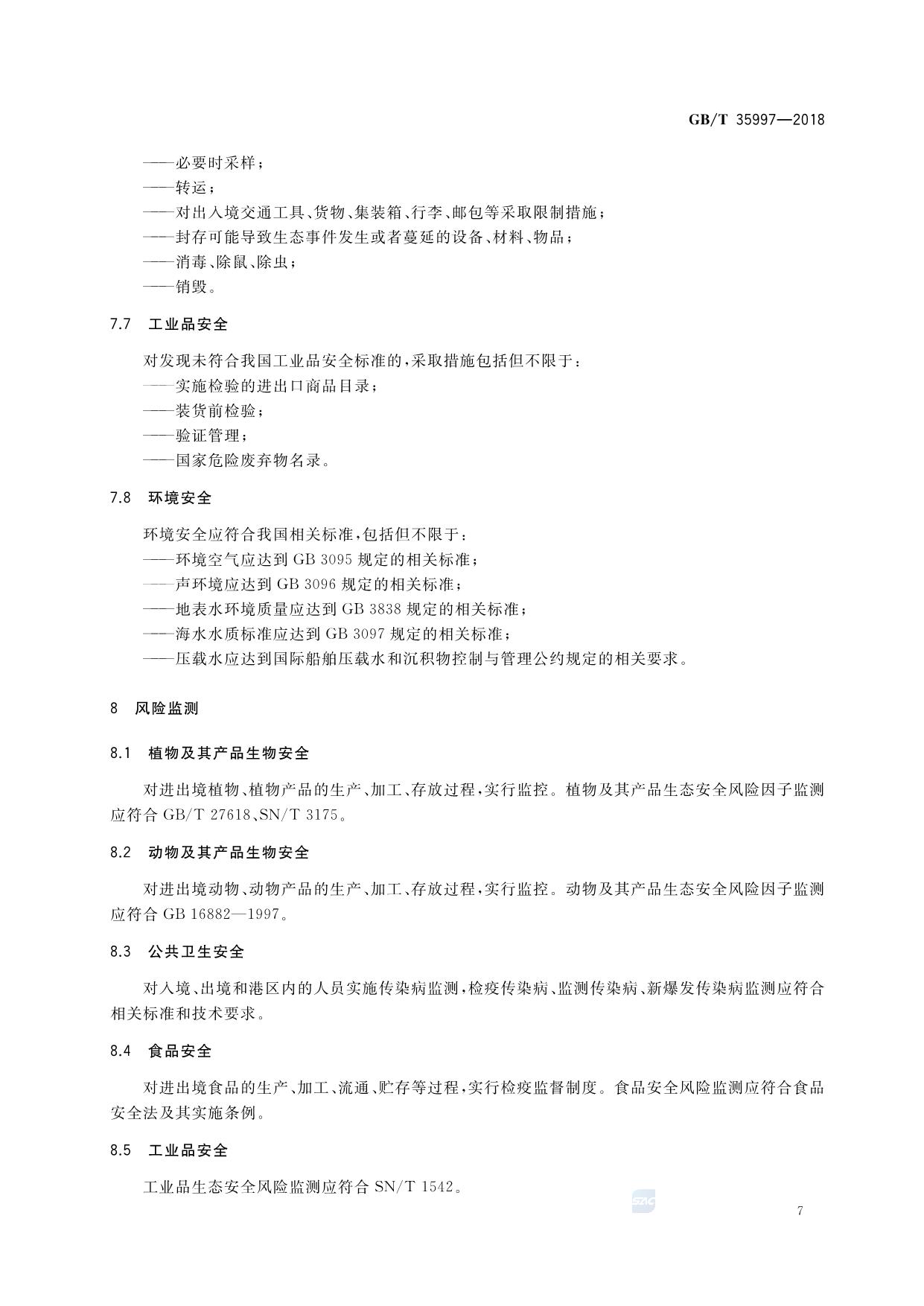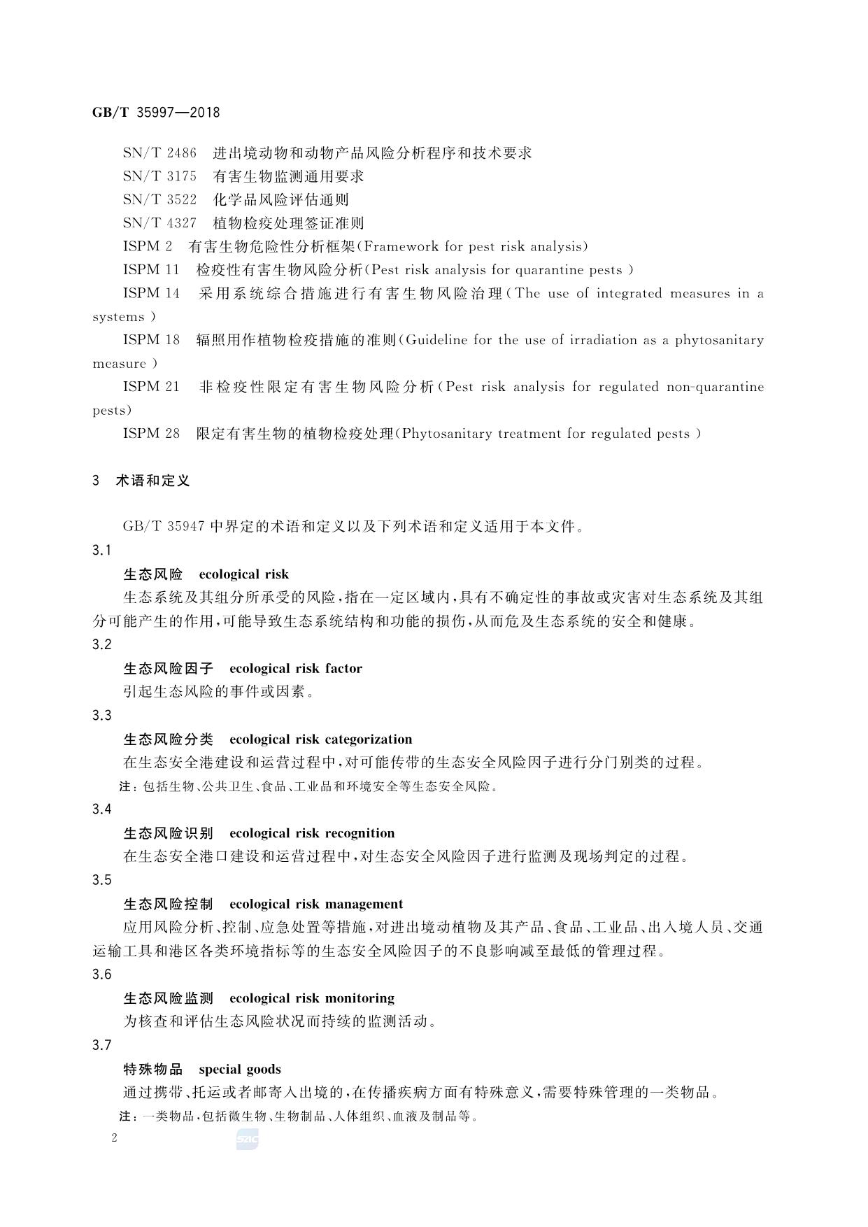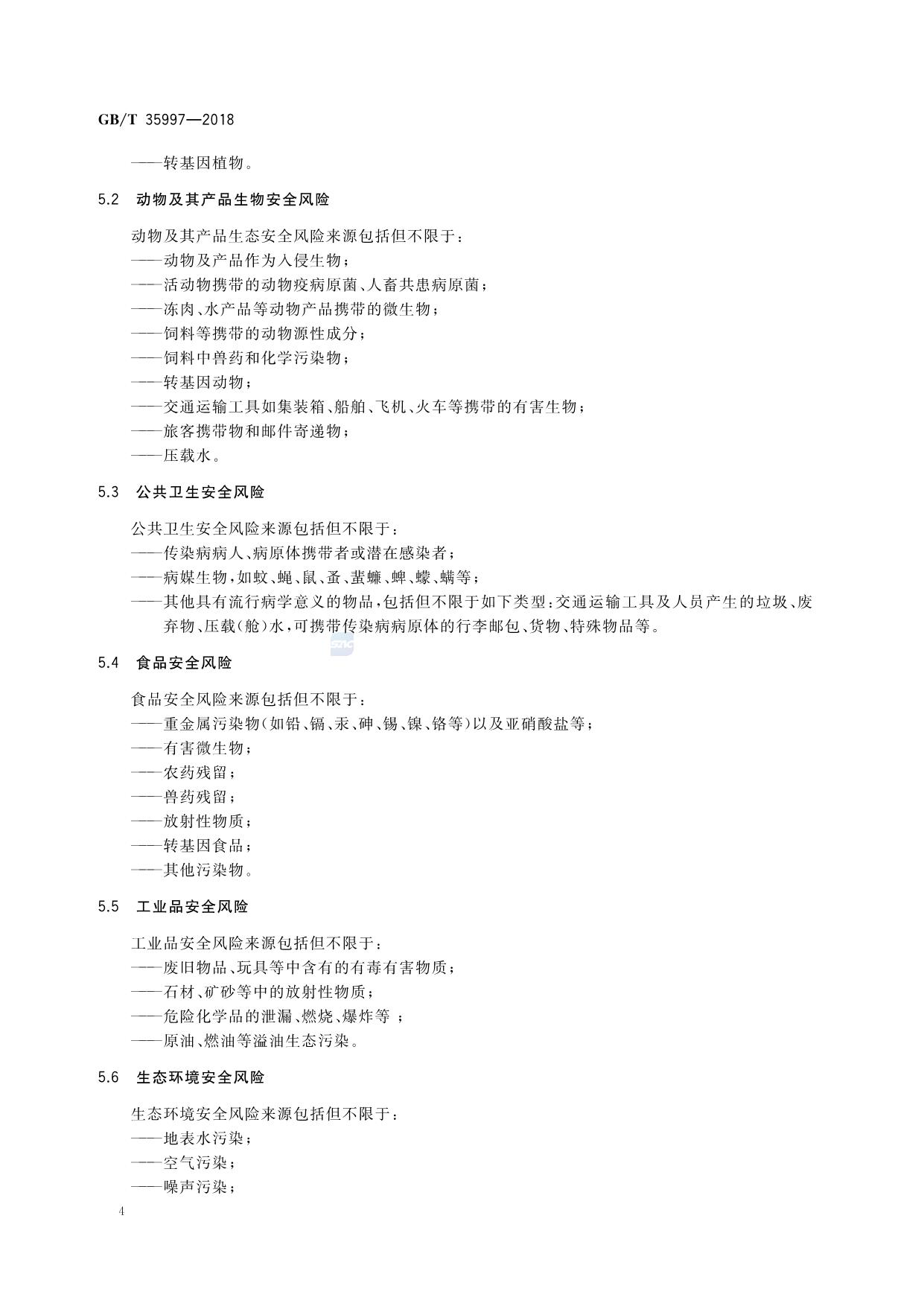 《生态安全港 生态风险因子分类、识别与控制》(GB/T 35997-2018)