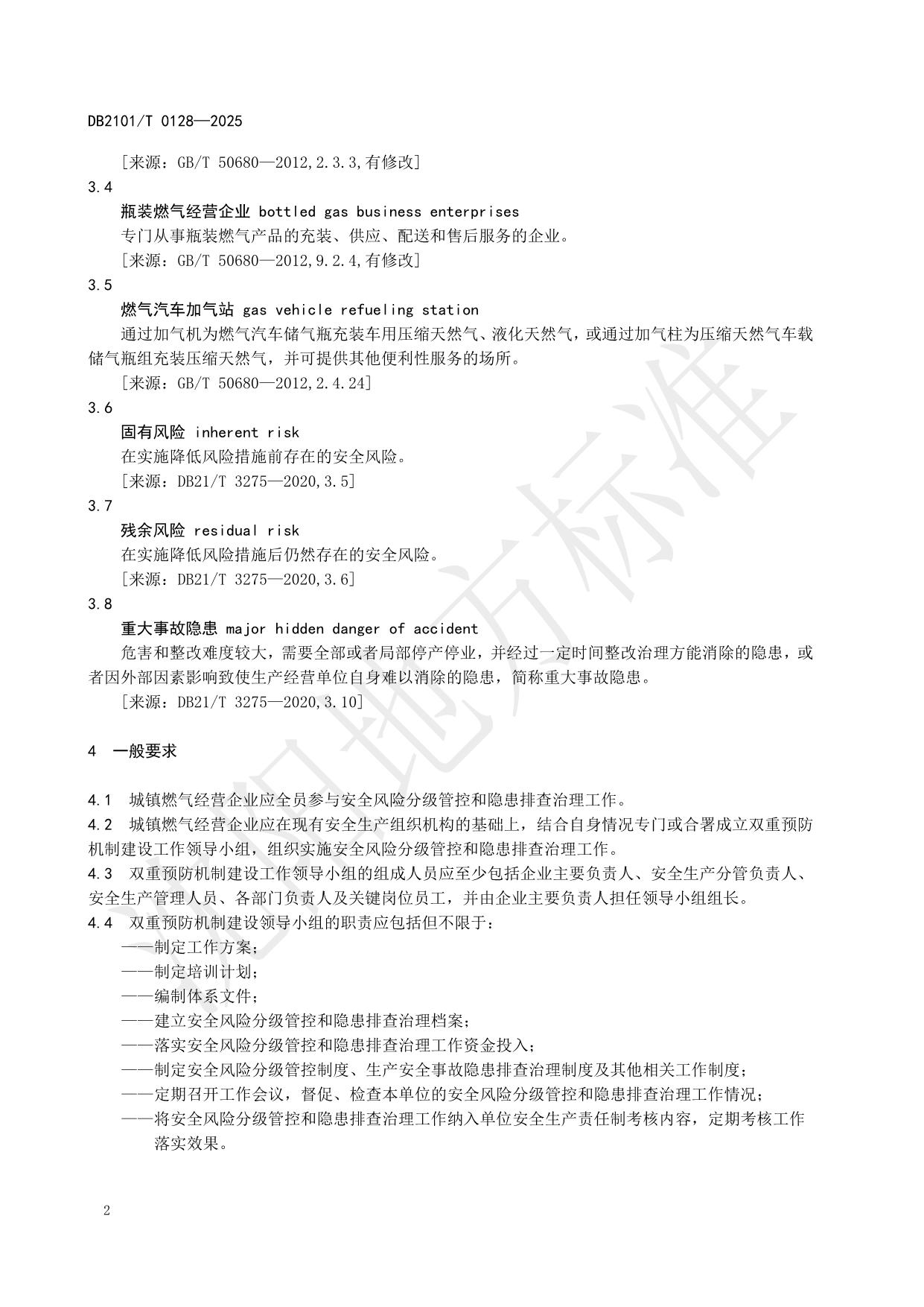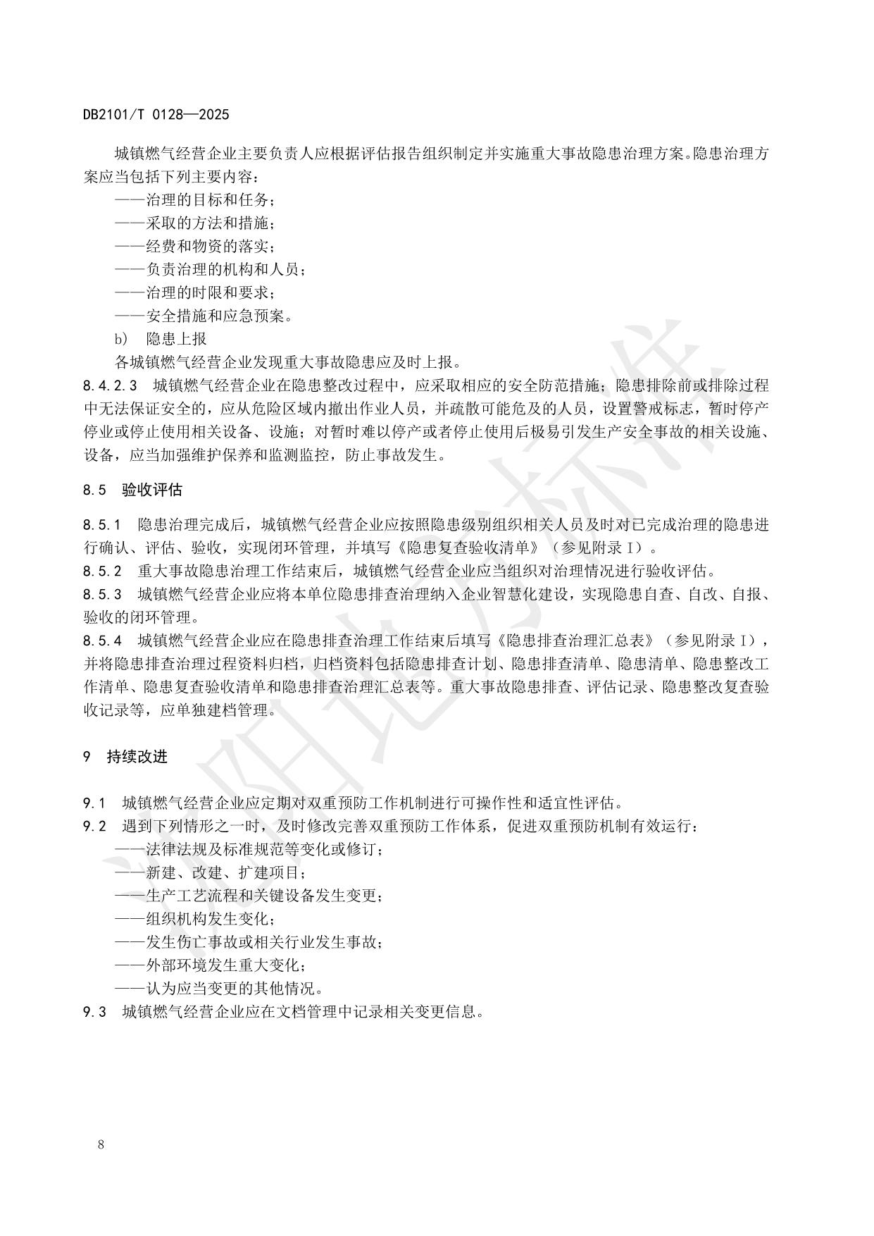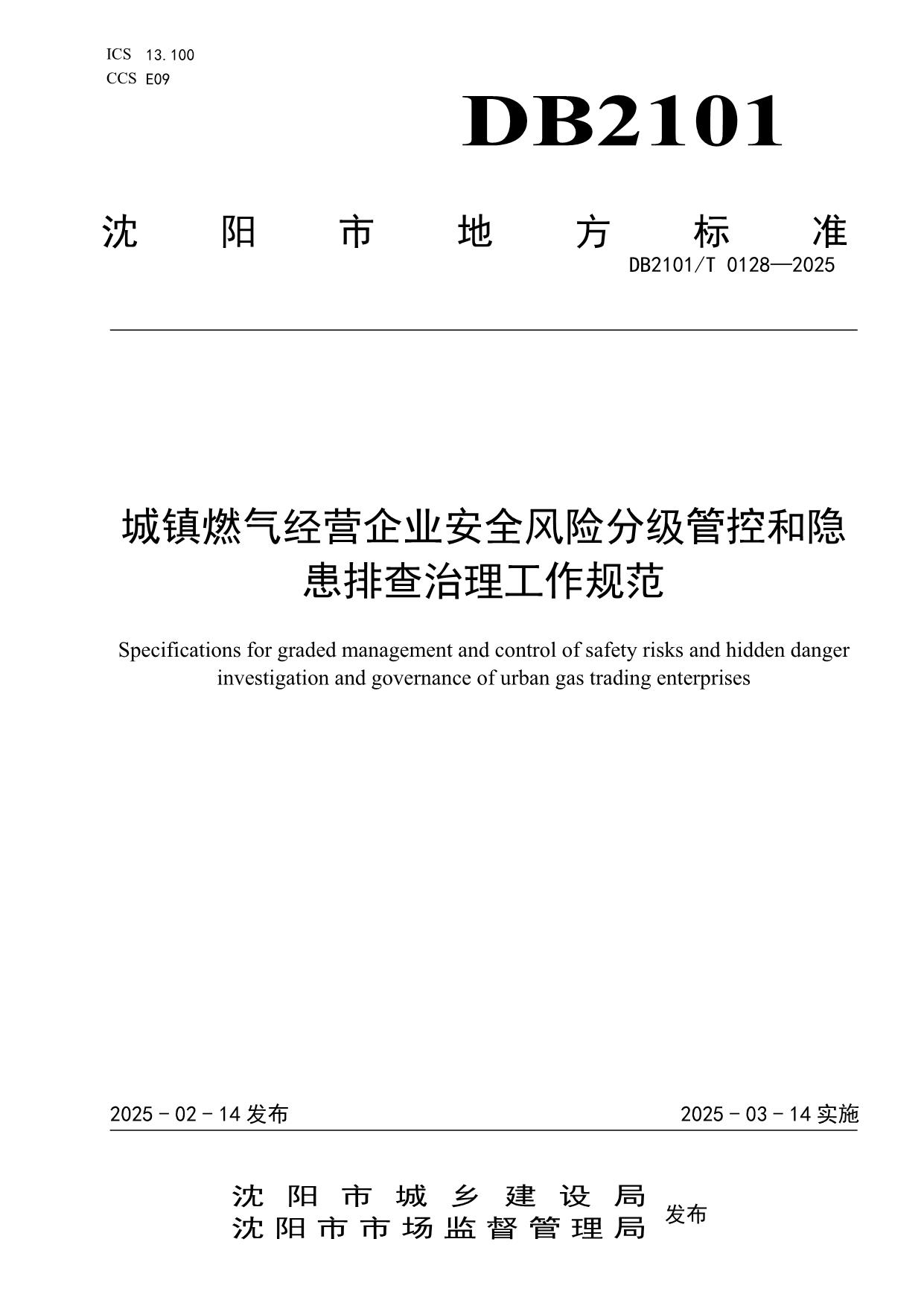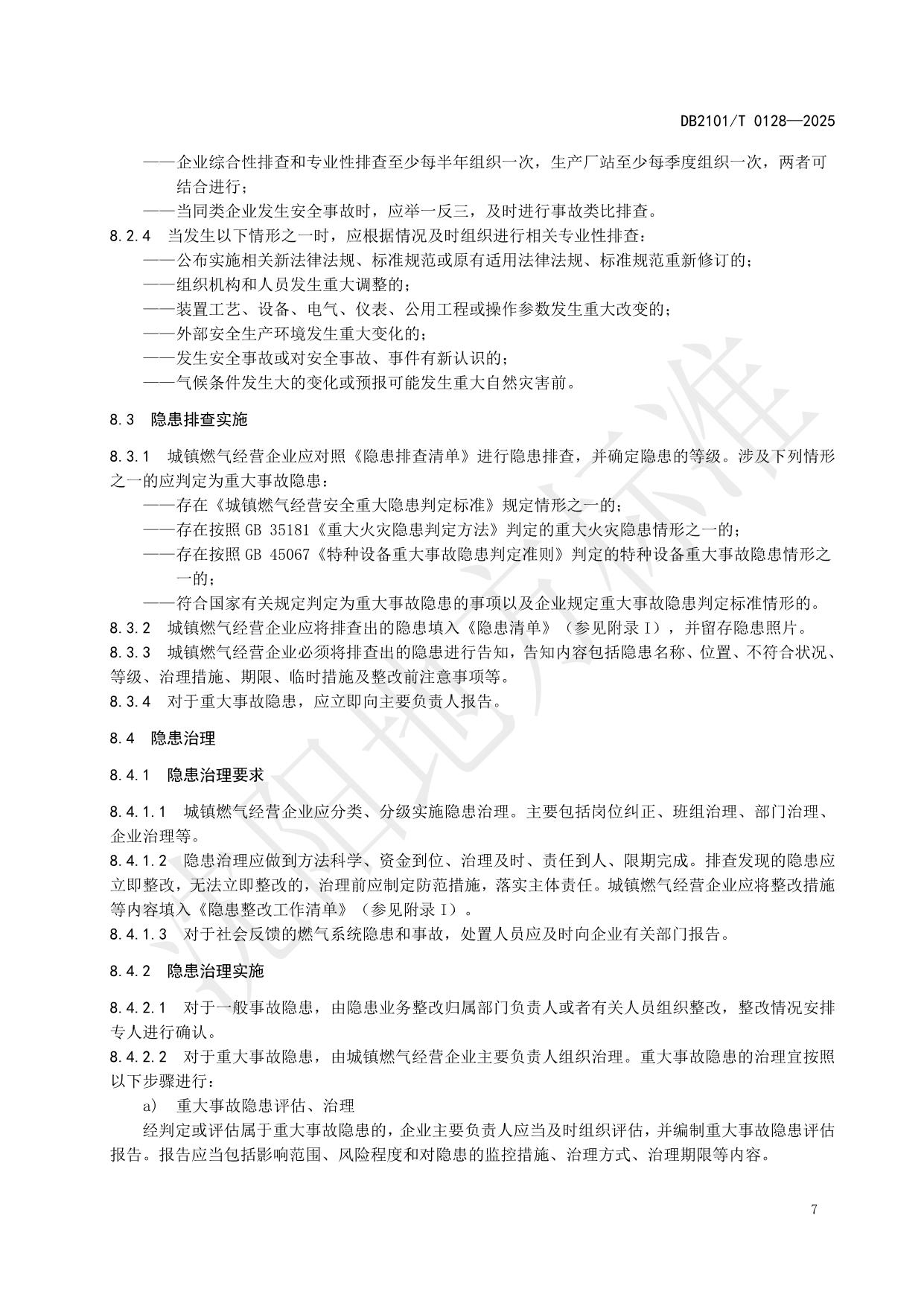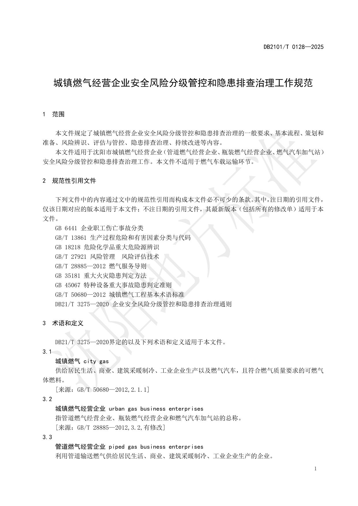 《城镇燃气经营企业安全风险分级管控和隐患排查治理工作规范》(DB2101/T 0128—2025)