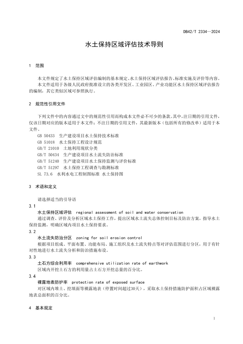 《水土保持区域评估技术导则》(DB42/T 2334-2024)