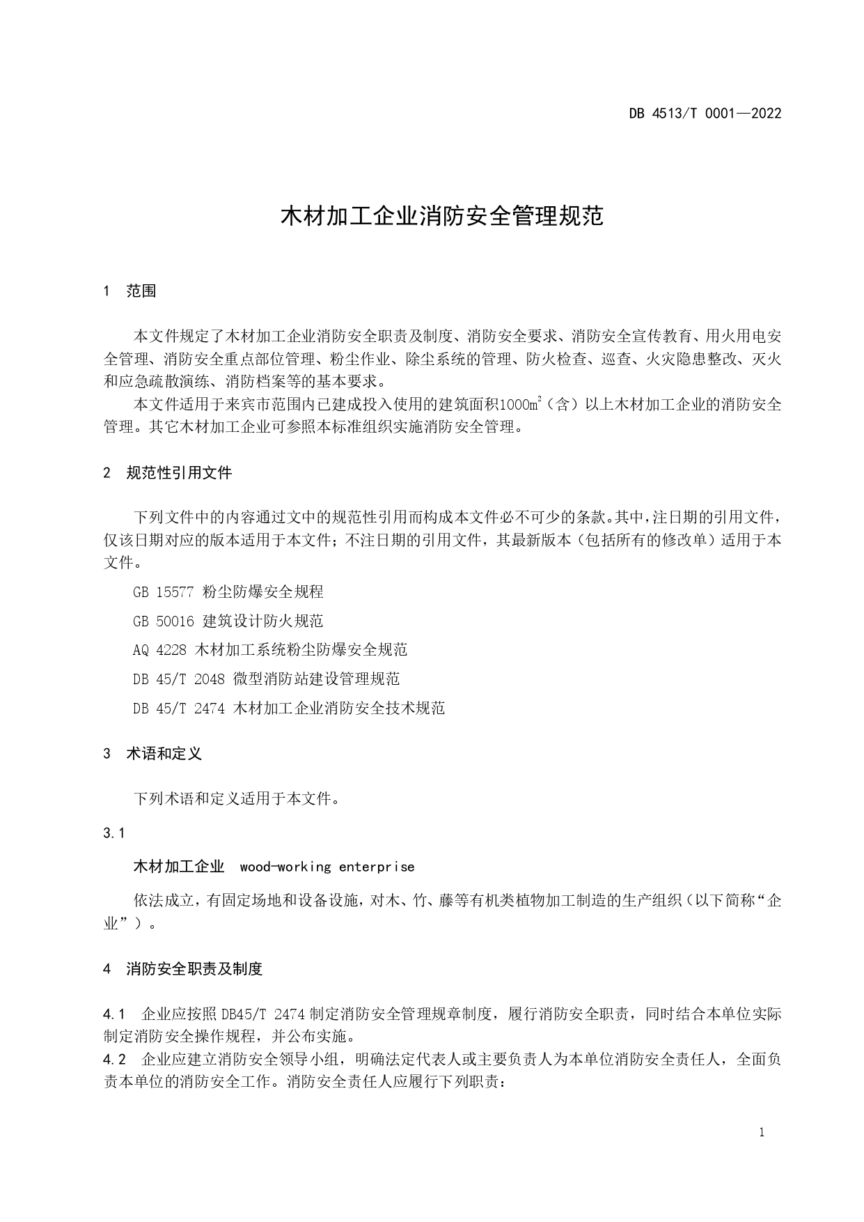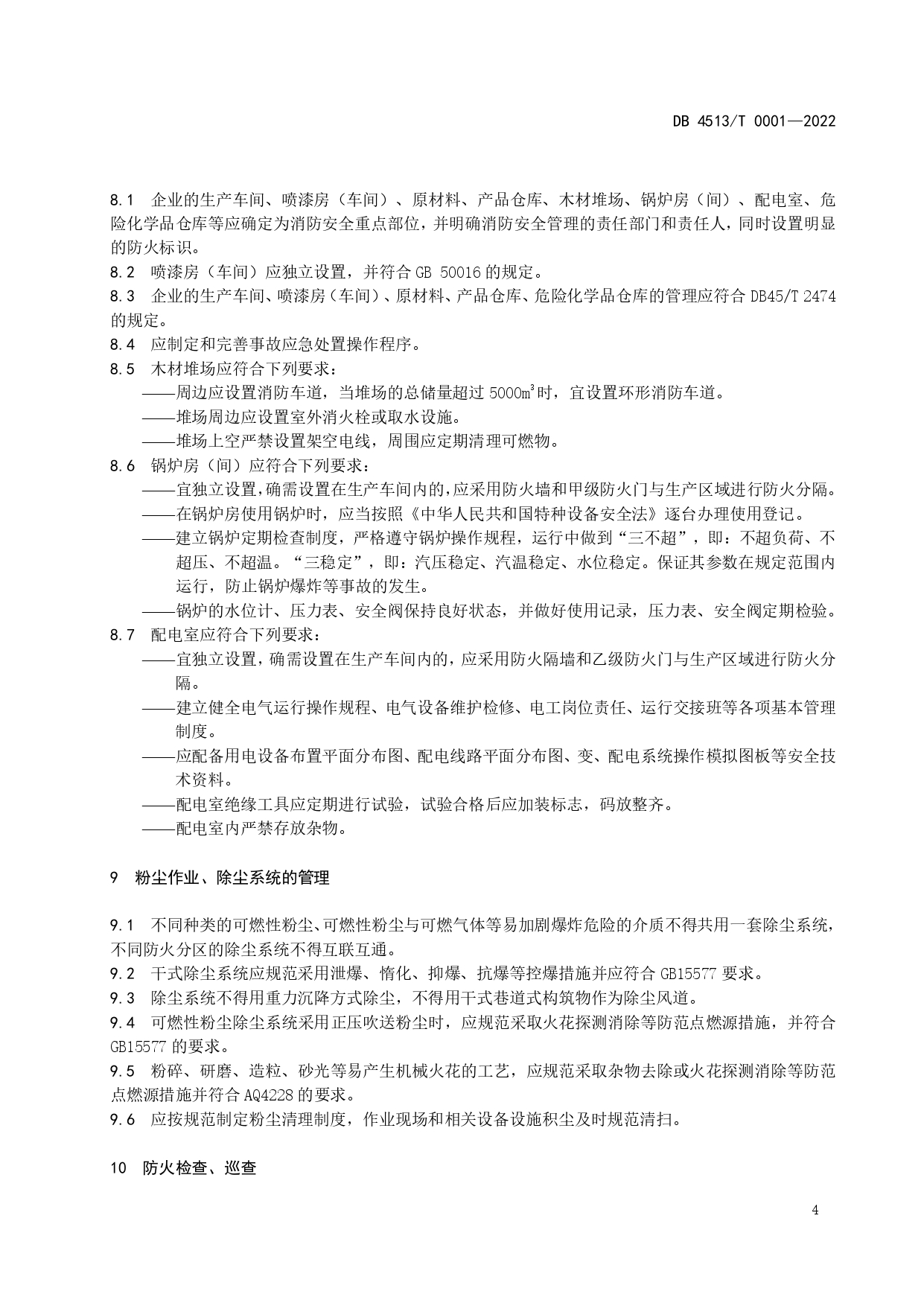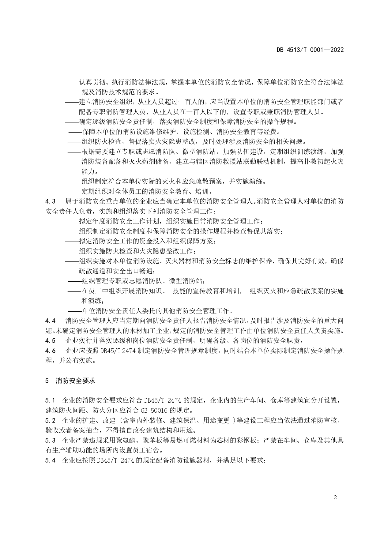 木材加工企业消防安全管理规范DB4513/T 0001-2022