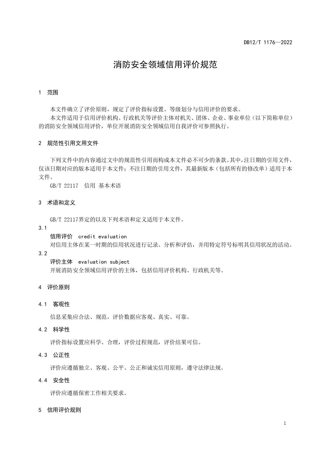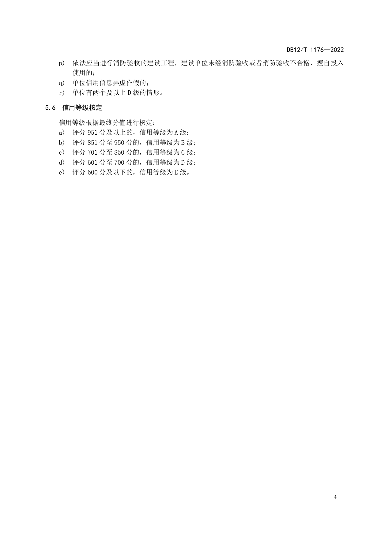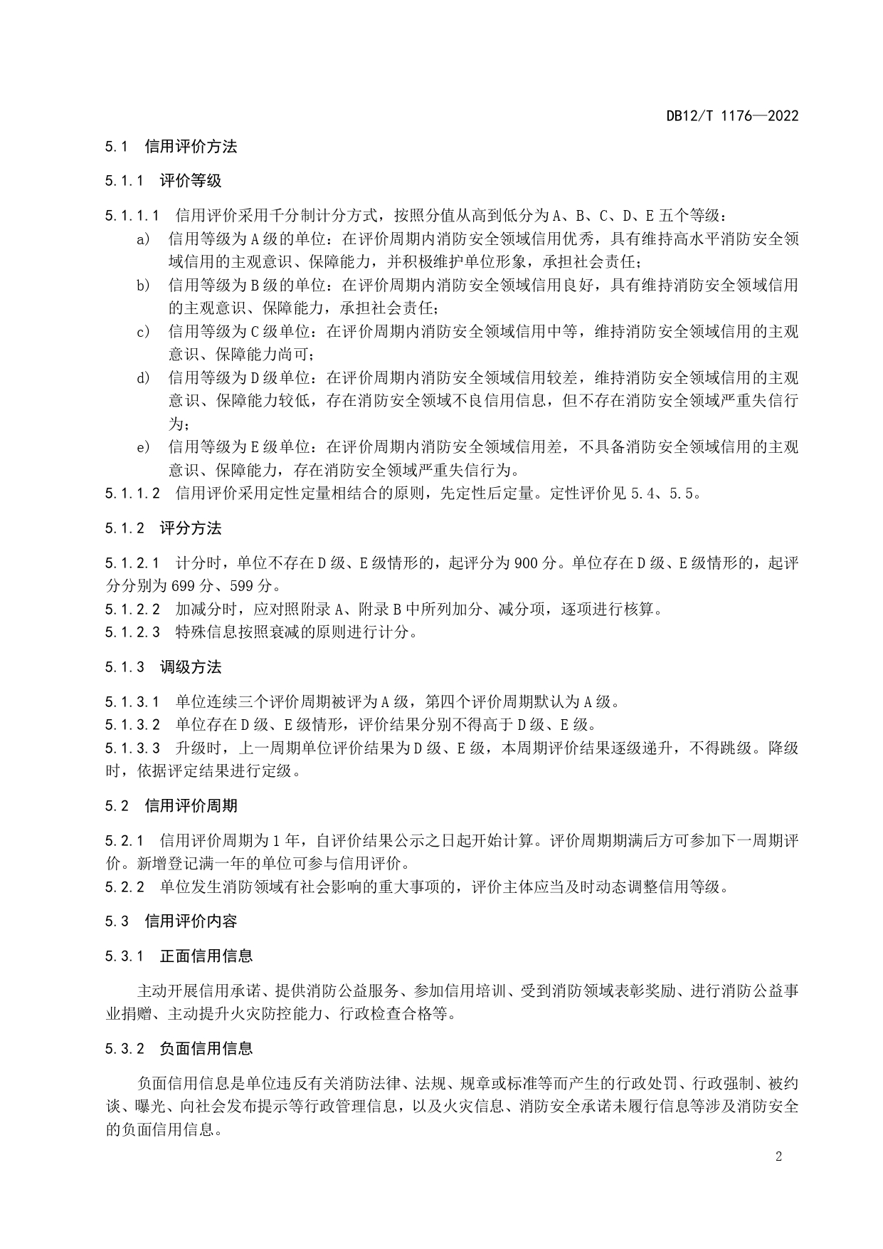 消防安全领域信用评价规范DB12/T 1176-2022