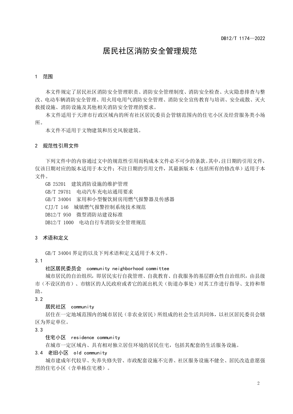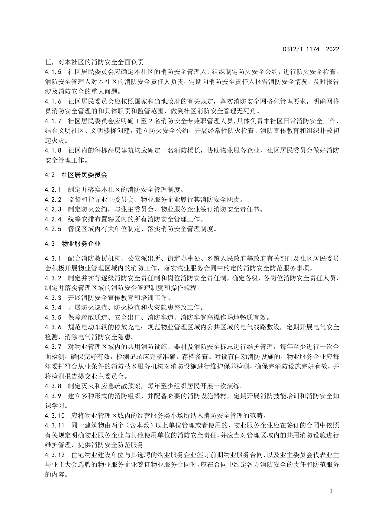 居民社区消防安全管理规范DB12/T 1174-2022
