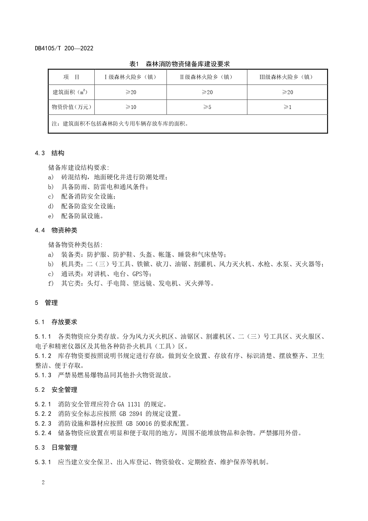 乡(镇)森林消防物资储备库建设与管理规范DB4105/T 200—2022
