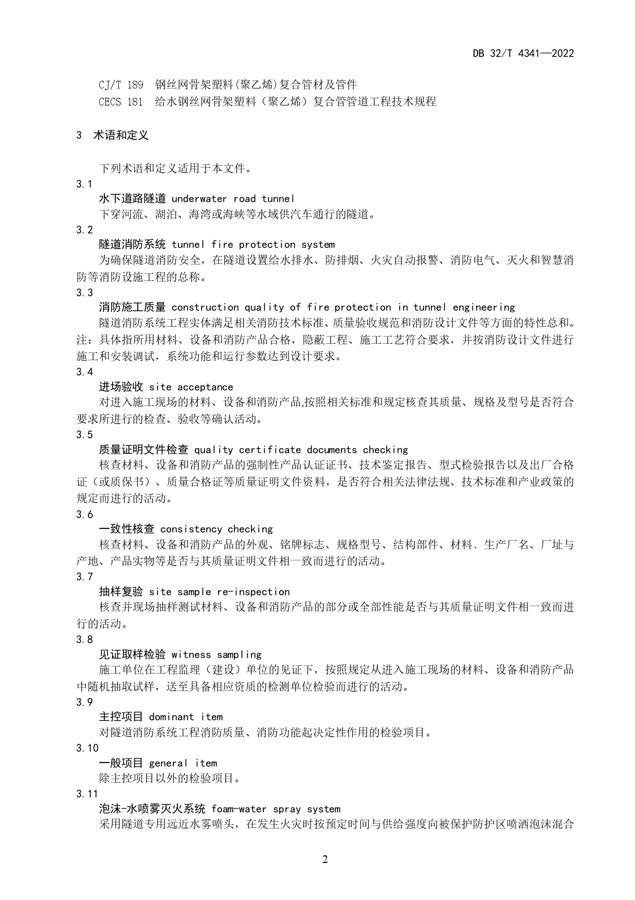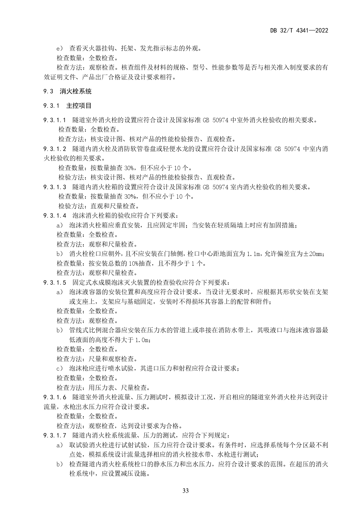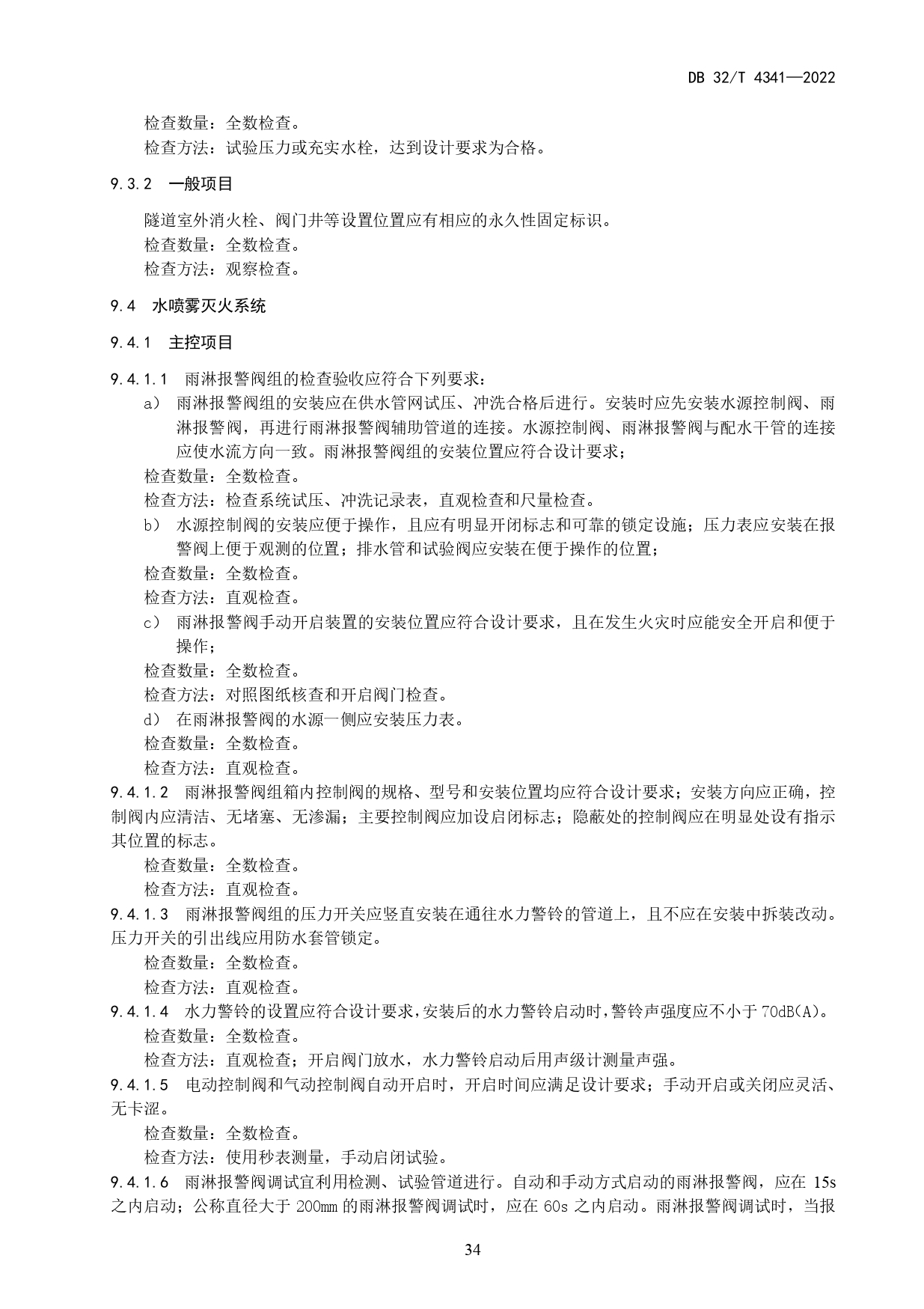 水下道路隧道消防系统工程施工质量验收规范DB32/T 4341-2022