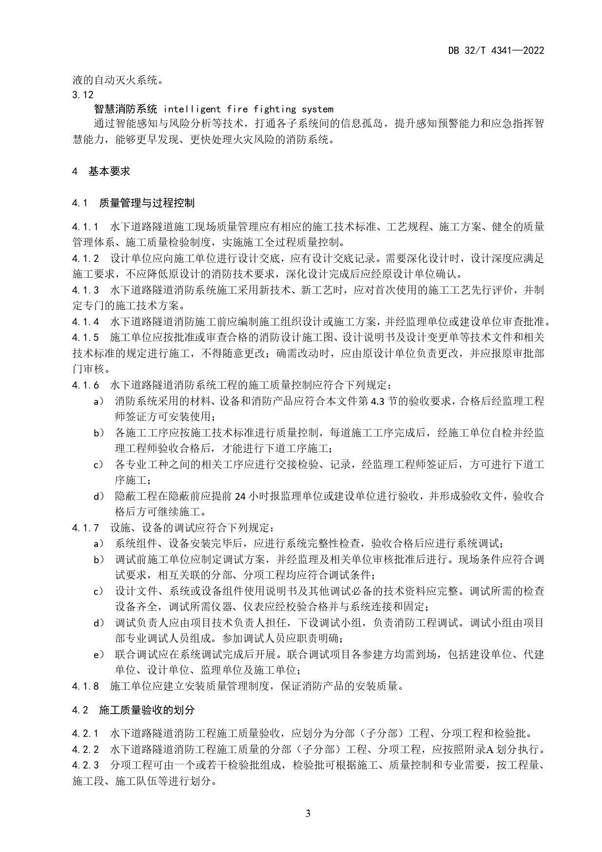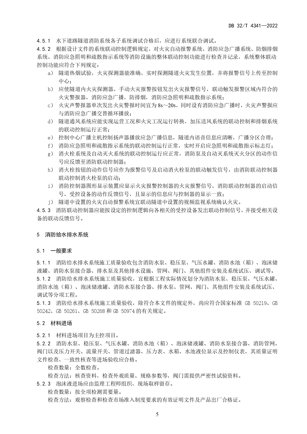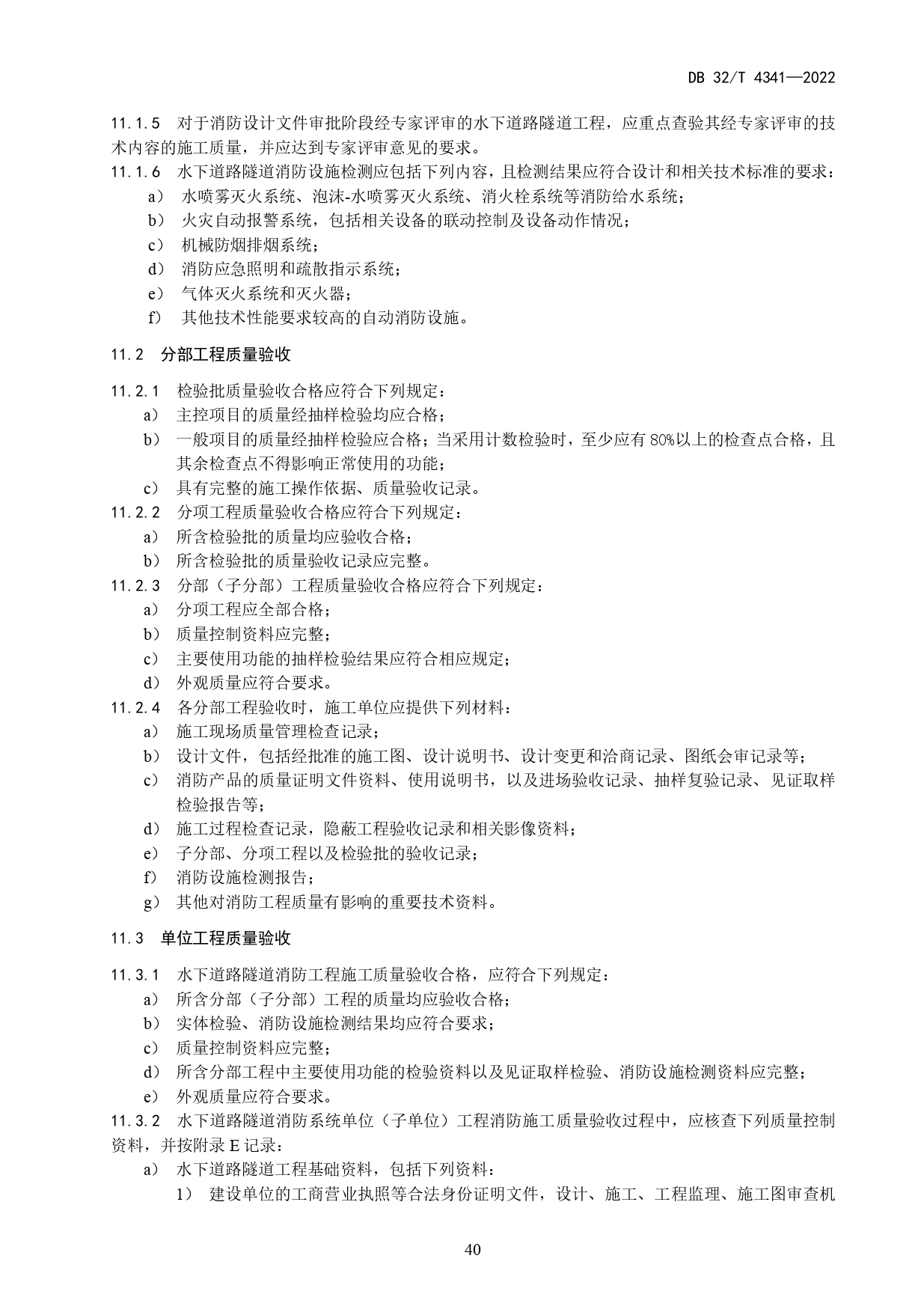 水下道路隧道消防系统工程施工质量验收规范DB32/T 4341-2022