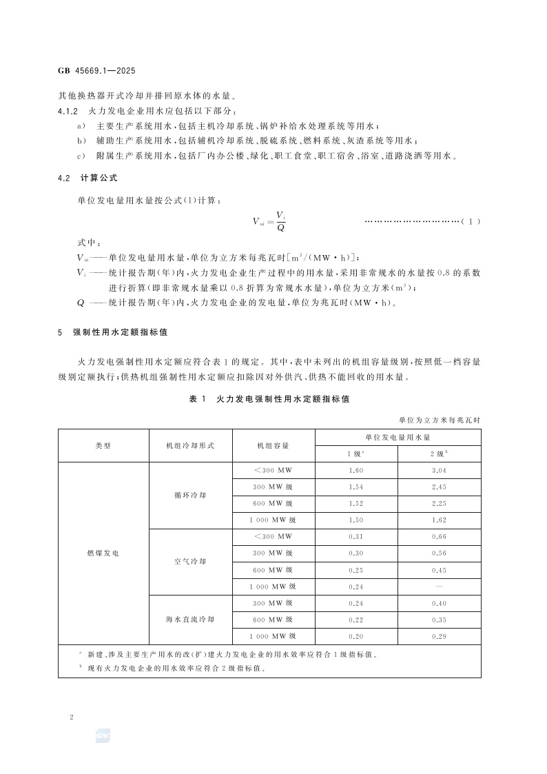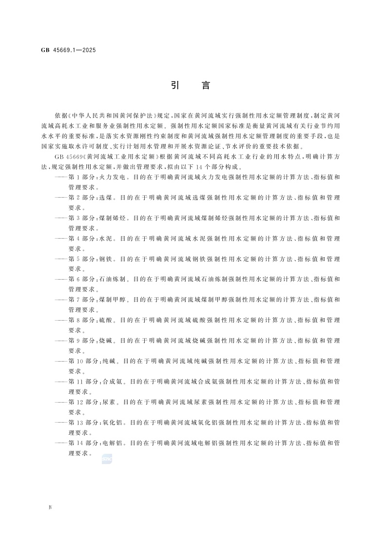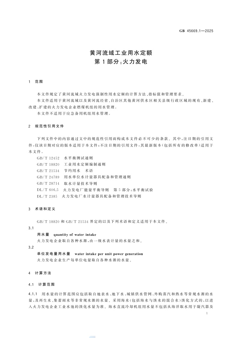 《黄河流域工业用水定额 第1部分:火力发电》(GB 45669.1-2025)