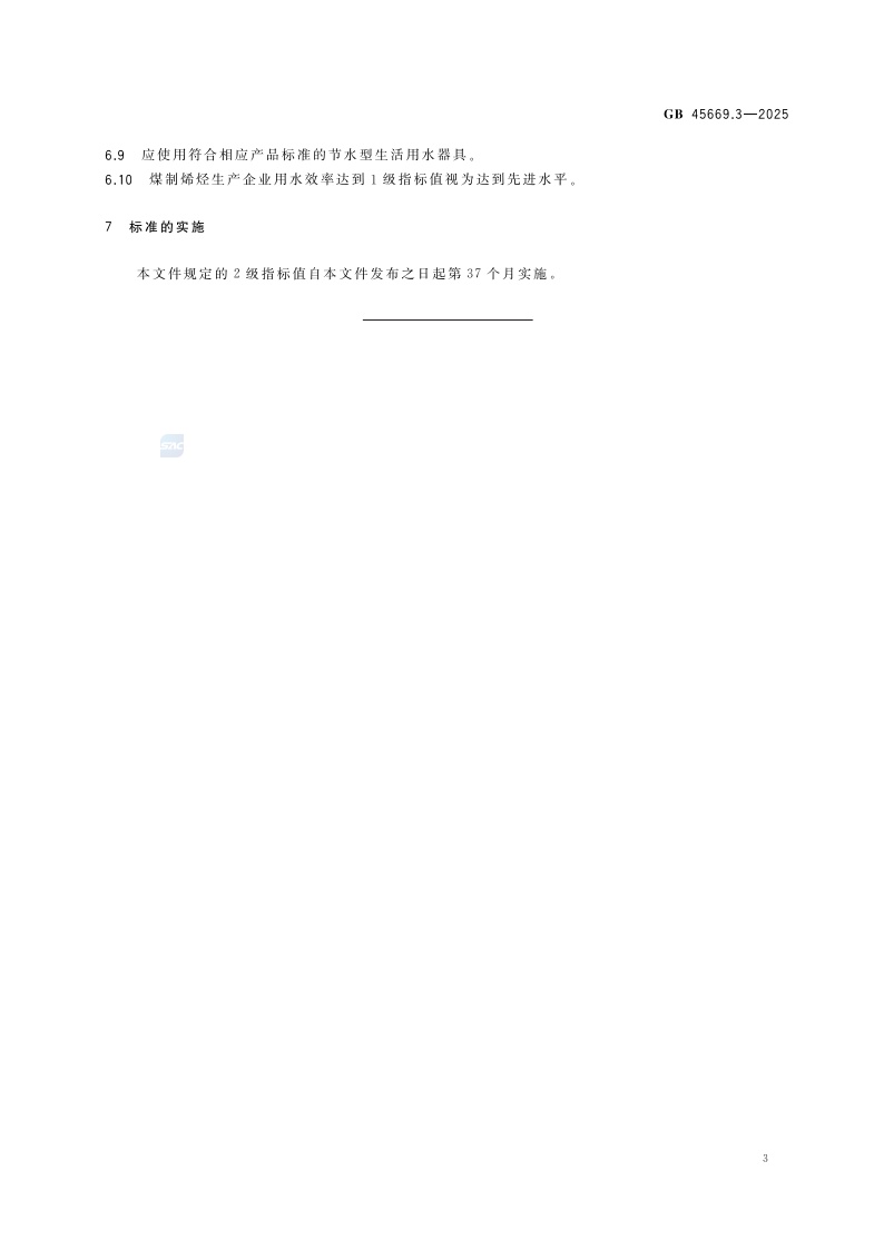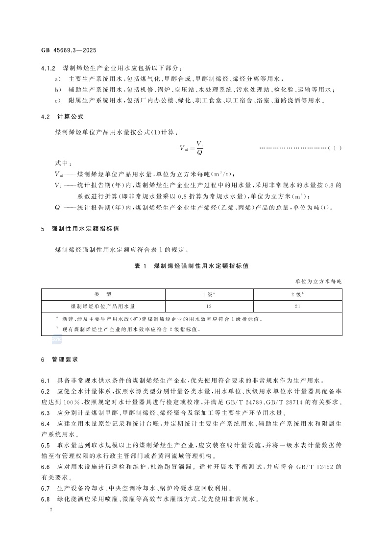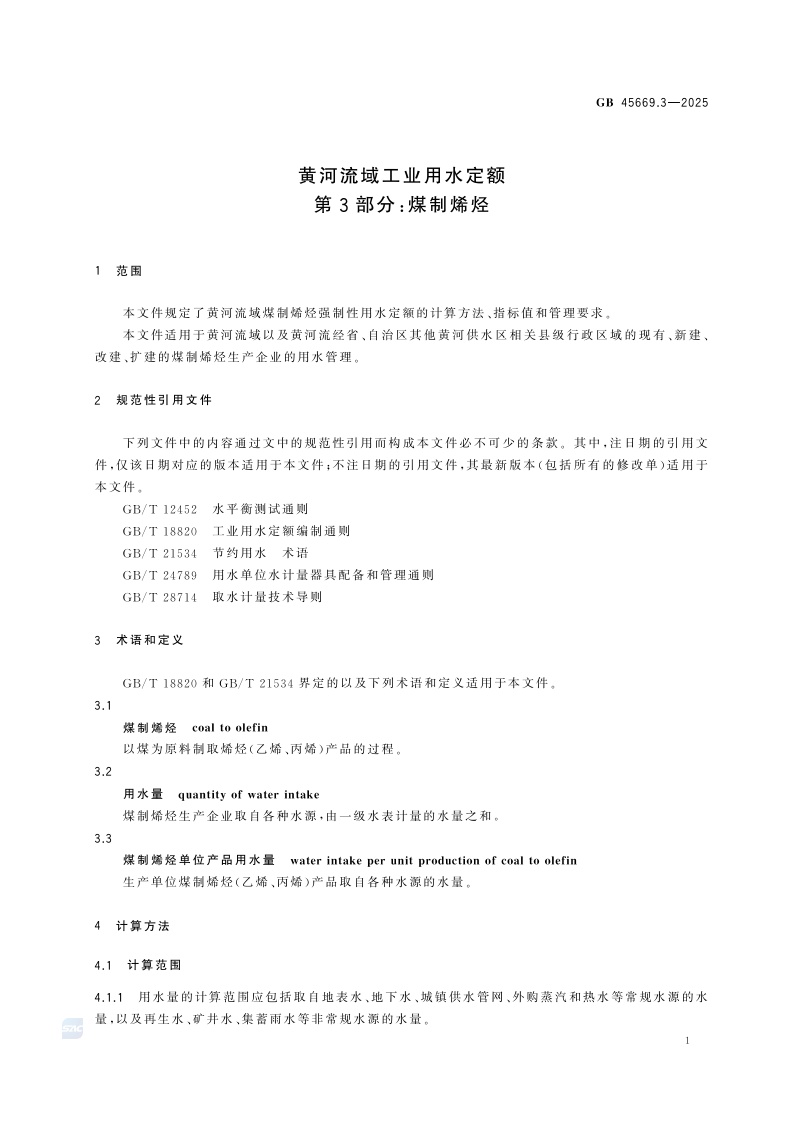 《黄河流域工业用水定额 第3部分:煤制烯烃》(GB 45669.3-2025)