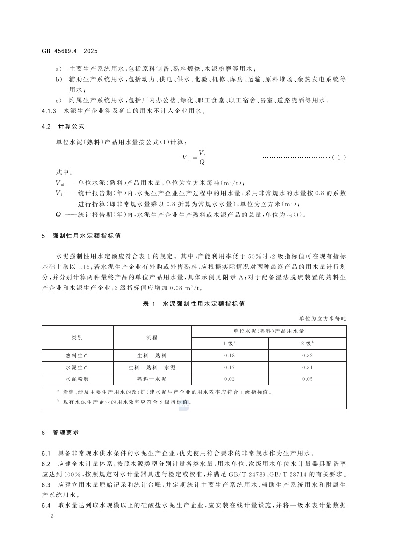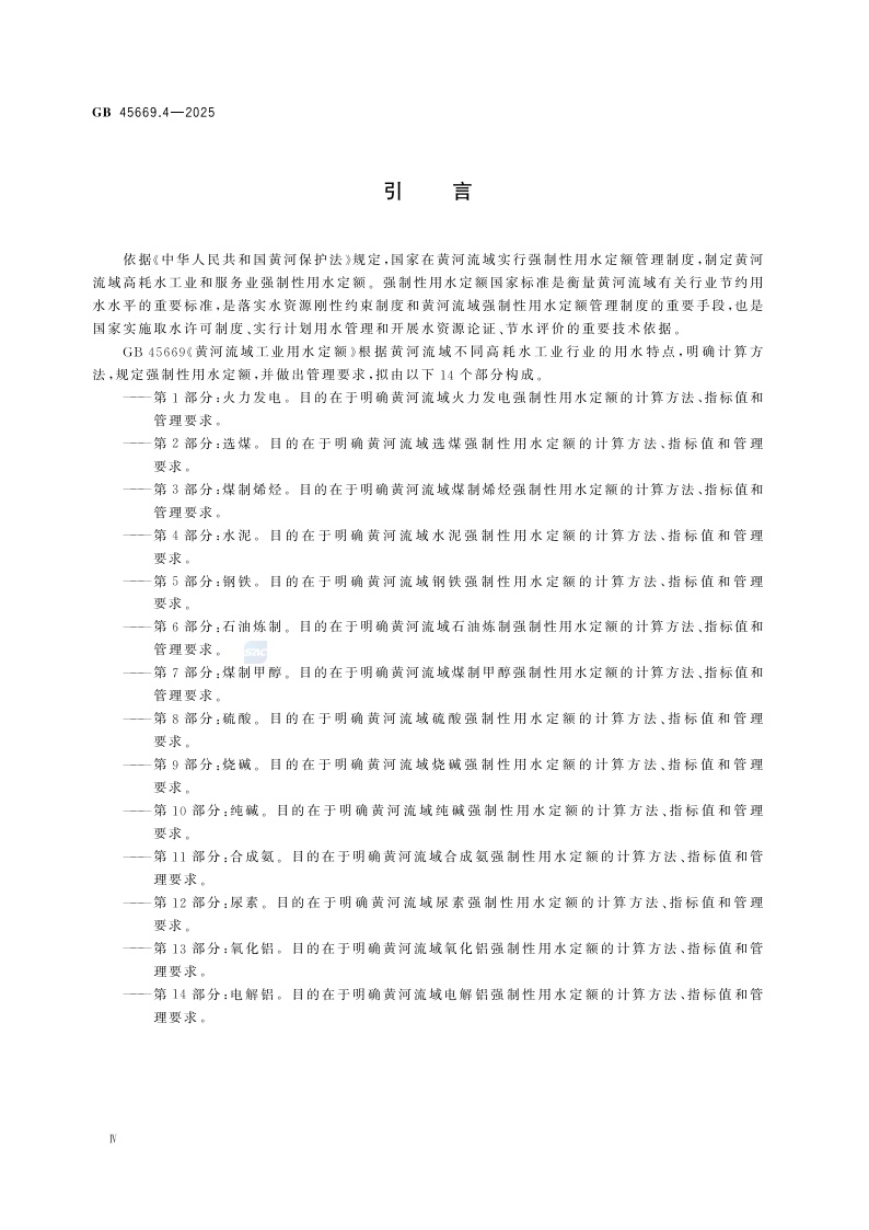 《黄河流域工业用水定额 第4部分:水泥》(GB 45669.4-2025)