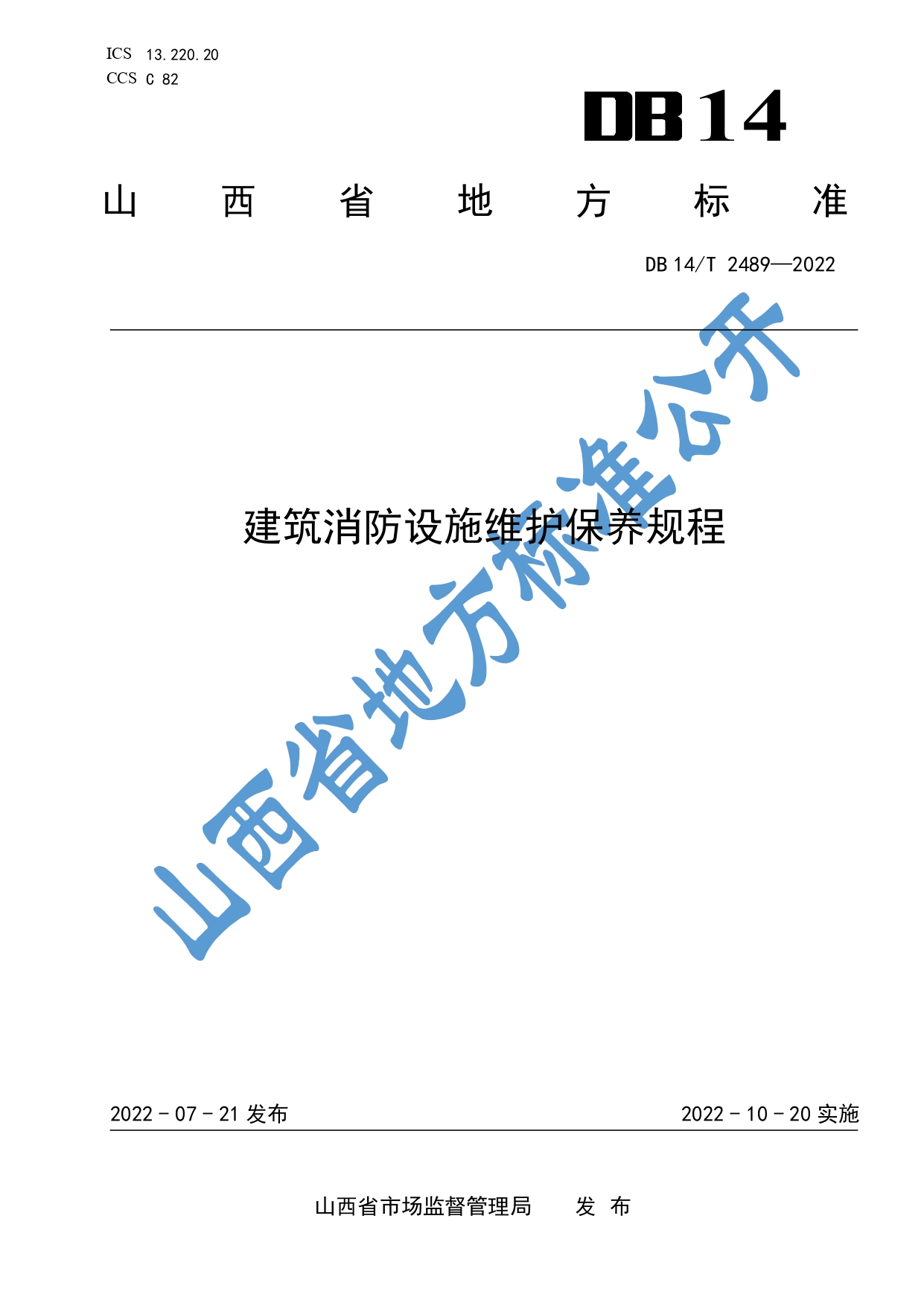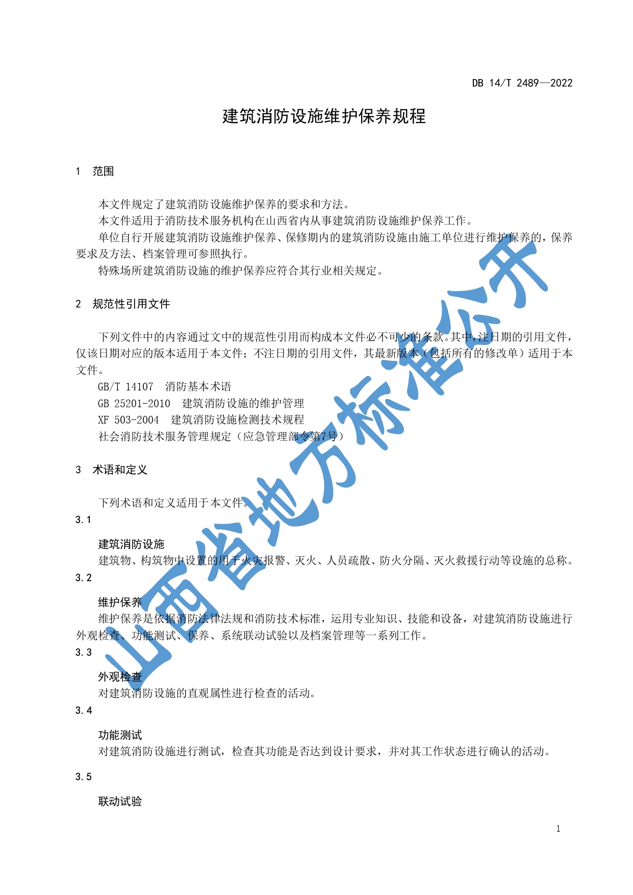 建筑消防设施维护保养规程DB14/T 2489—2022