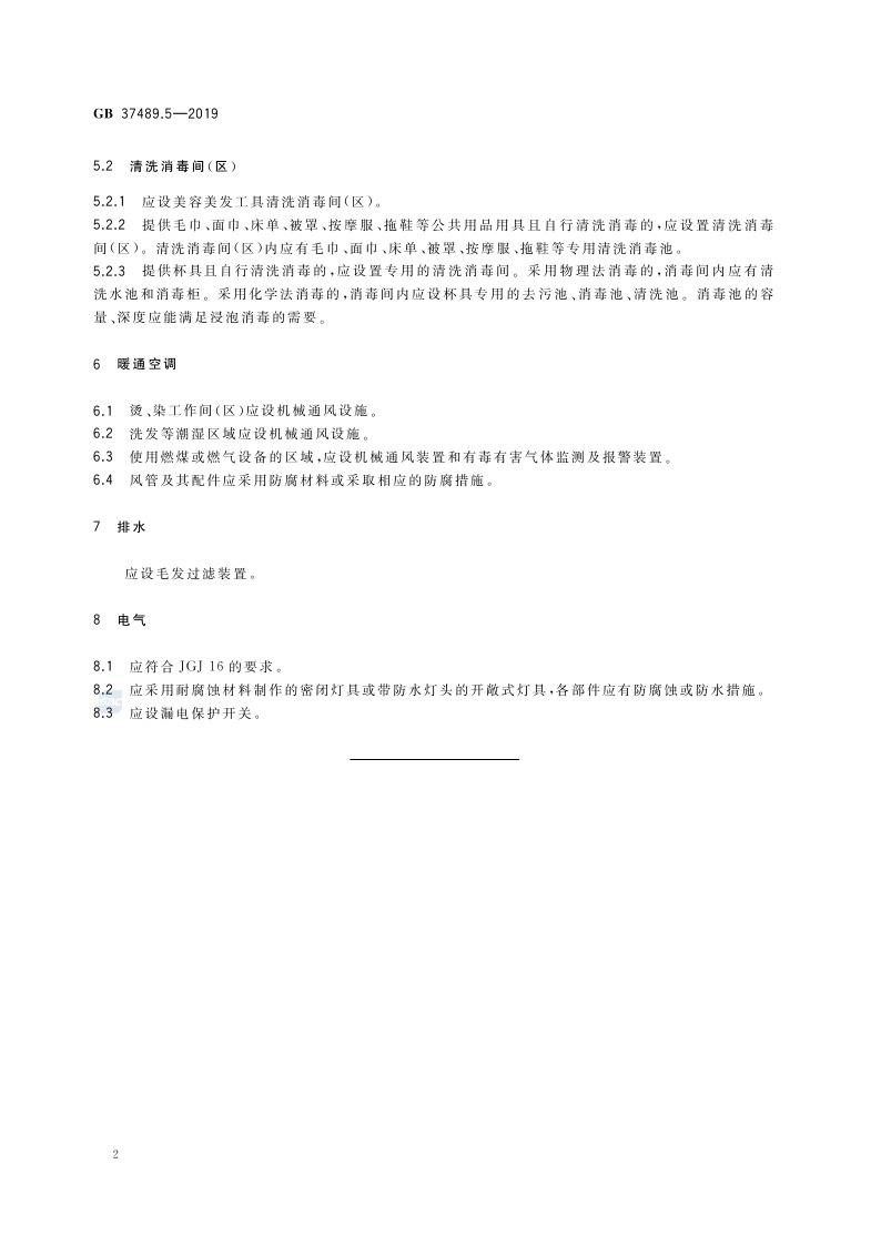 《公共场所设计卫生规范 第5部分:美容美发场所》(GB 37489.5-2019)