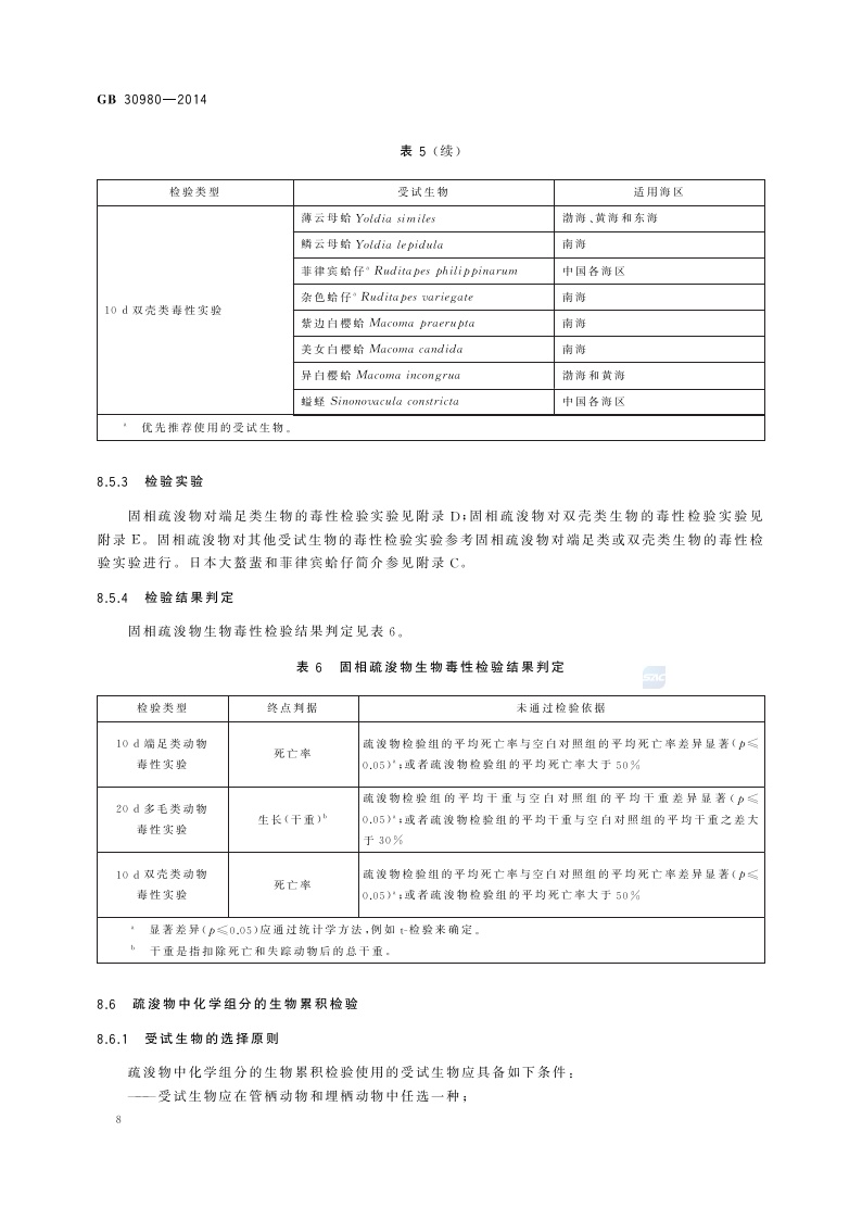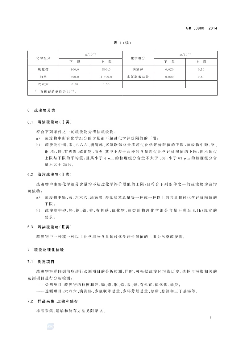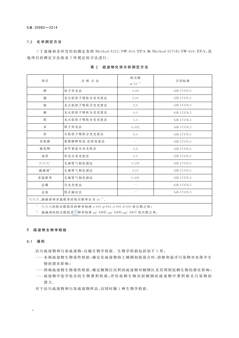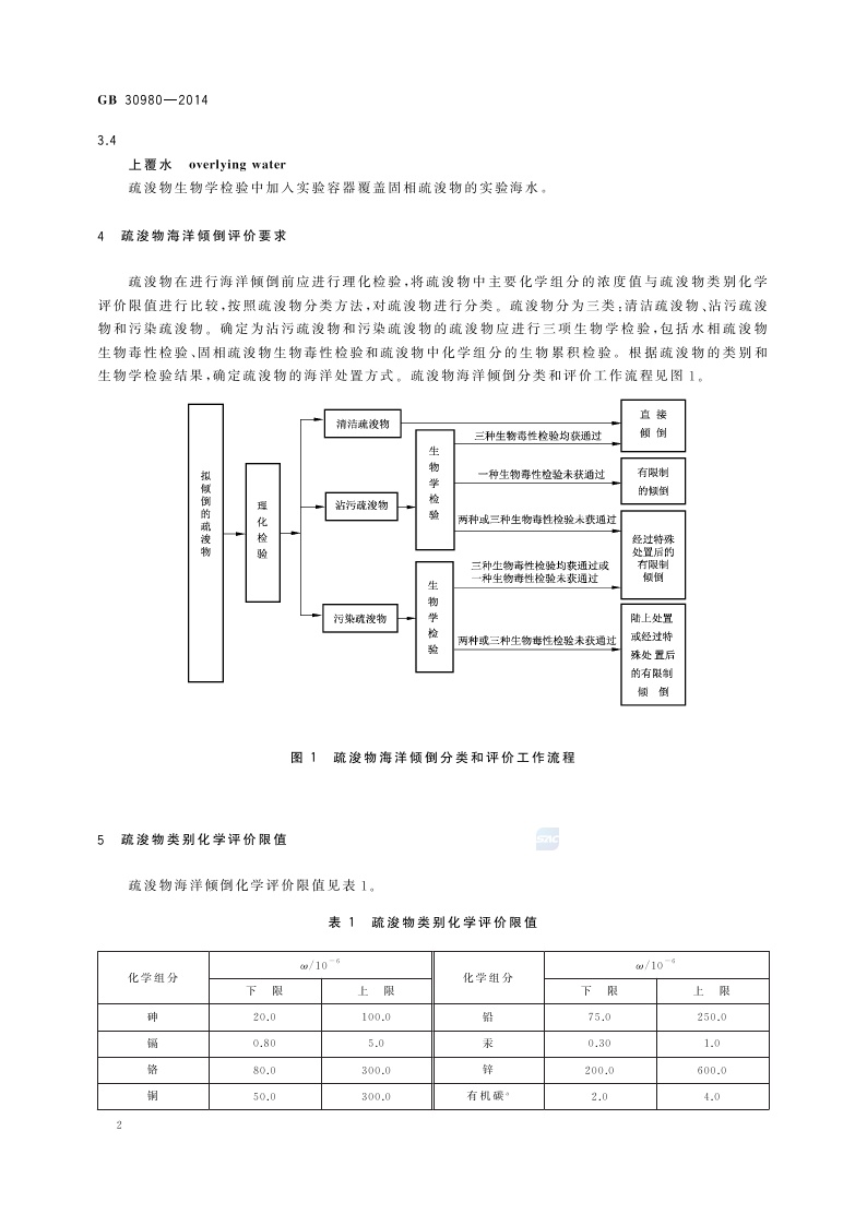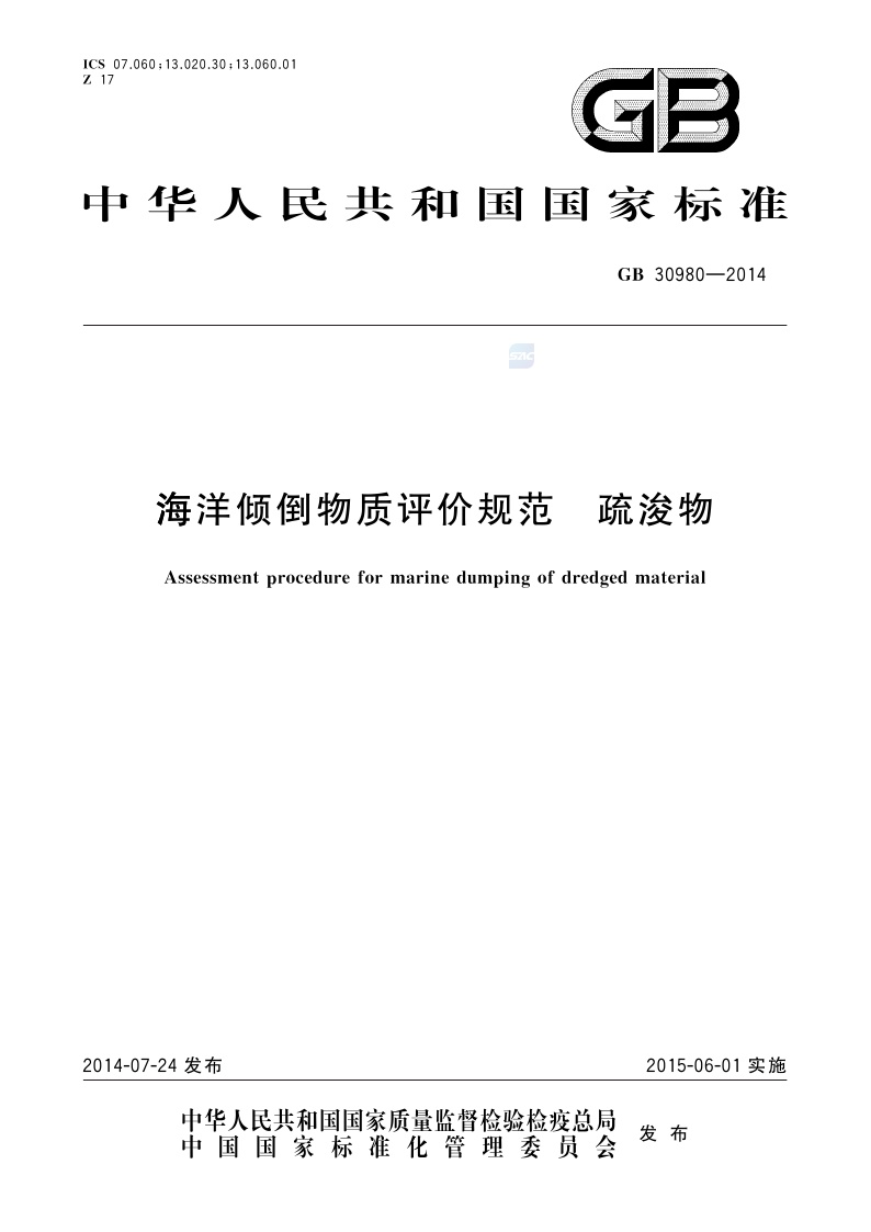《海洋倾倒物质评价规范 疏浚物》(GB 30980-2014)