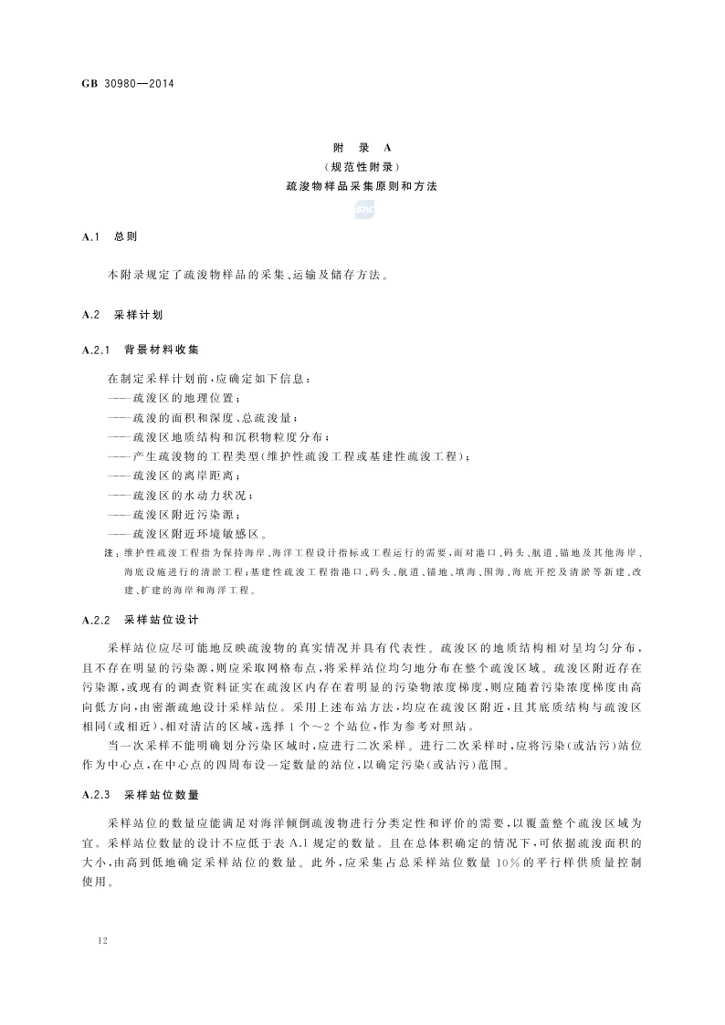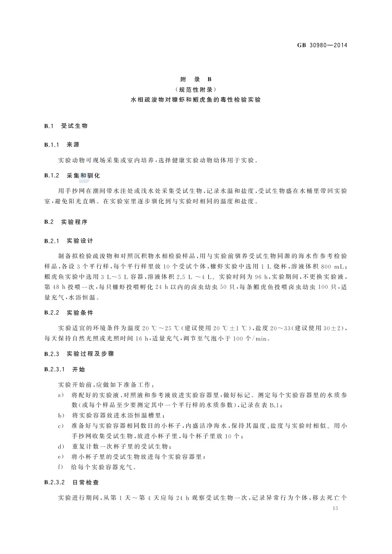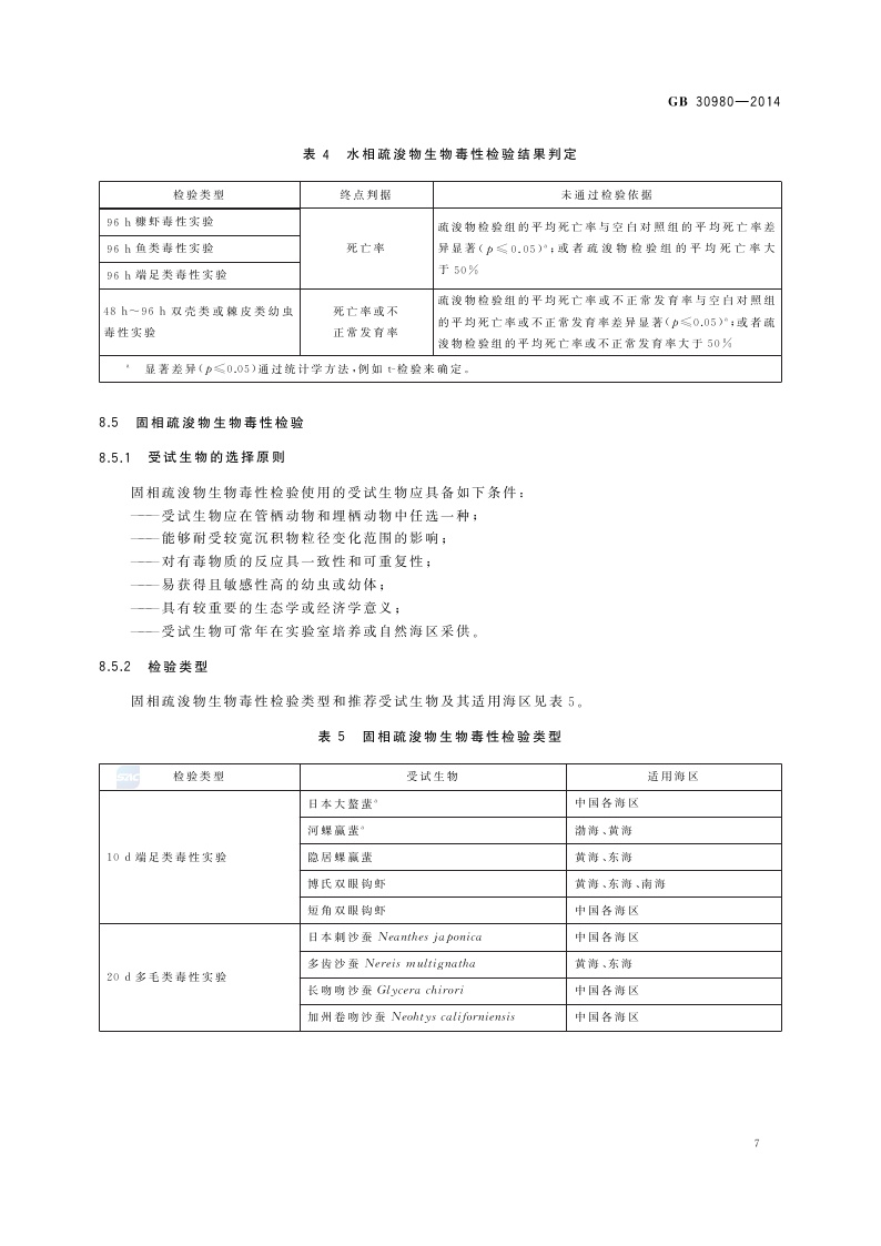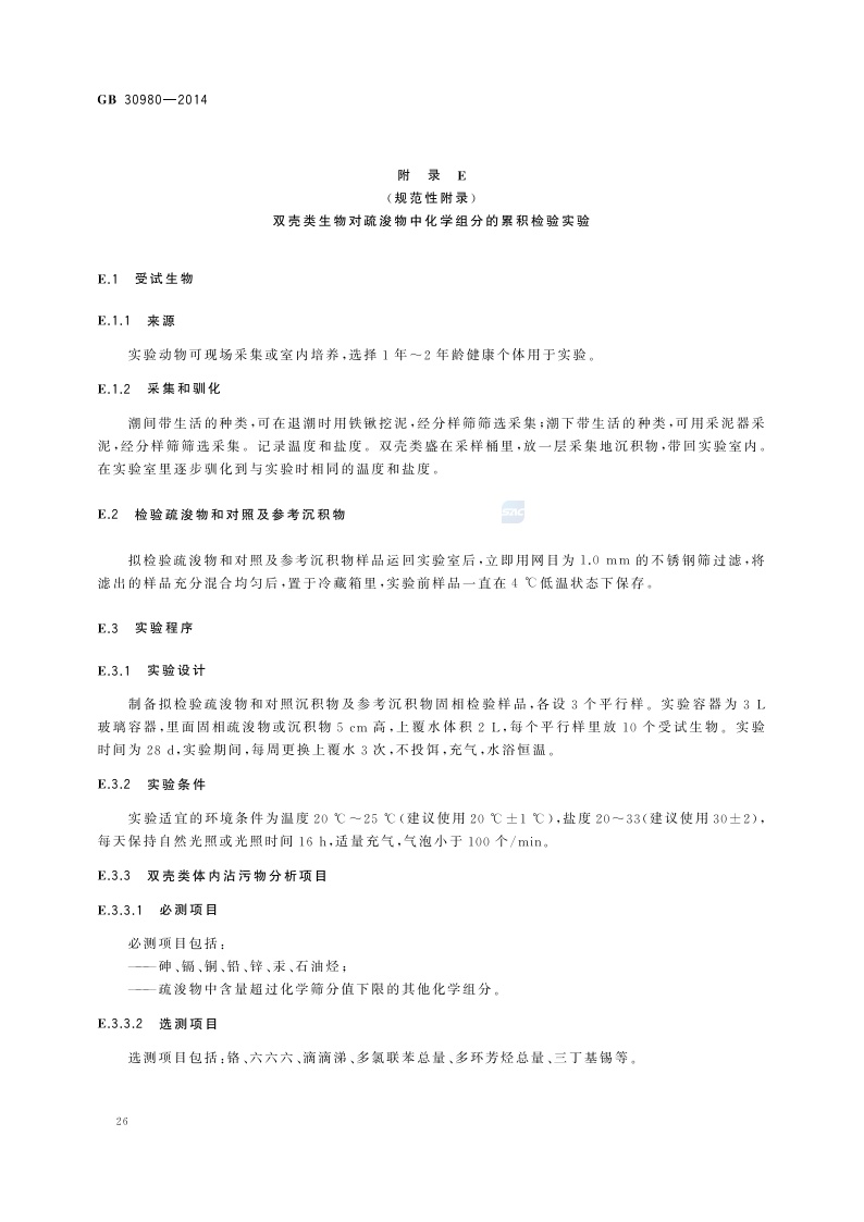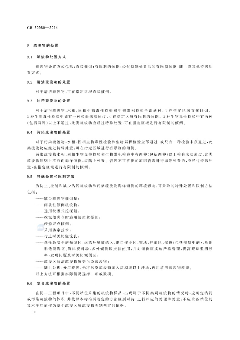 《海洋倾倒物质评价规范 疏浚物》(GB 30980-2014)