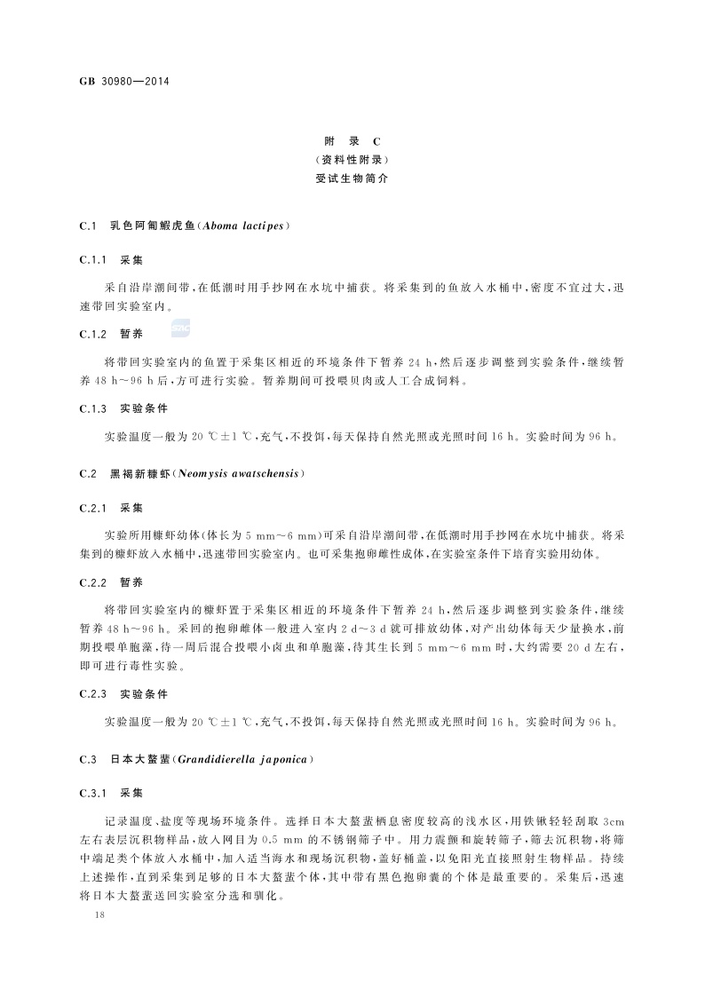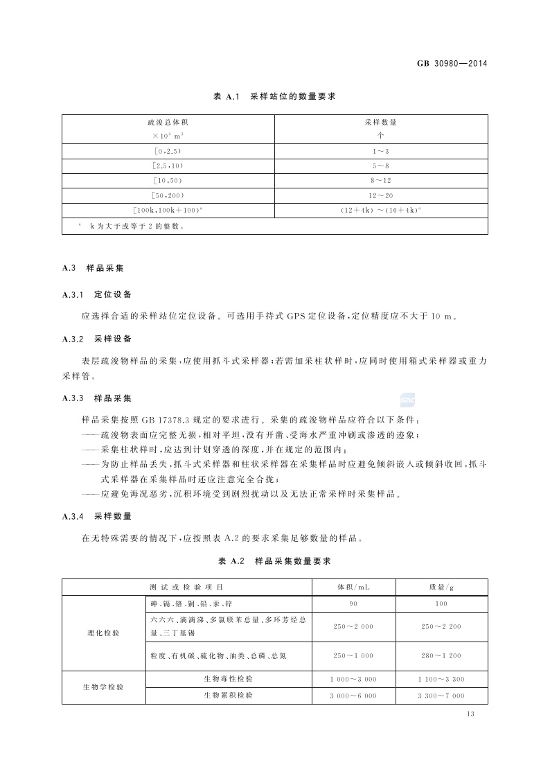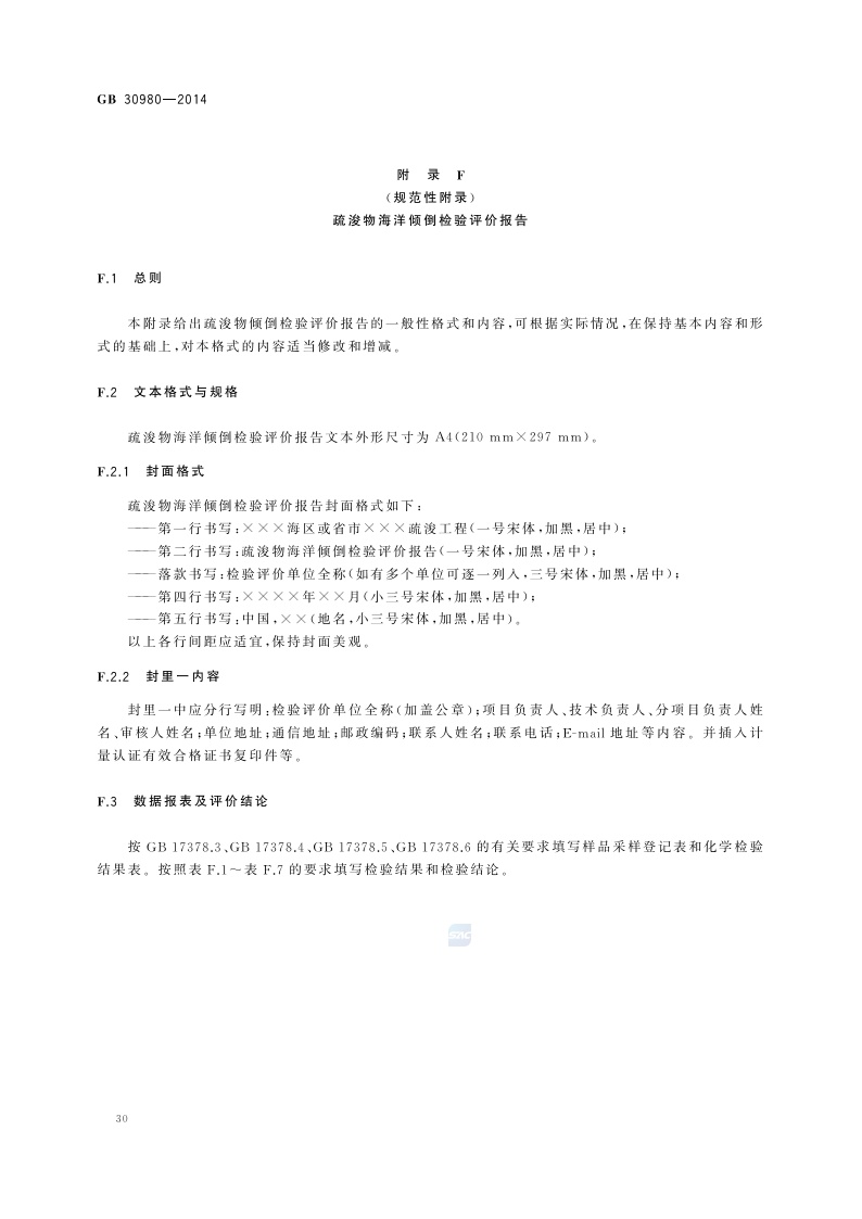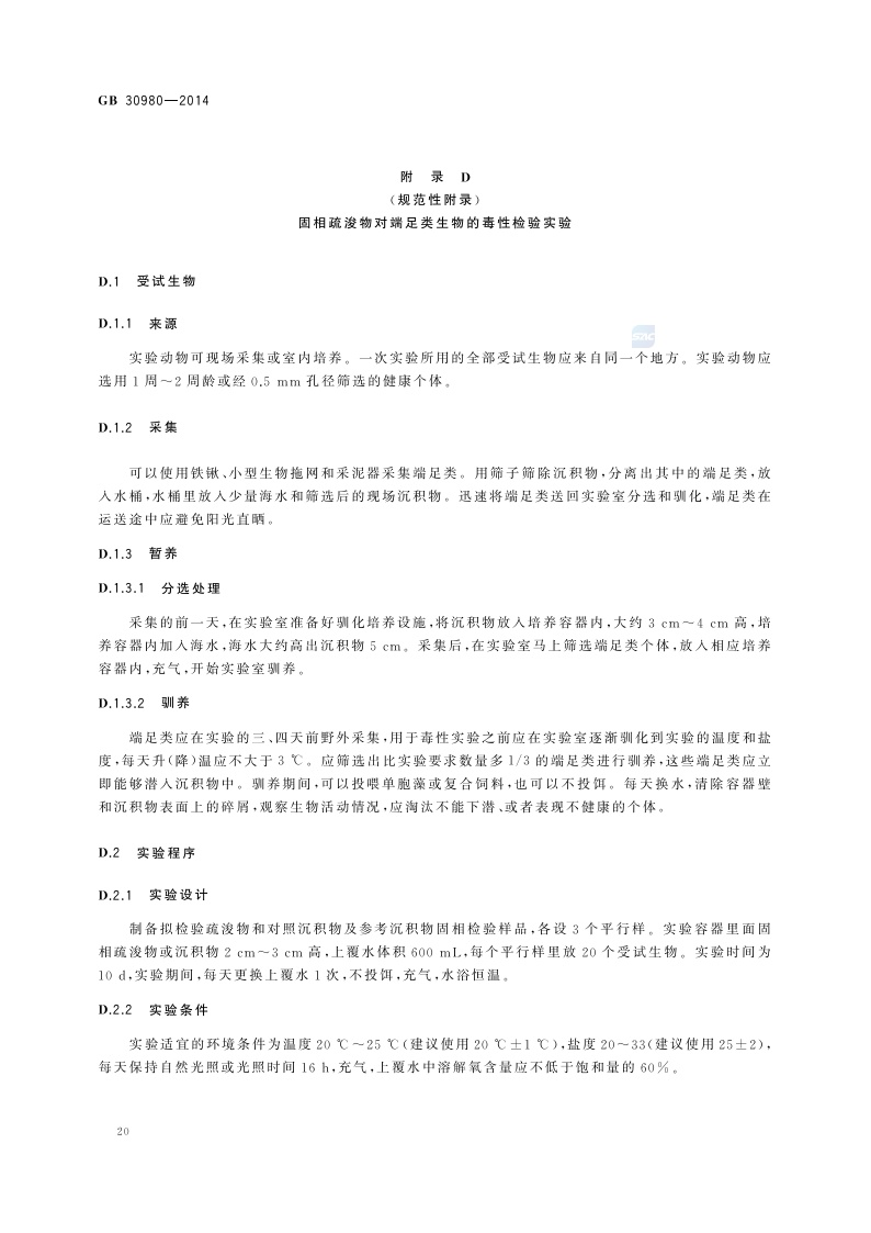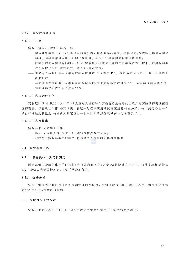 《海洋倾倒物质评价规范 疏浚物》(GB 30980-2014)