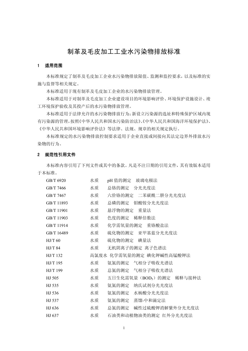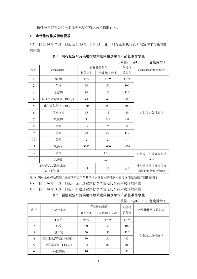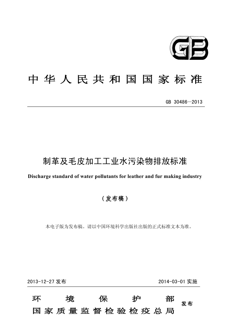 《制革及毛皮加工工业水污染物排放标准》(GB 30486-2013)