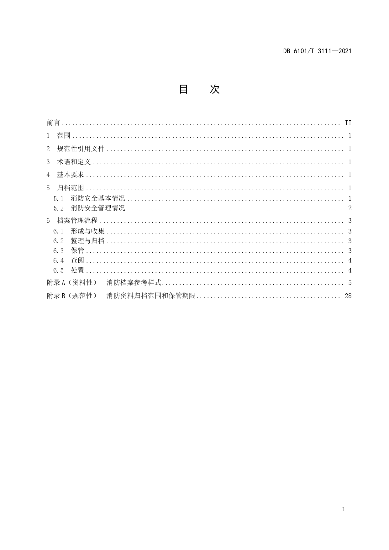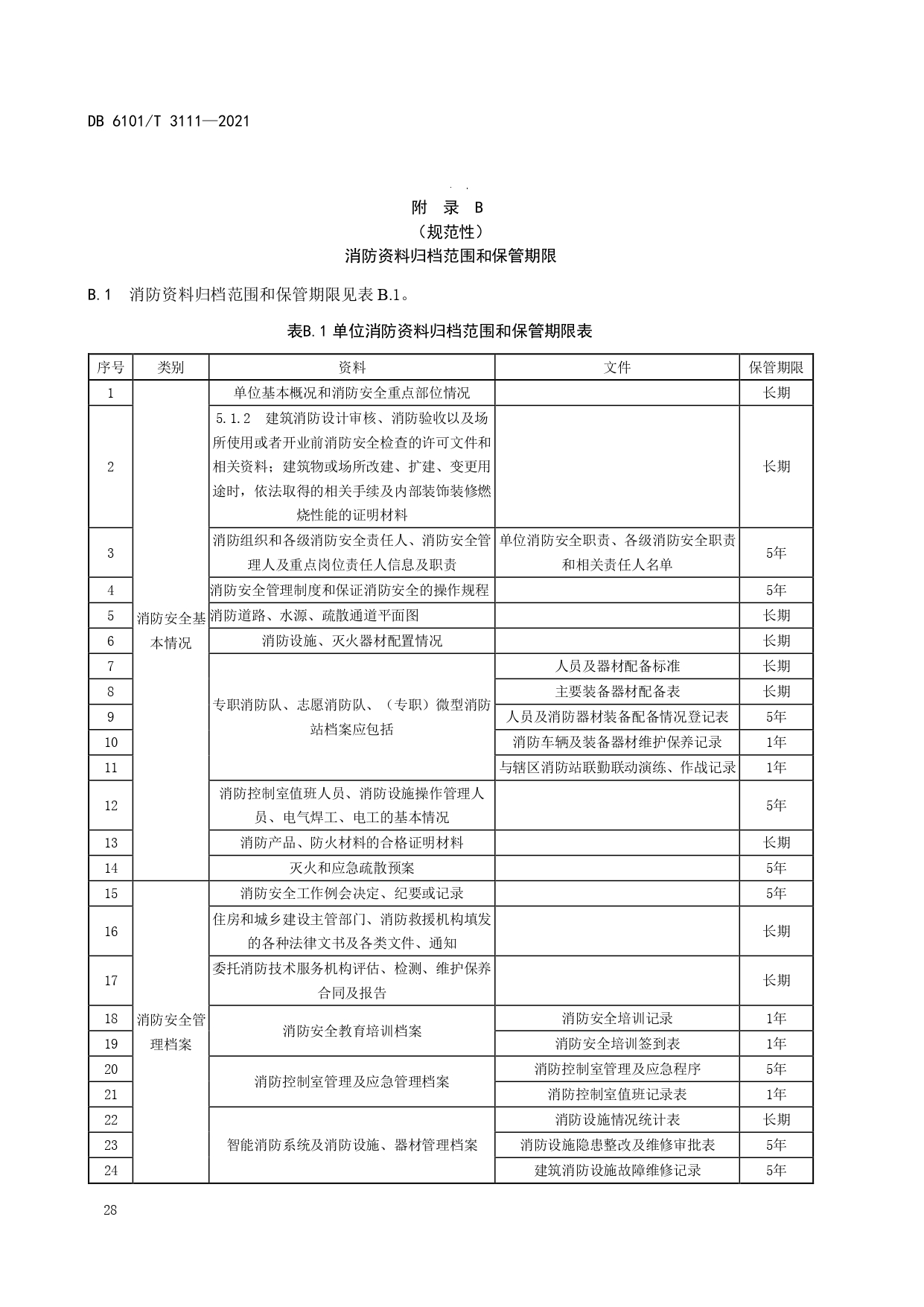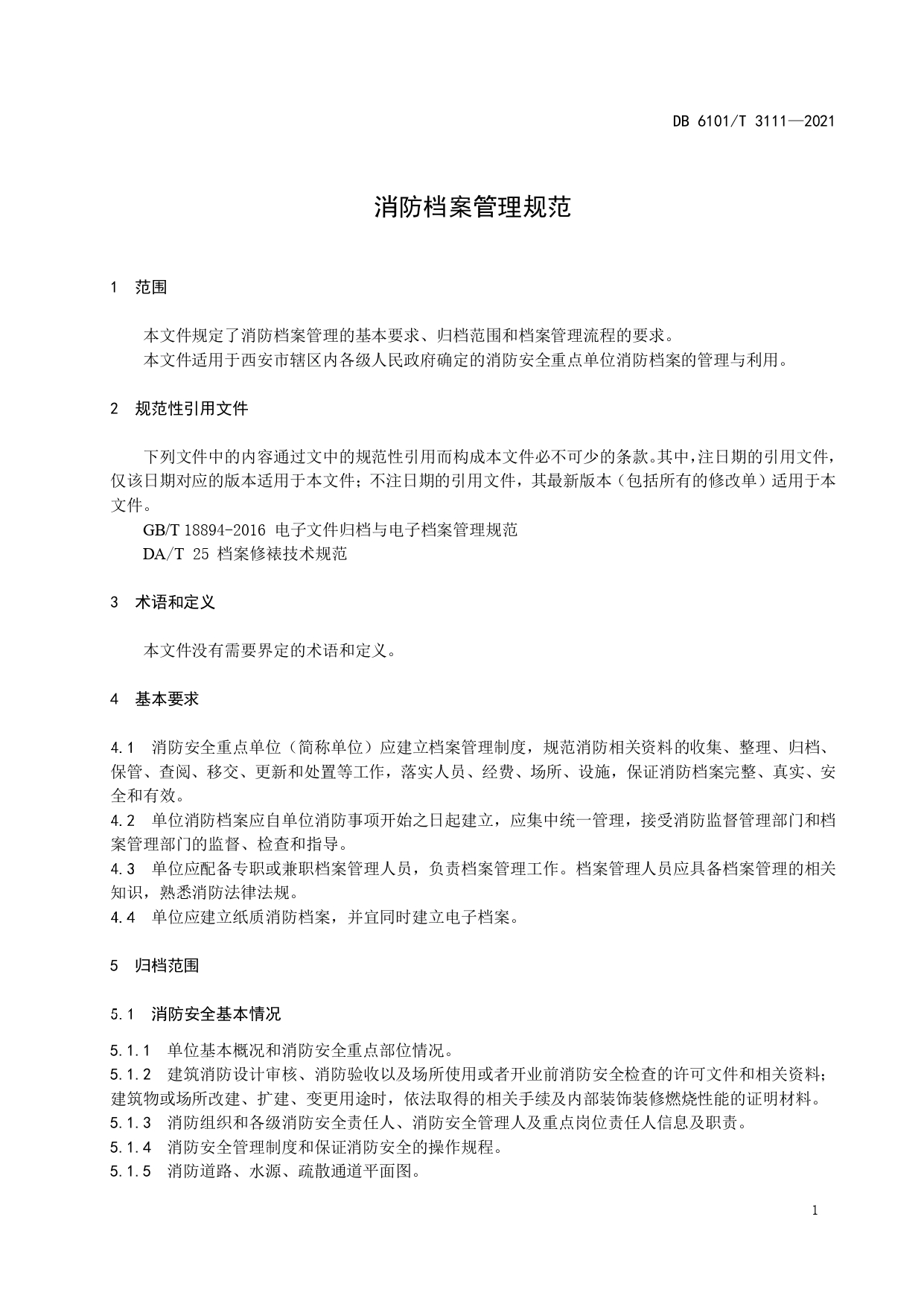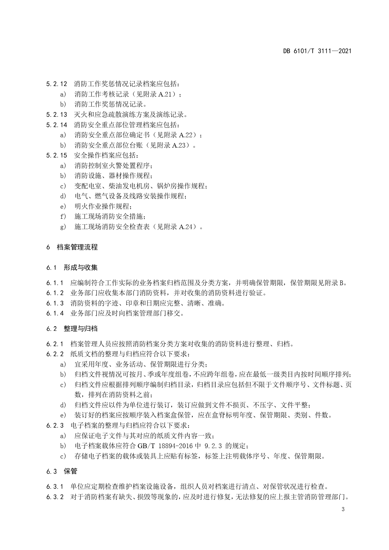 消防档案管理规范DB6101/T 3111-2021