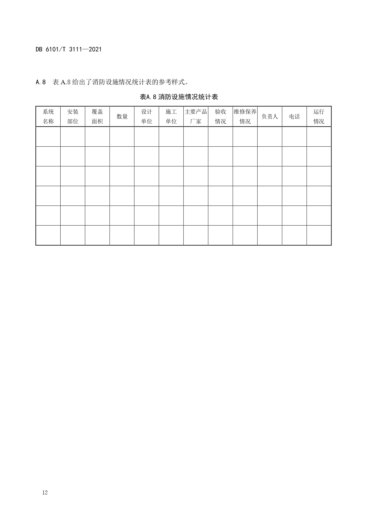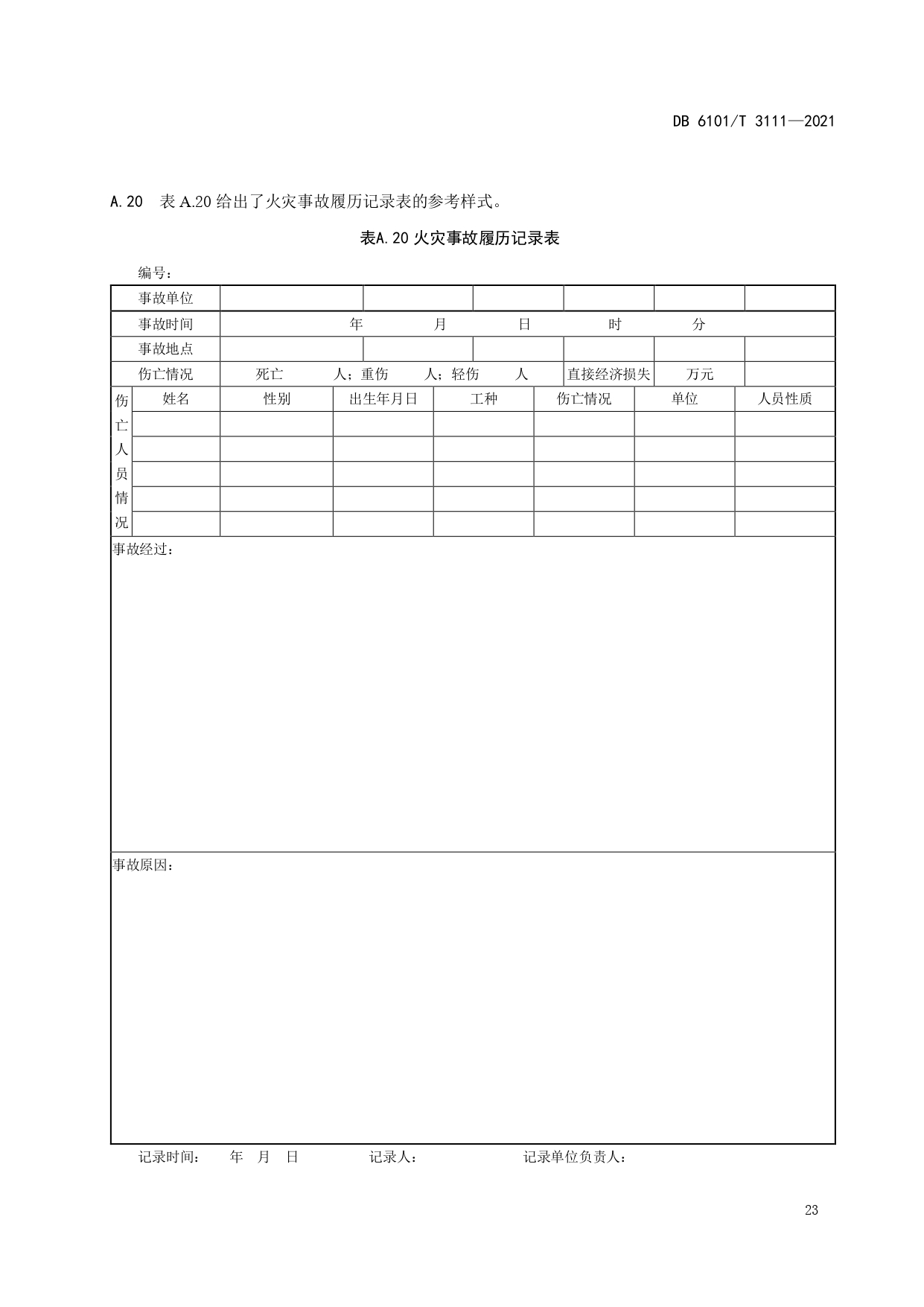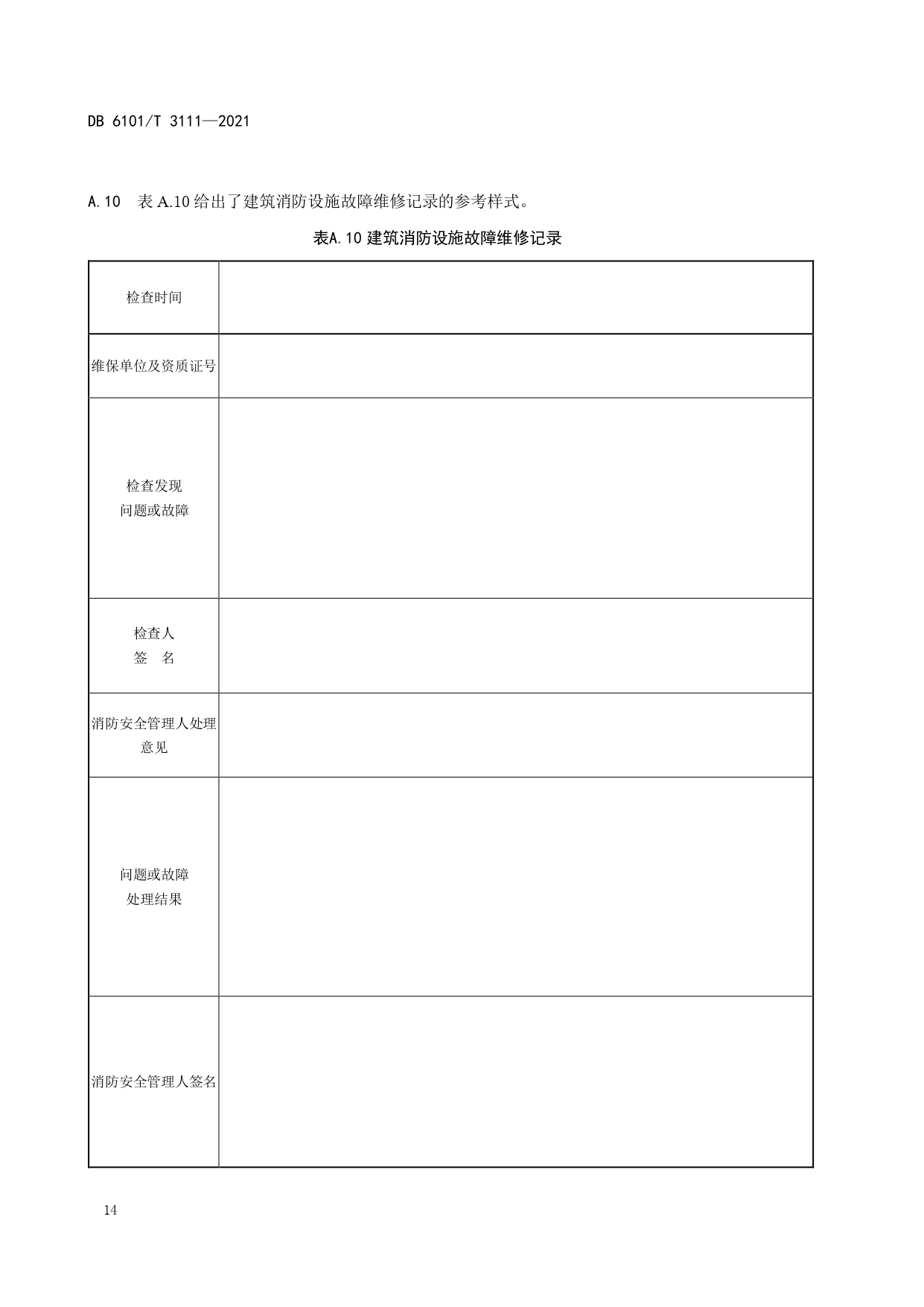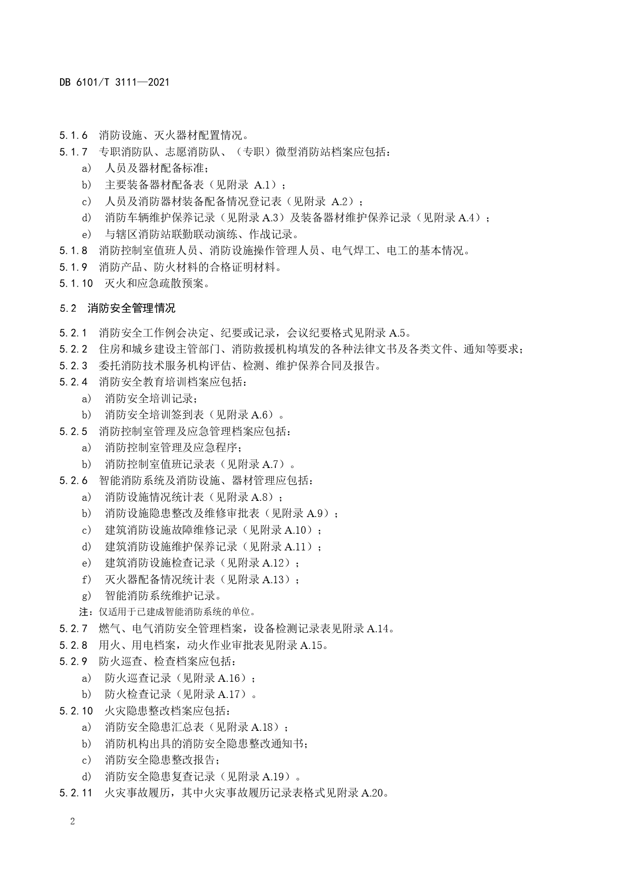 消防档案管理规范DB6101/T 3111-2021