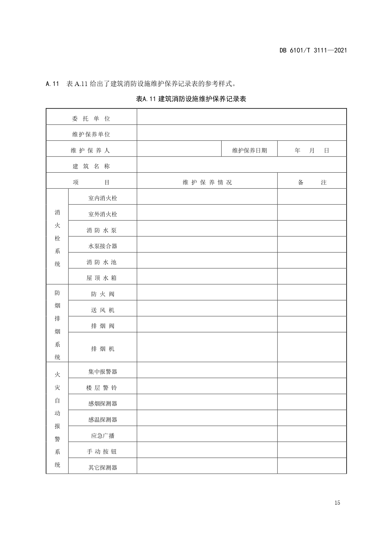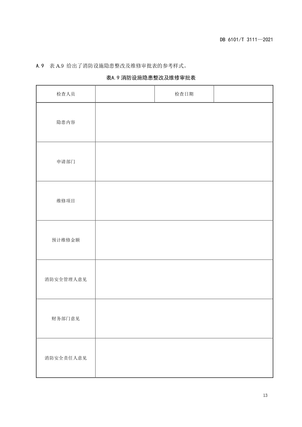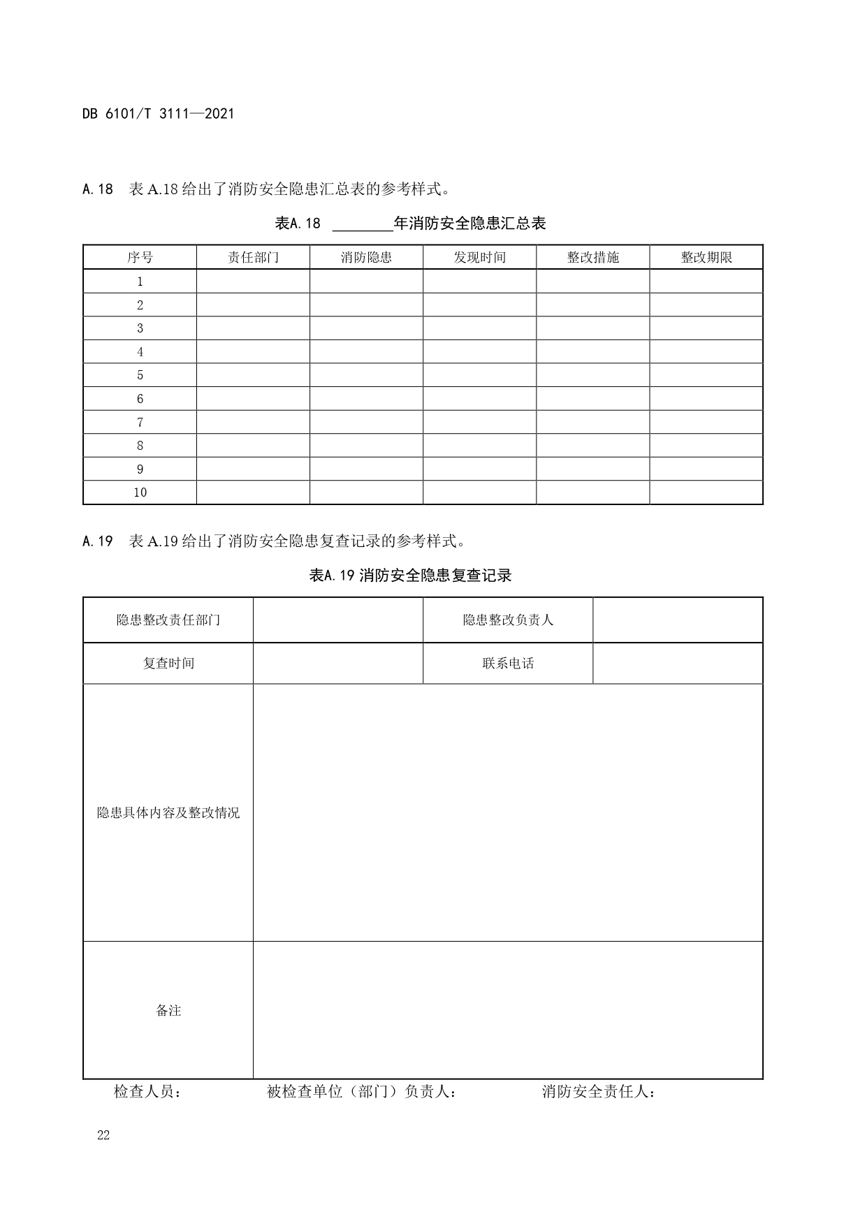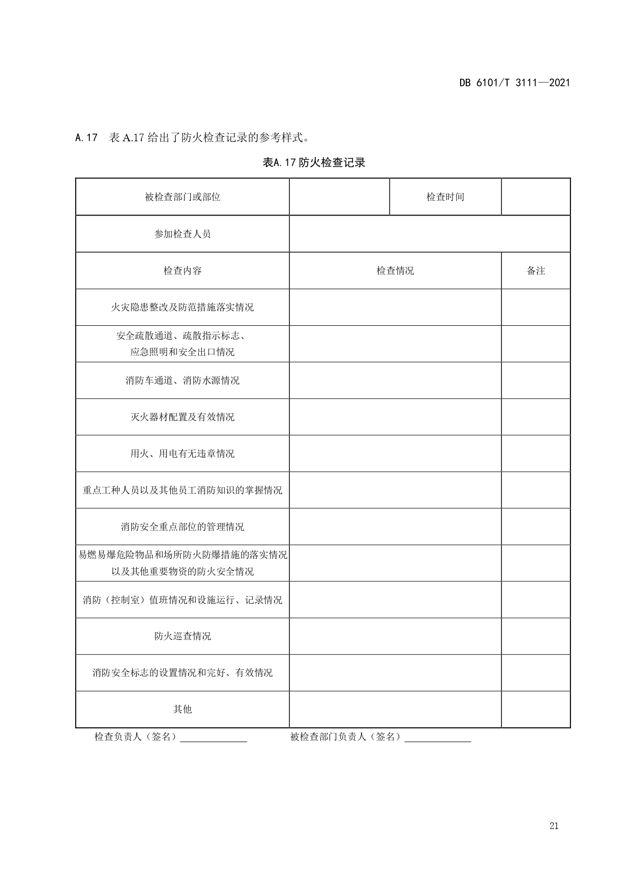 消防档案管理规范DB6101/T 3111-2021