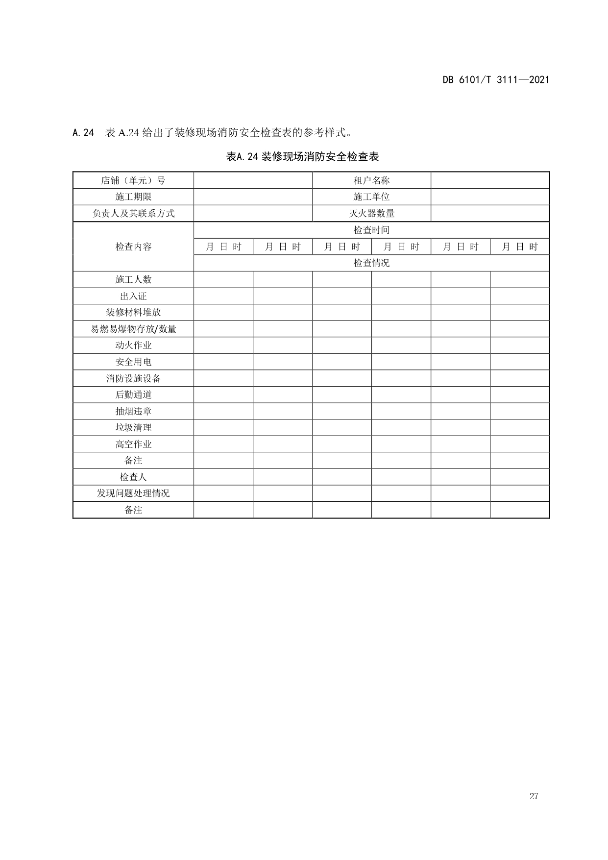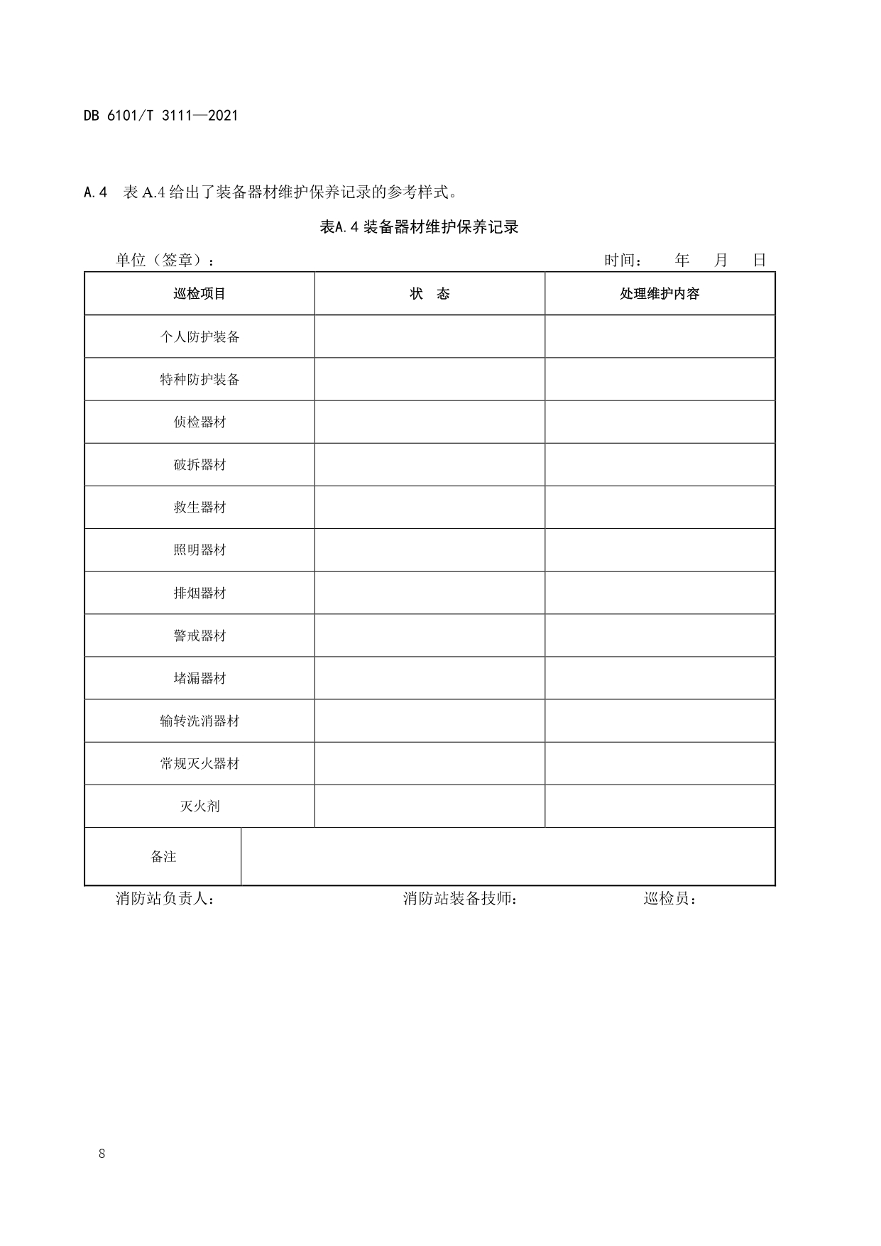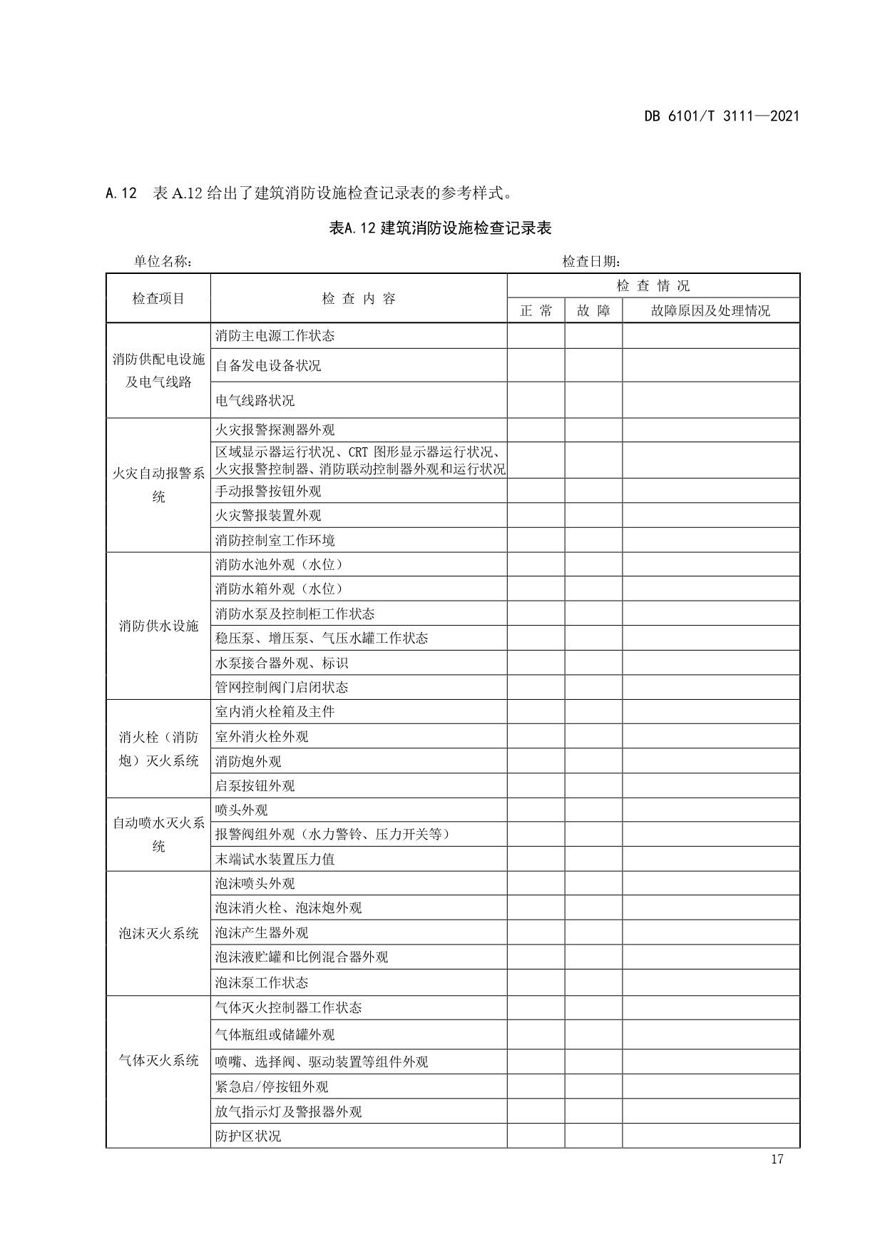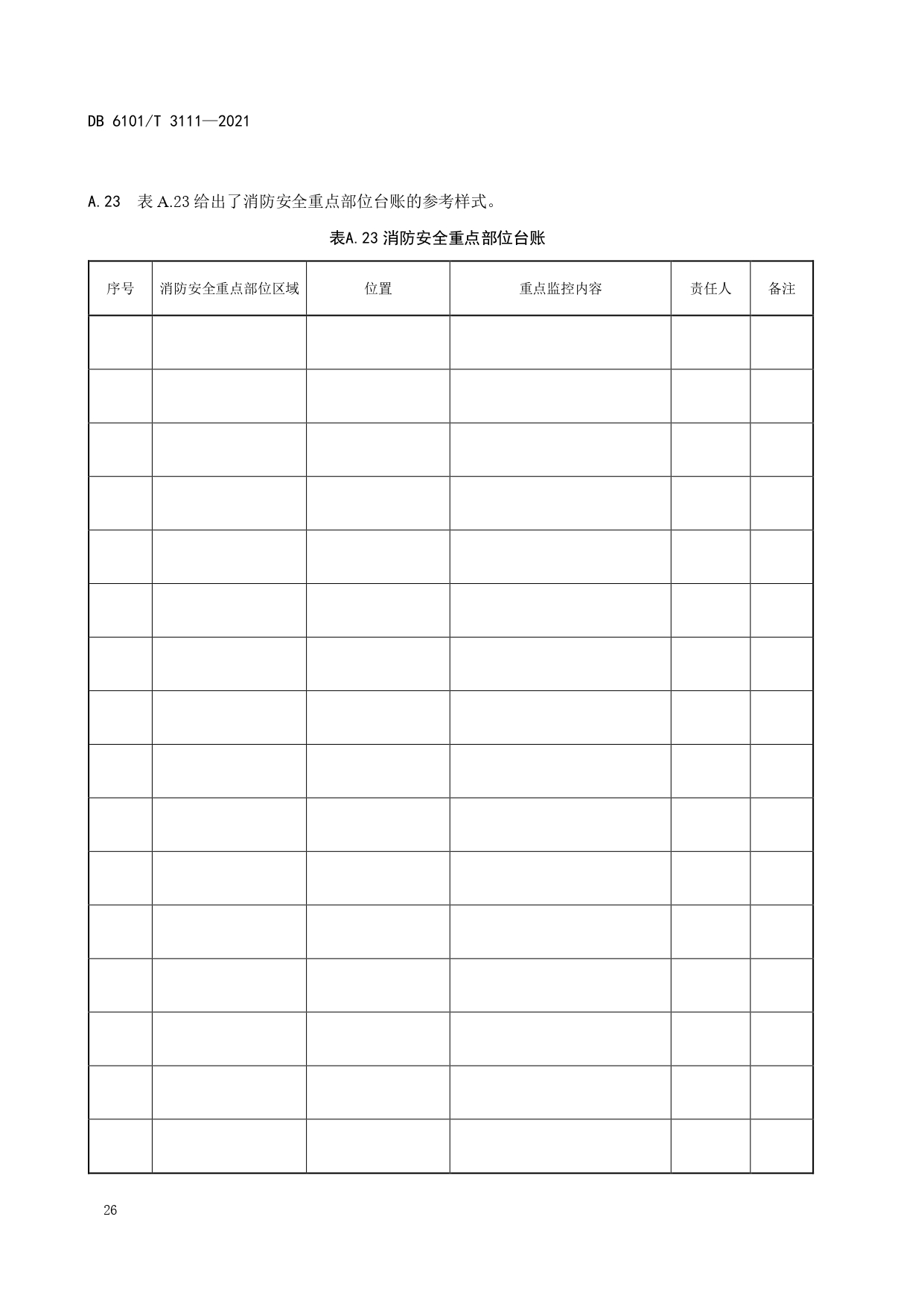 消防档案管理规范DB6101/T 3111-2021