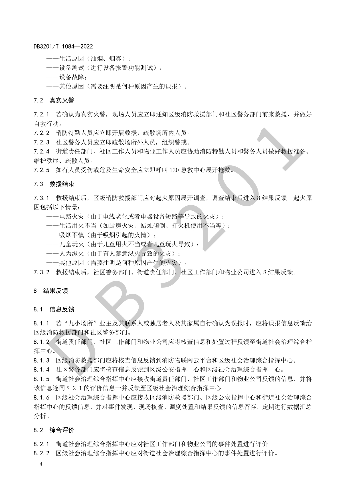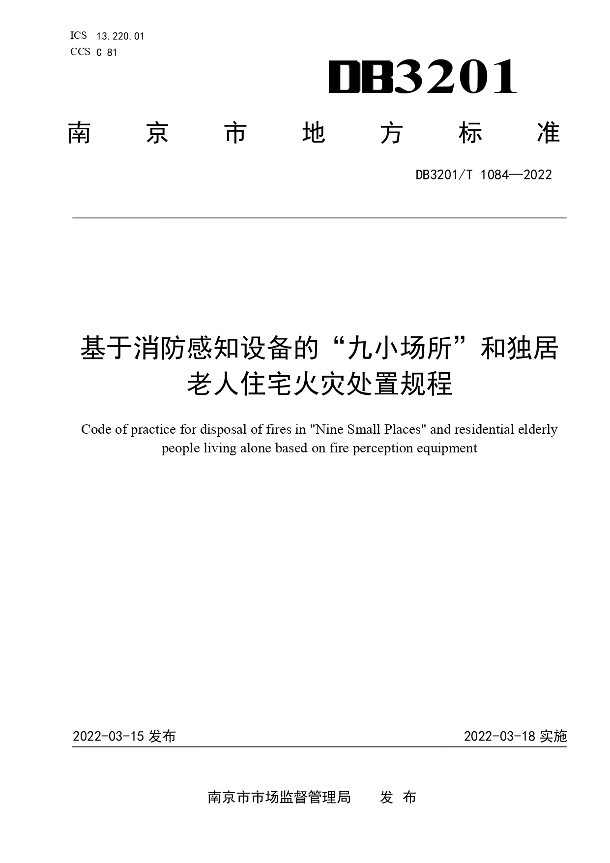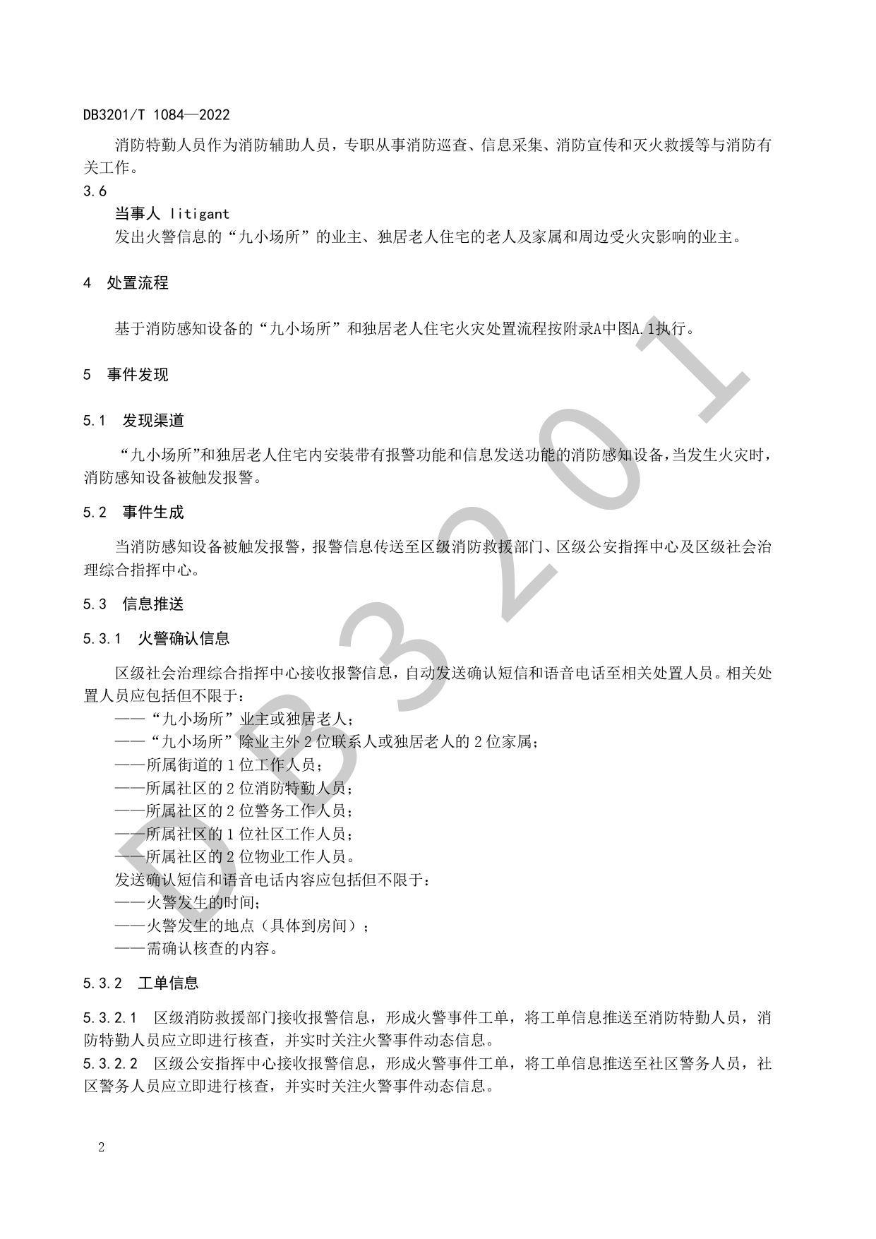 基于消防感知设备的“九小场所”和独居老人住宅火灾处置规程DB3201/T 1084—2022