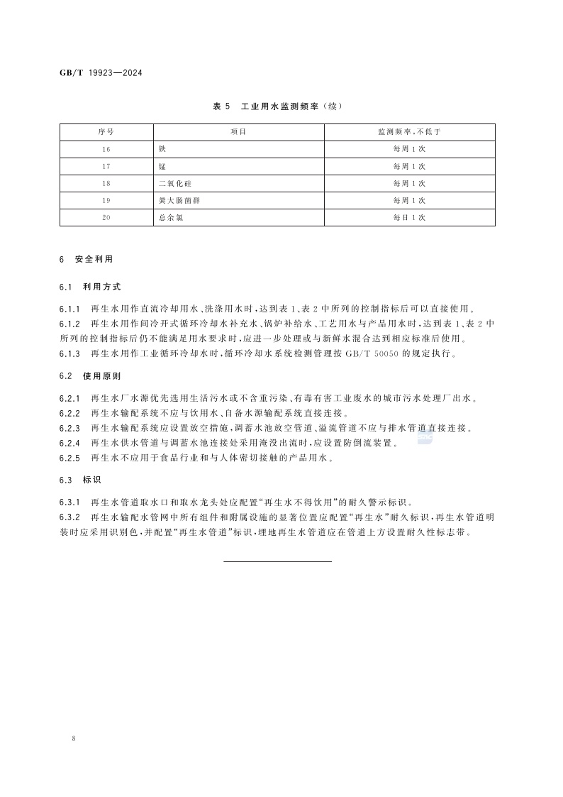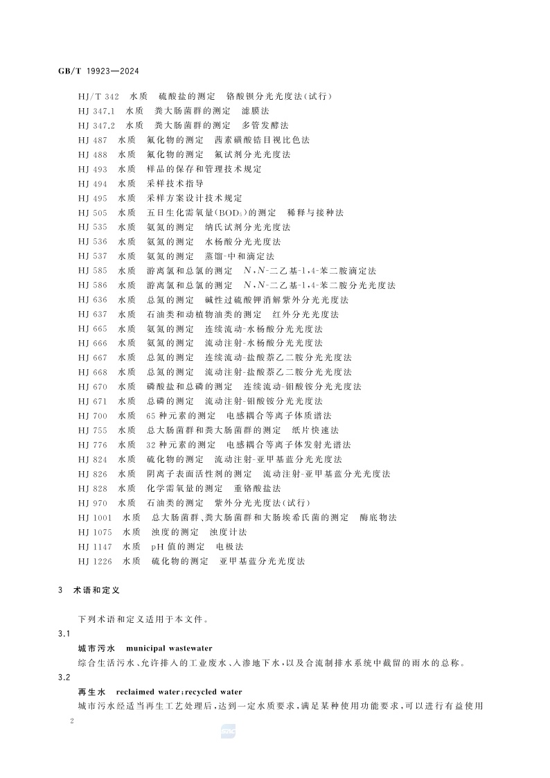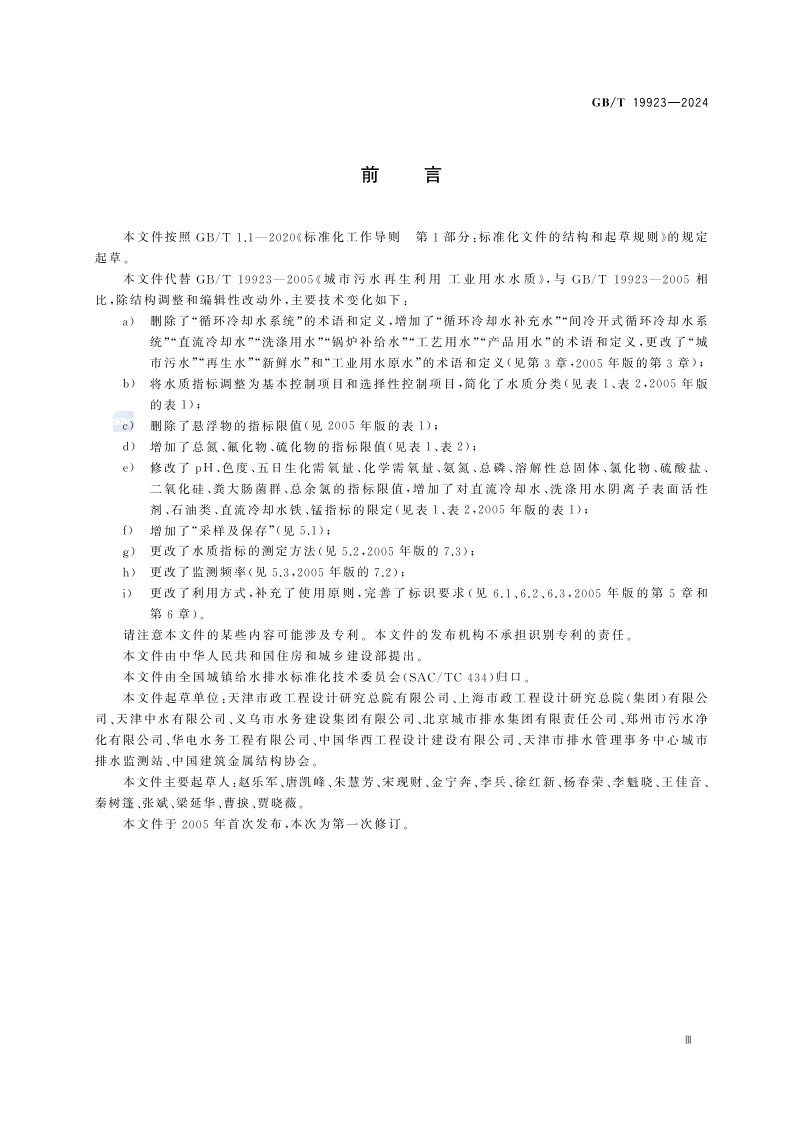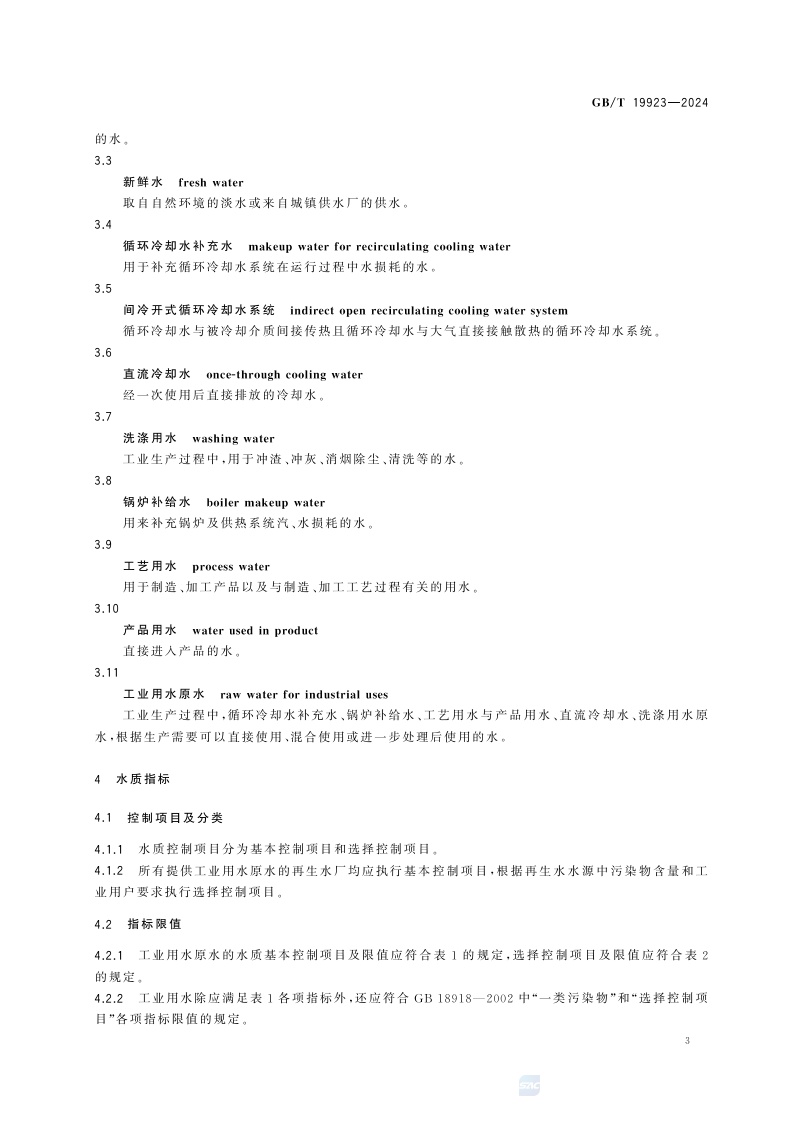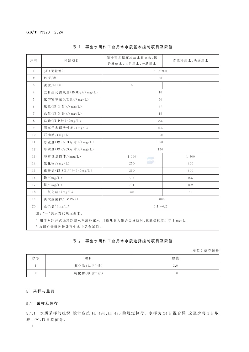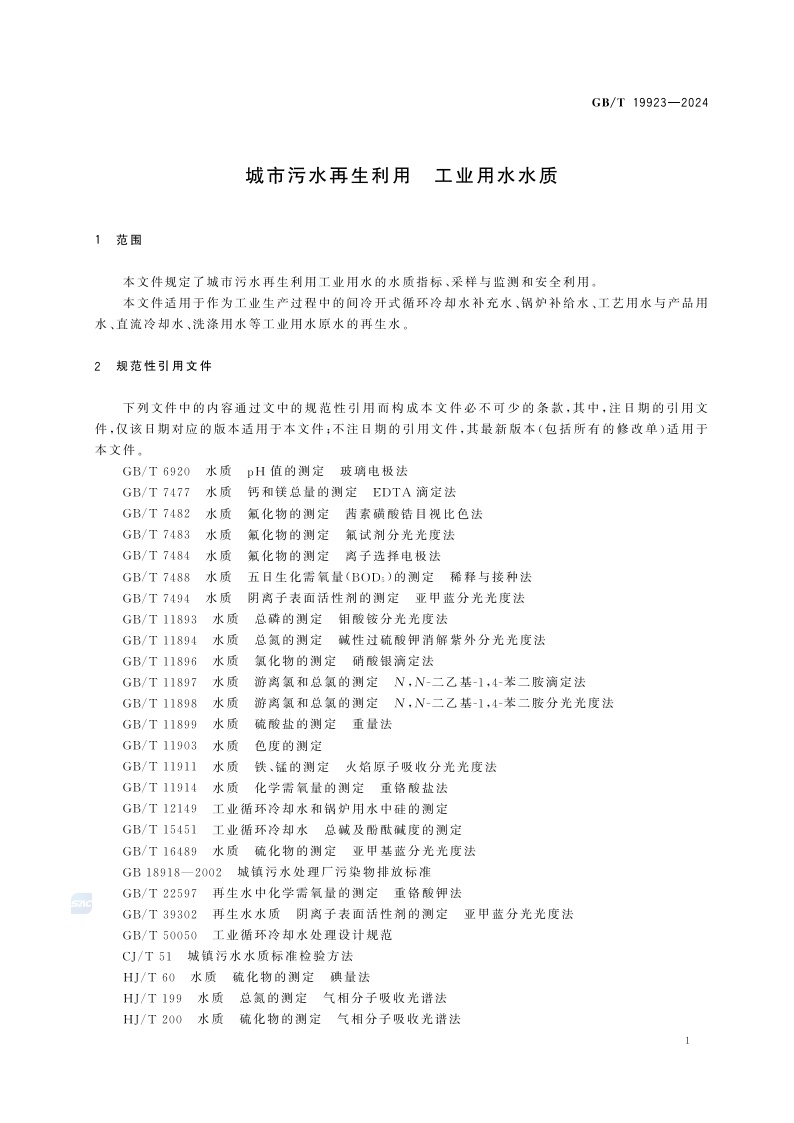《城市污水再生利用 工业用水水质》(GB/T 19923-2024)