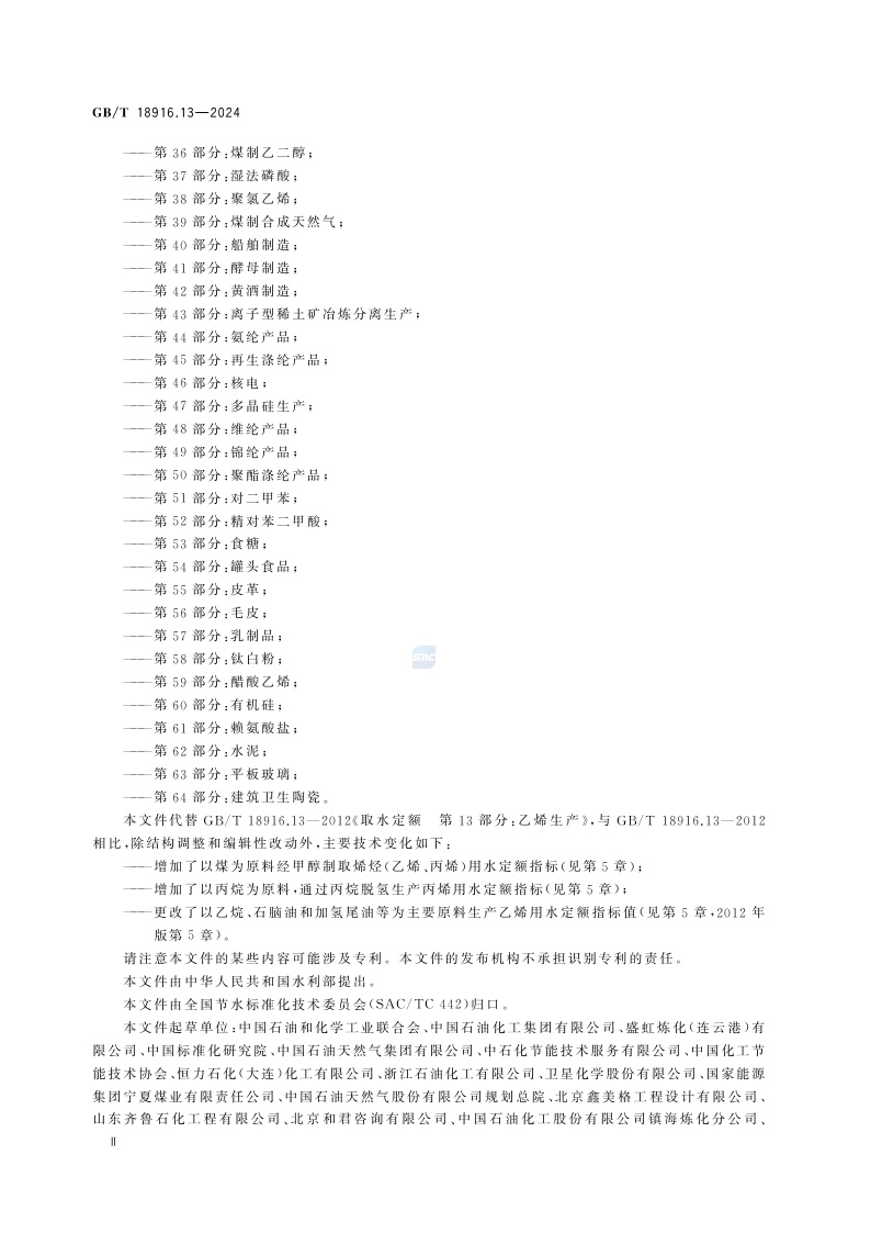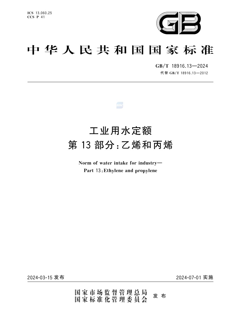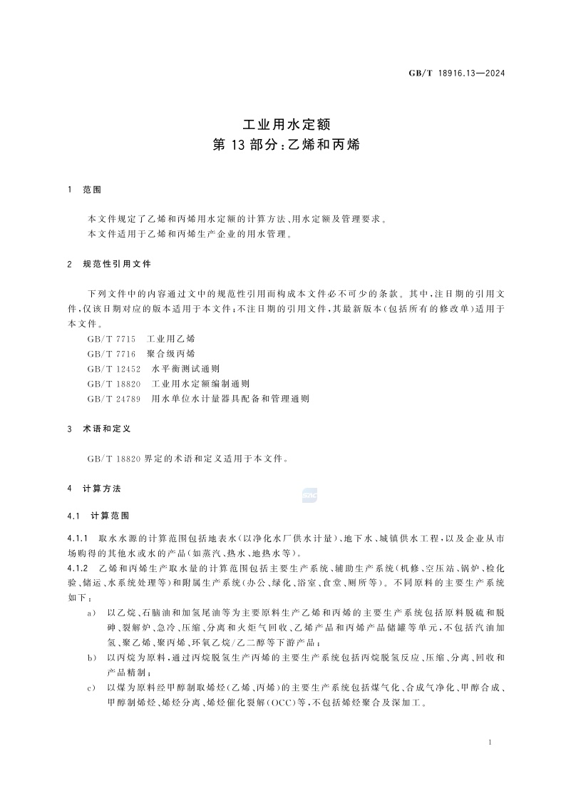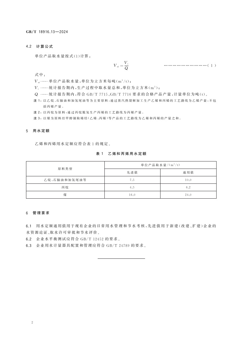 《工业用水定额 第13部分:乙烯和丙烯》(GB/T 18916.13-2024)