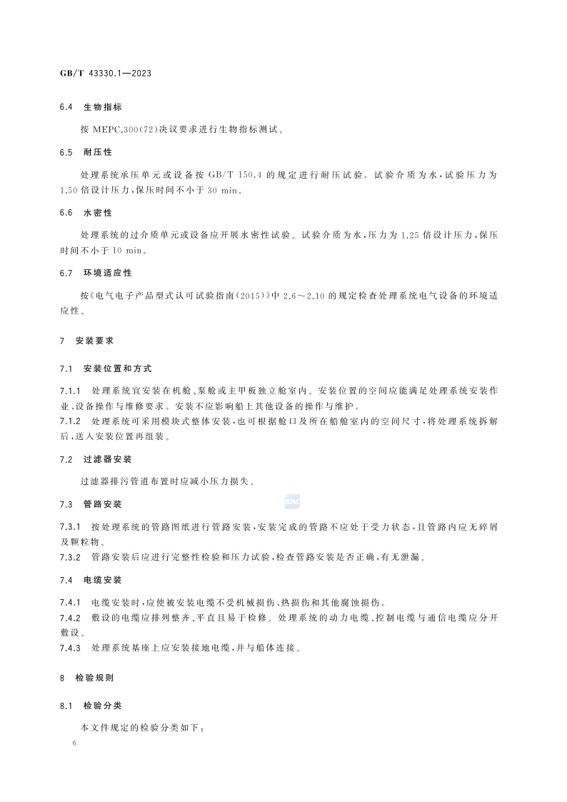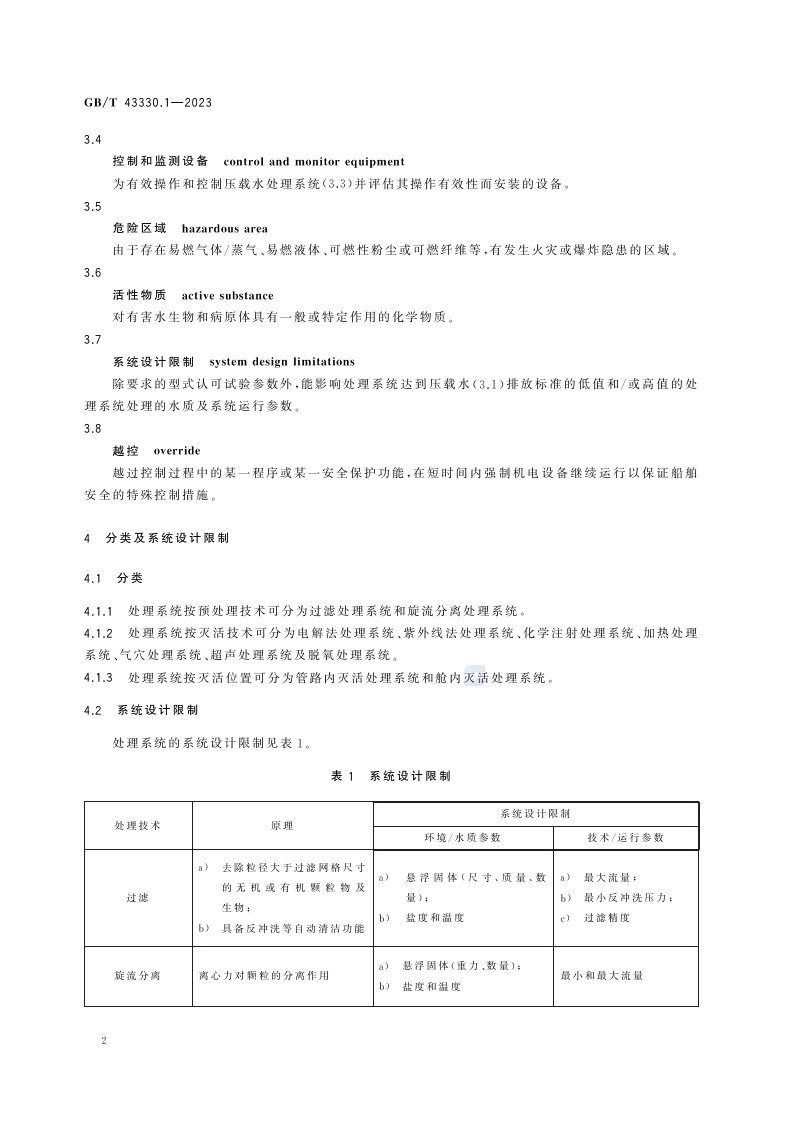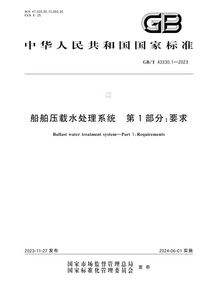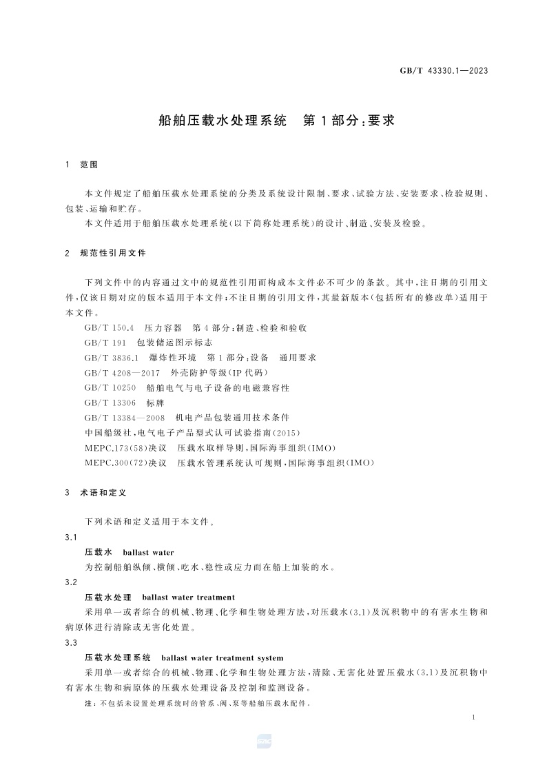 《船舶压载水处理系统 第1部分:要求》(GB/T 43330.1-2023)