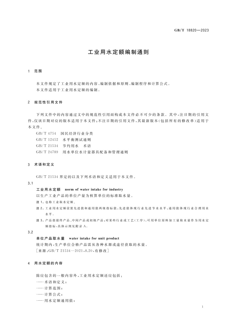 《工业用水定额编制通则》(GB/T 18820-2023)