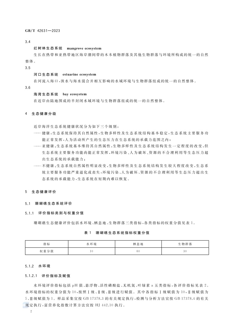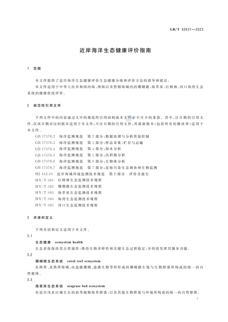 《近岸海洋生态健康评价指南》(GB/T 42631-2023)