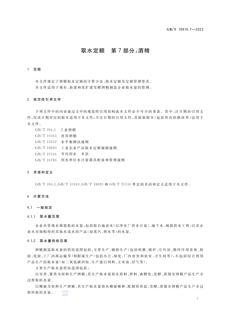 《取水定额 第7部分:酒精》(GB/T 18916.7-2023)