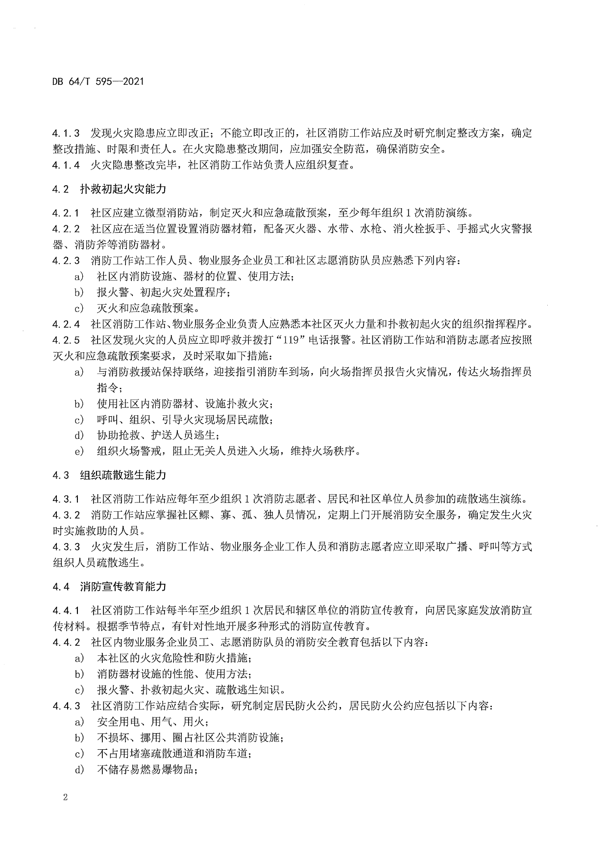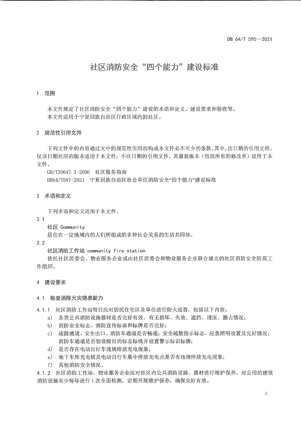社区消防安全“四个能力”建设标准DB64/T 595-2021