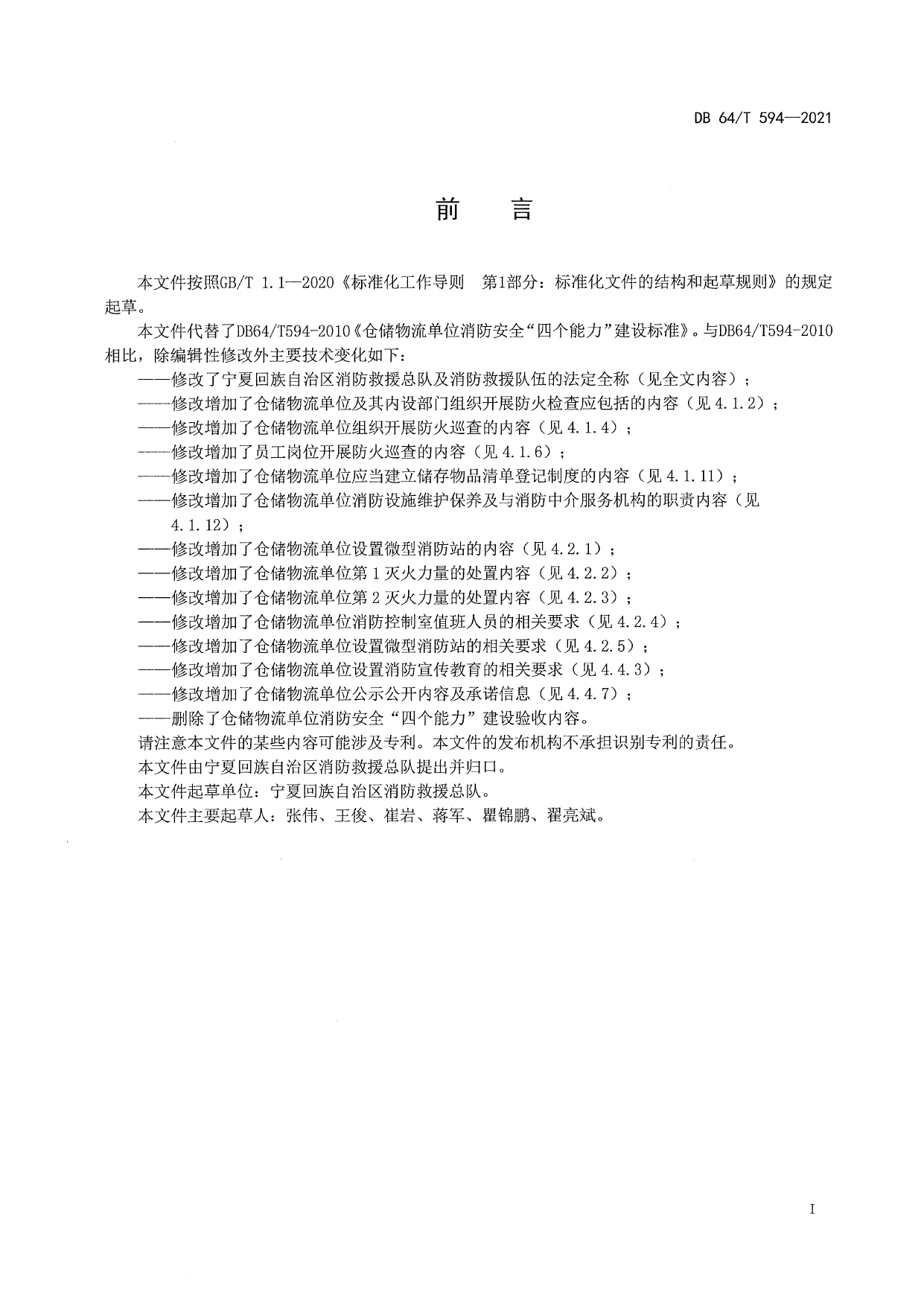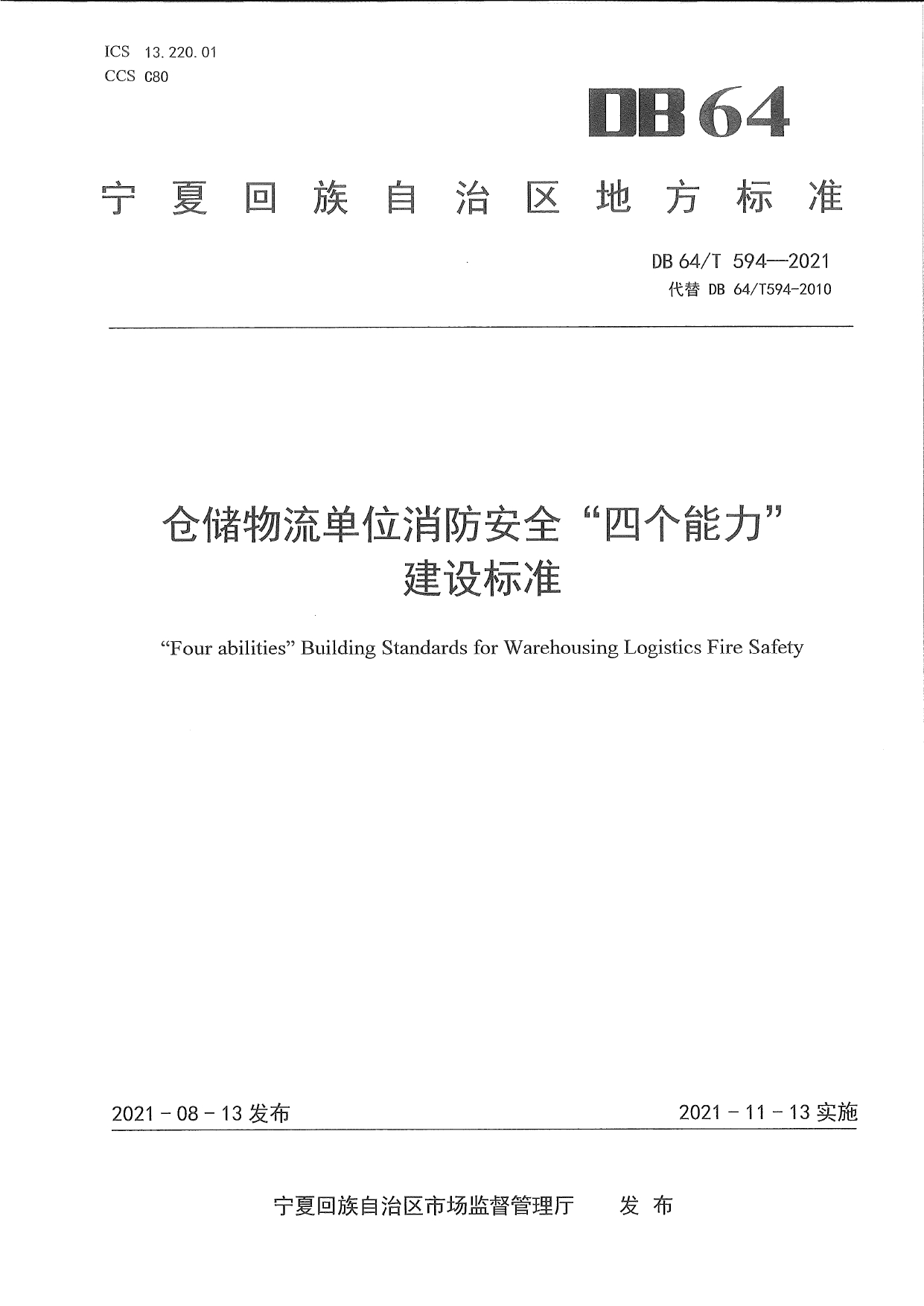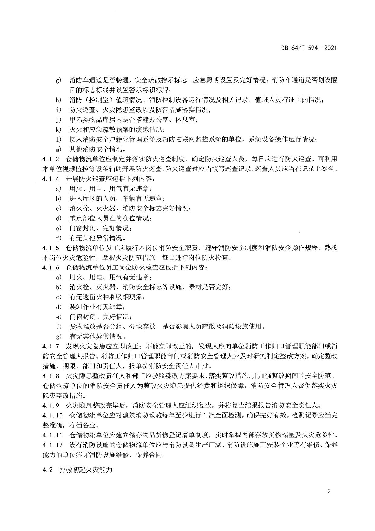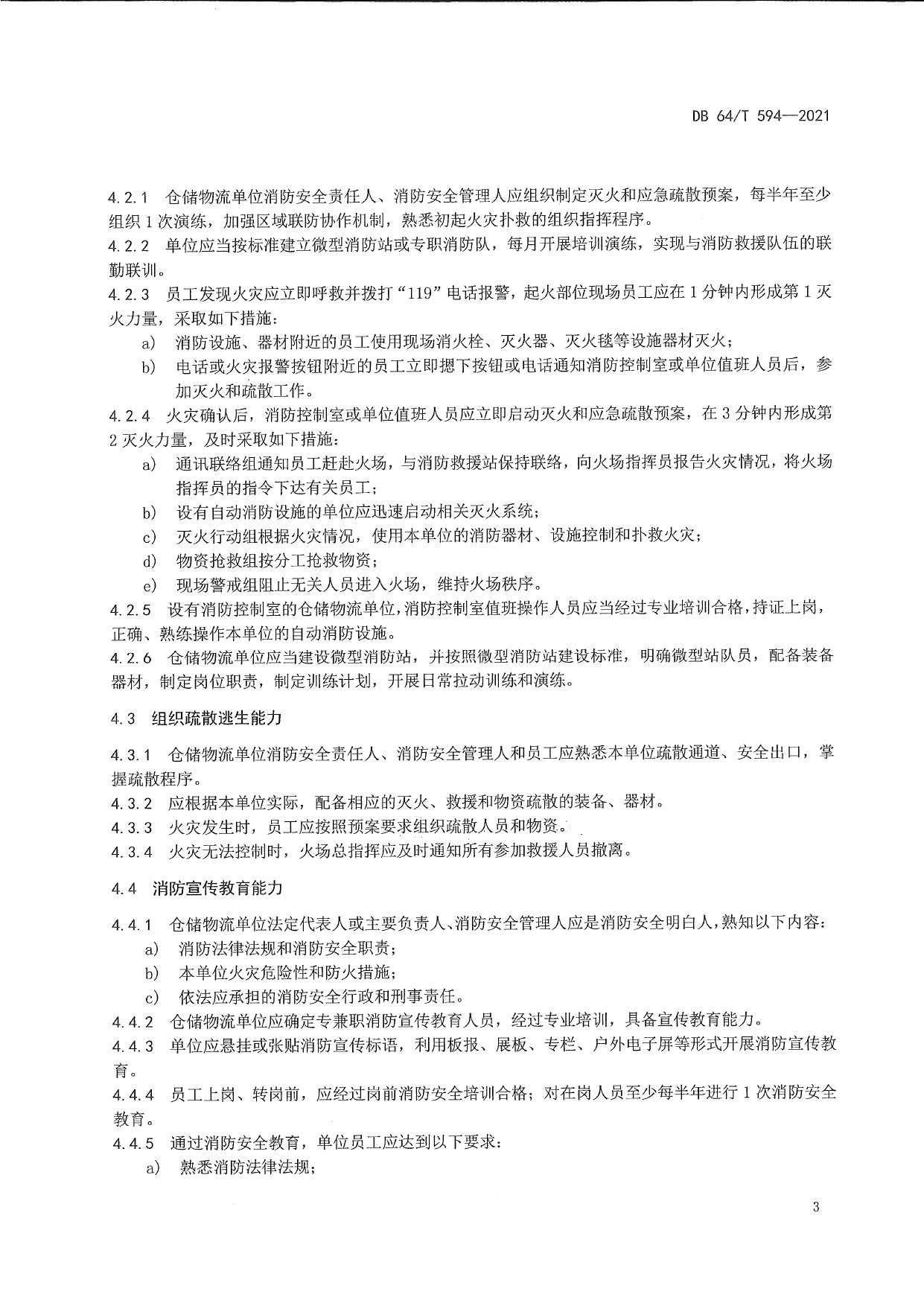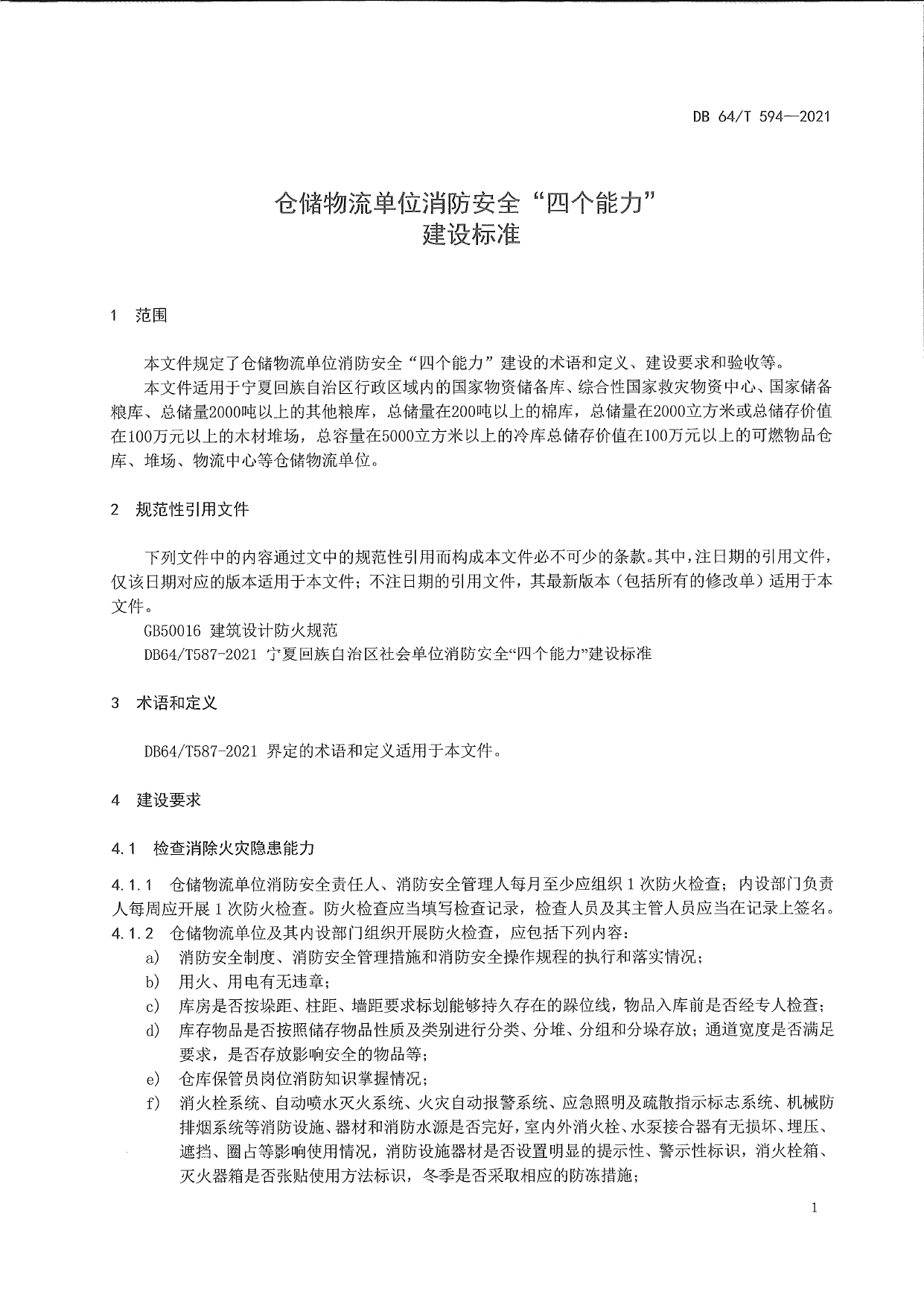 仓储物流单位消防安全“四个能力”建设标准DB64/T 594-2021