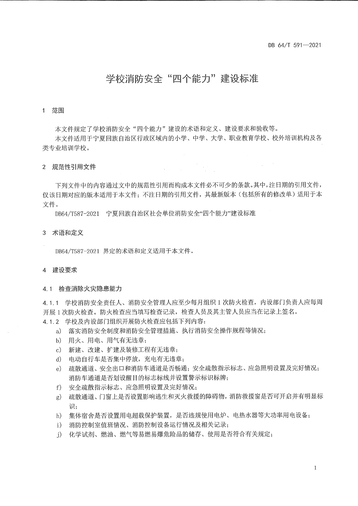 学校消防安全“四个能力”建设标准DB64/T 591-2021