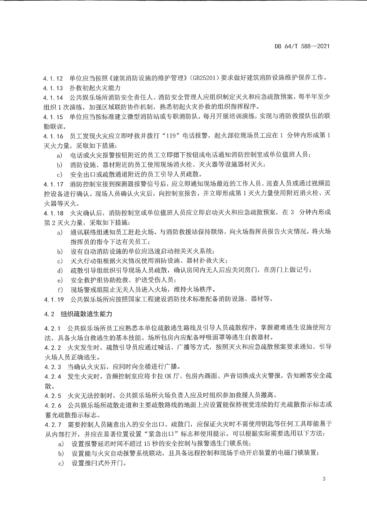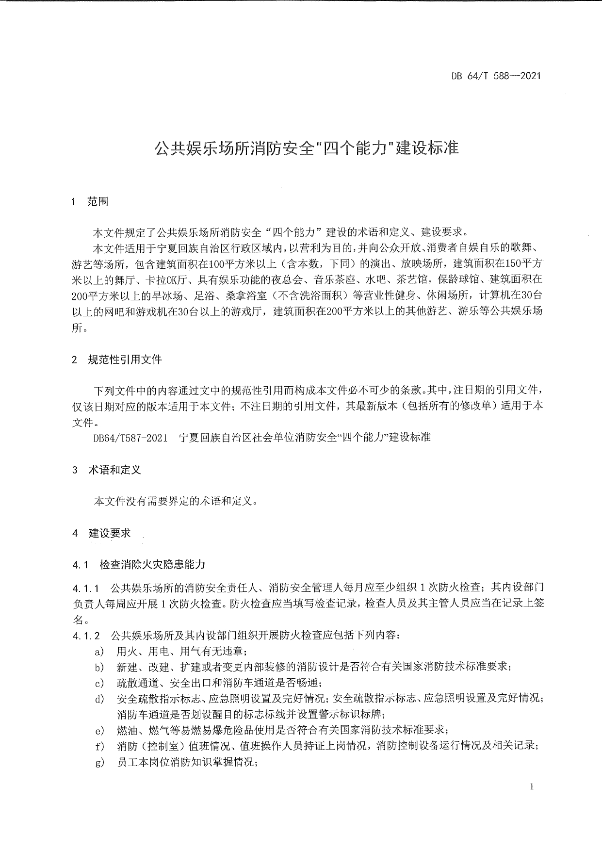 公共娱乐场所消防安全“四个能力”建设标准DB64/T 588-2021