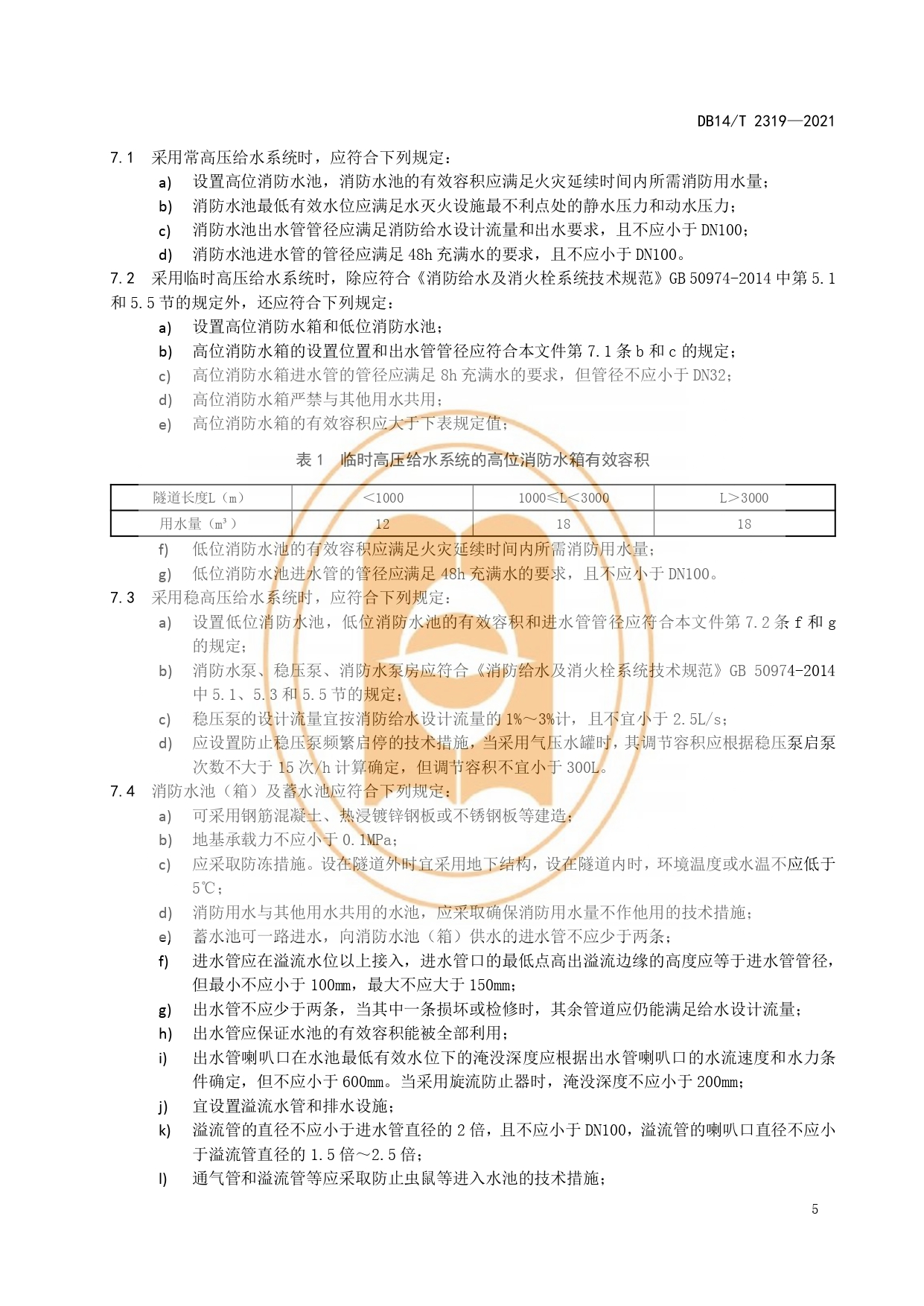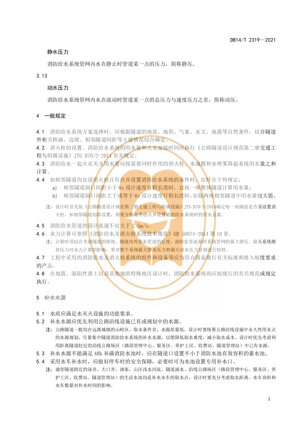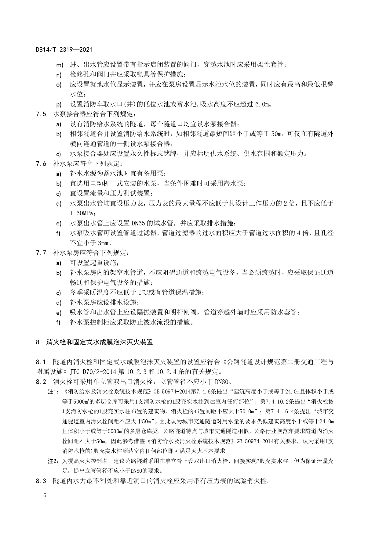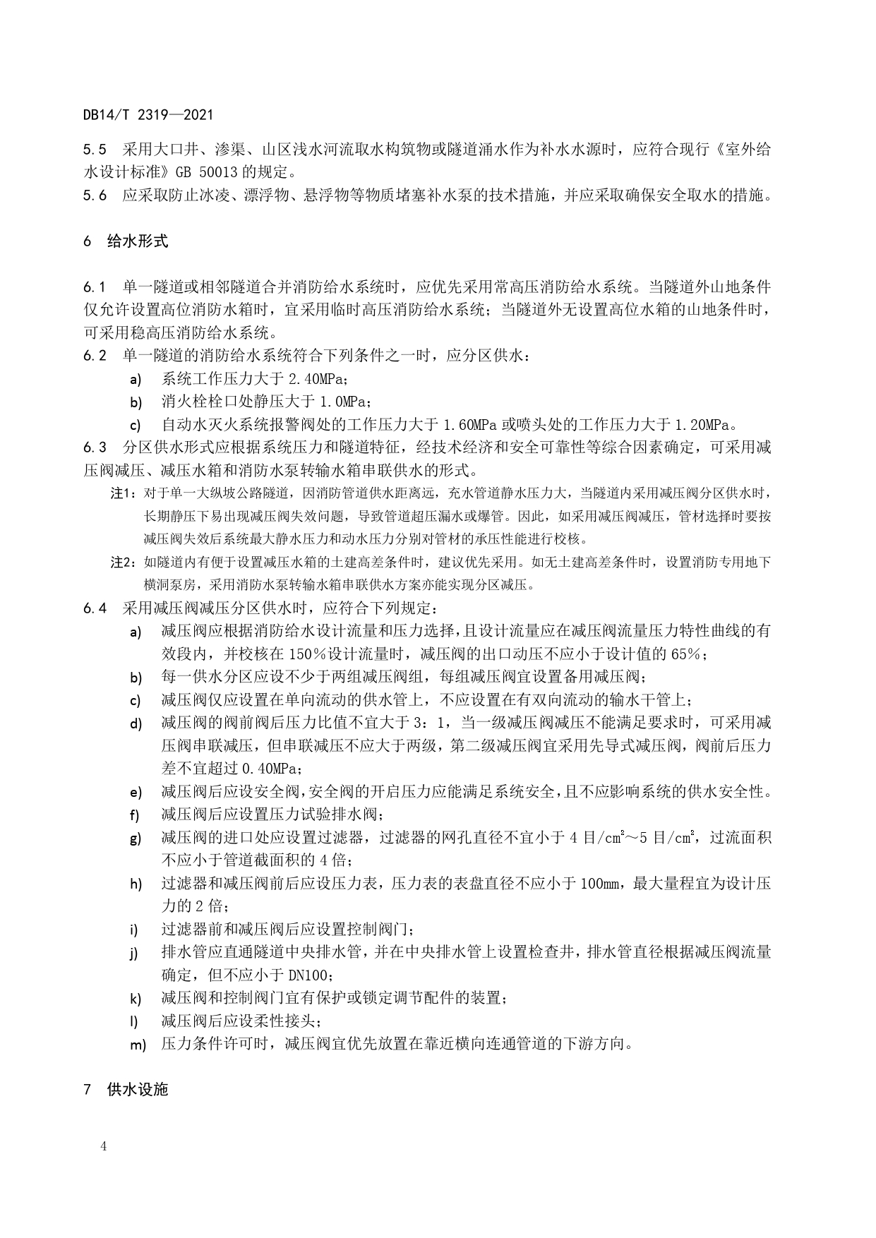 公路隧道消防给水系统设计细则DB14/T 2319-2021