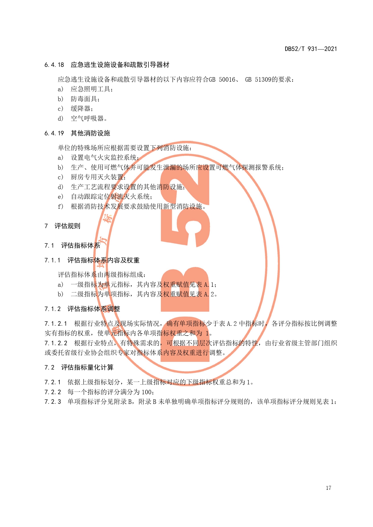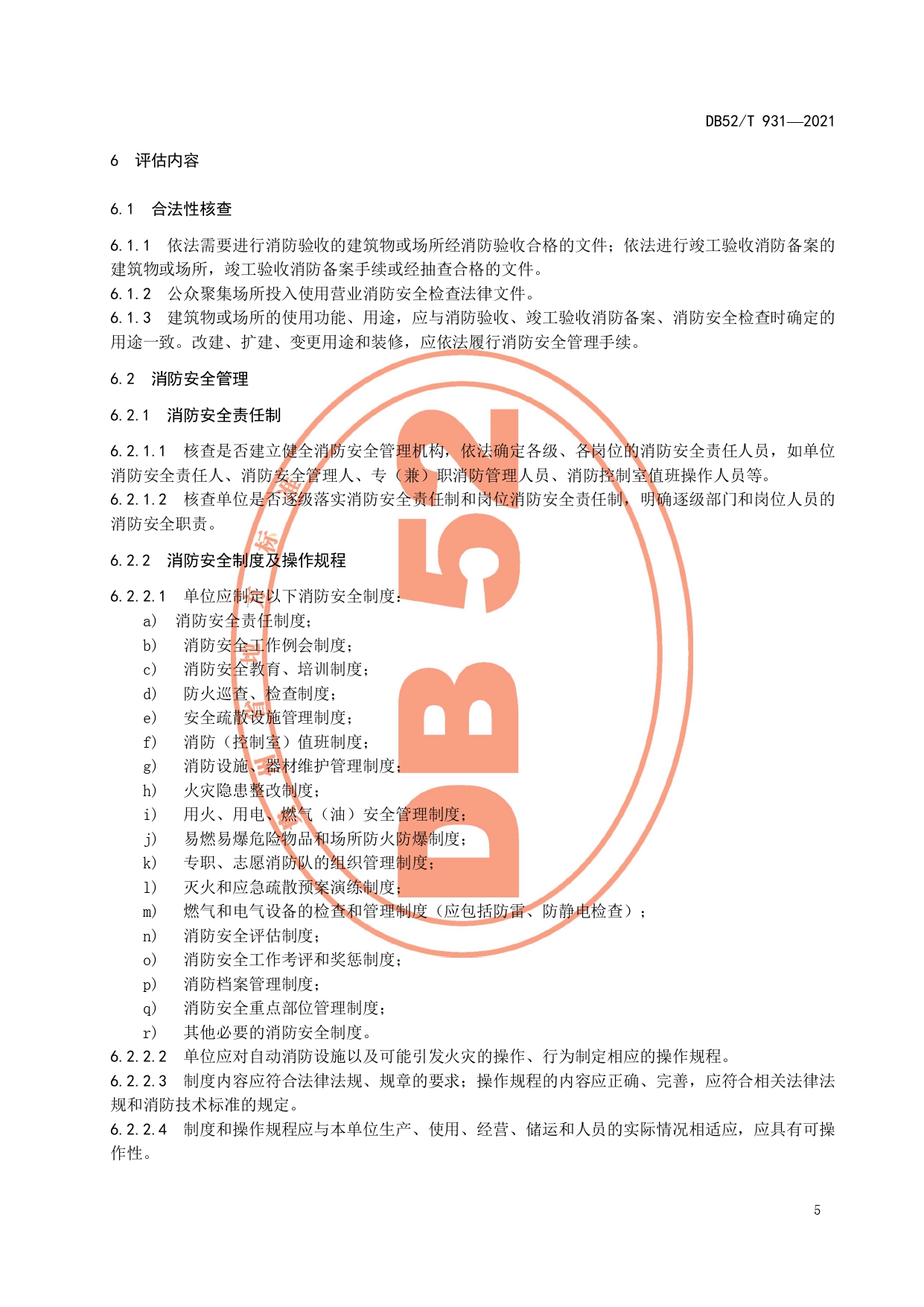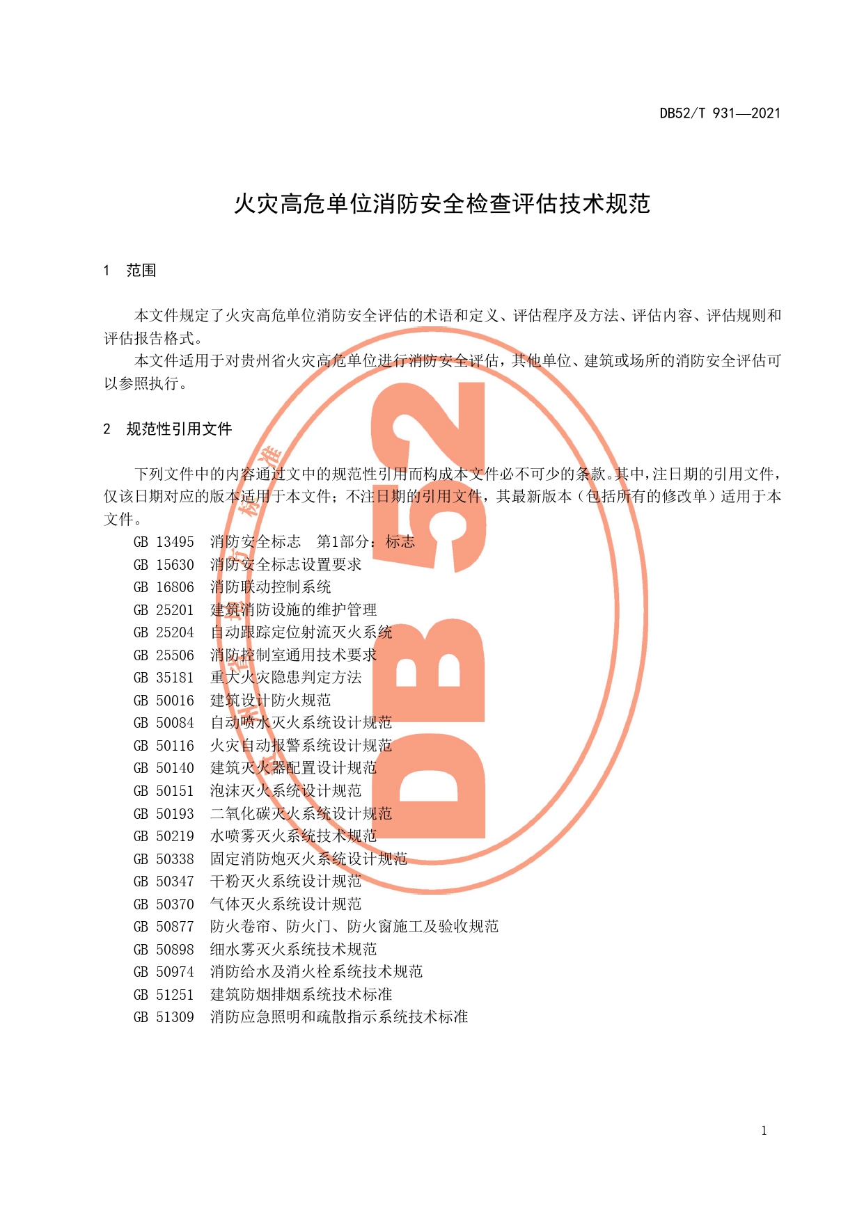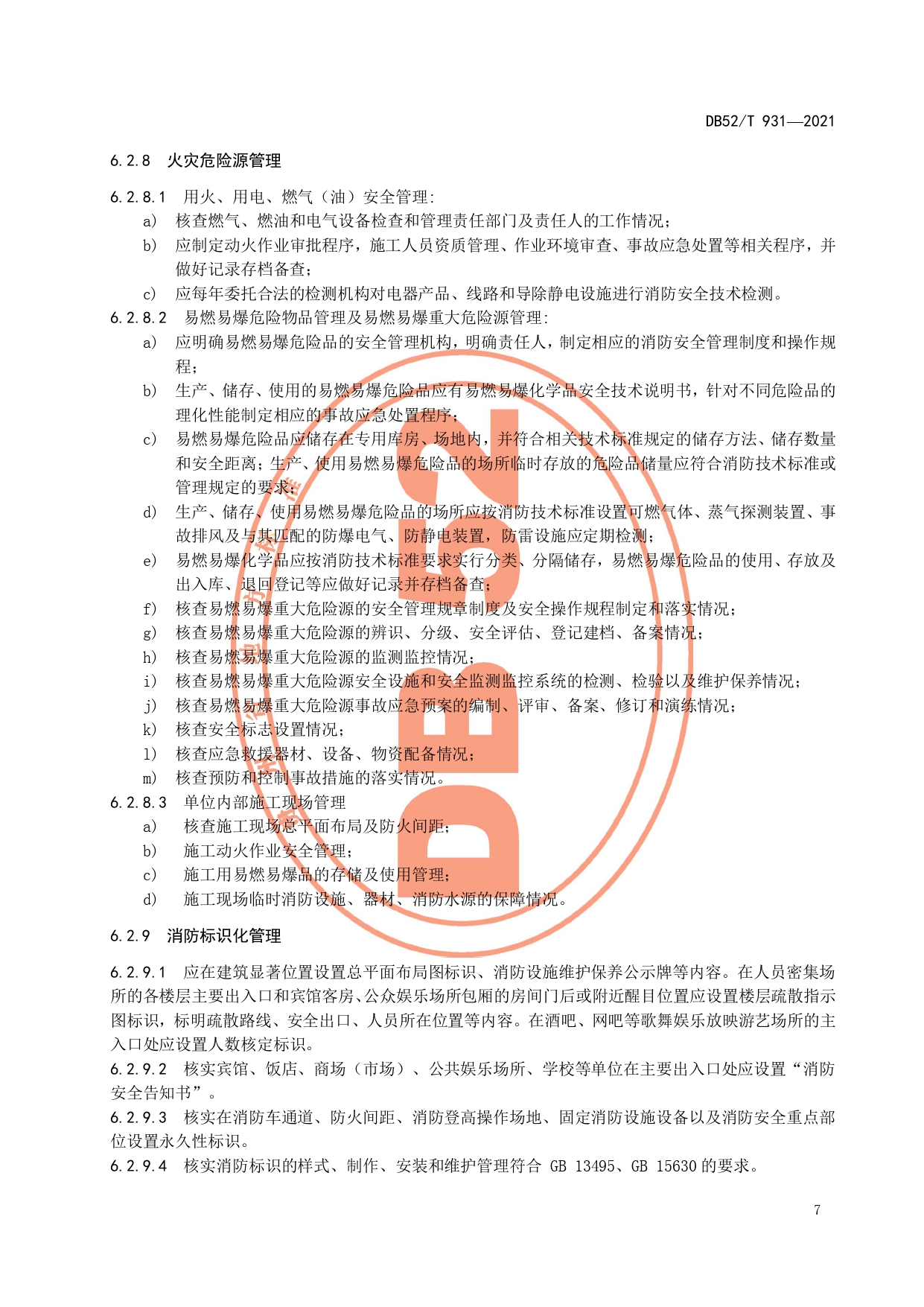 火灾高危单位消防安全检查评估技术规范DB52/T 931-2021