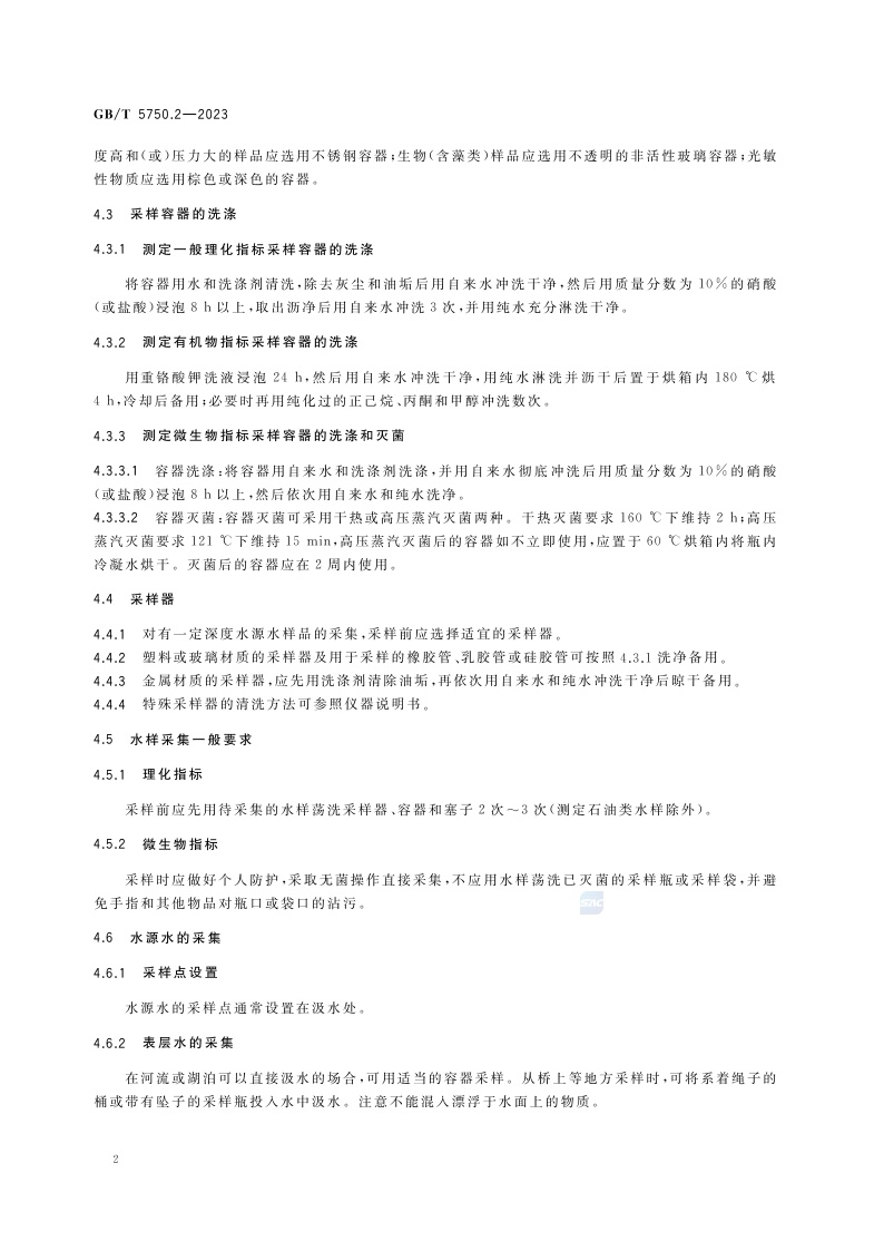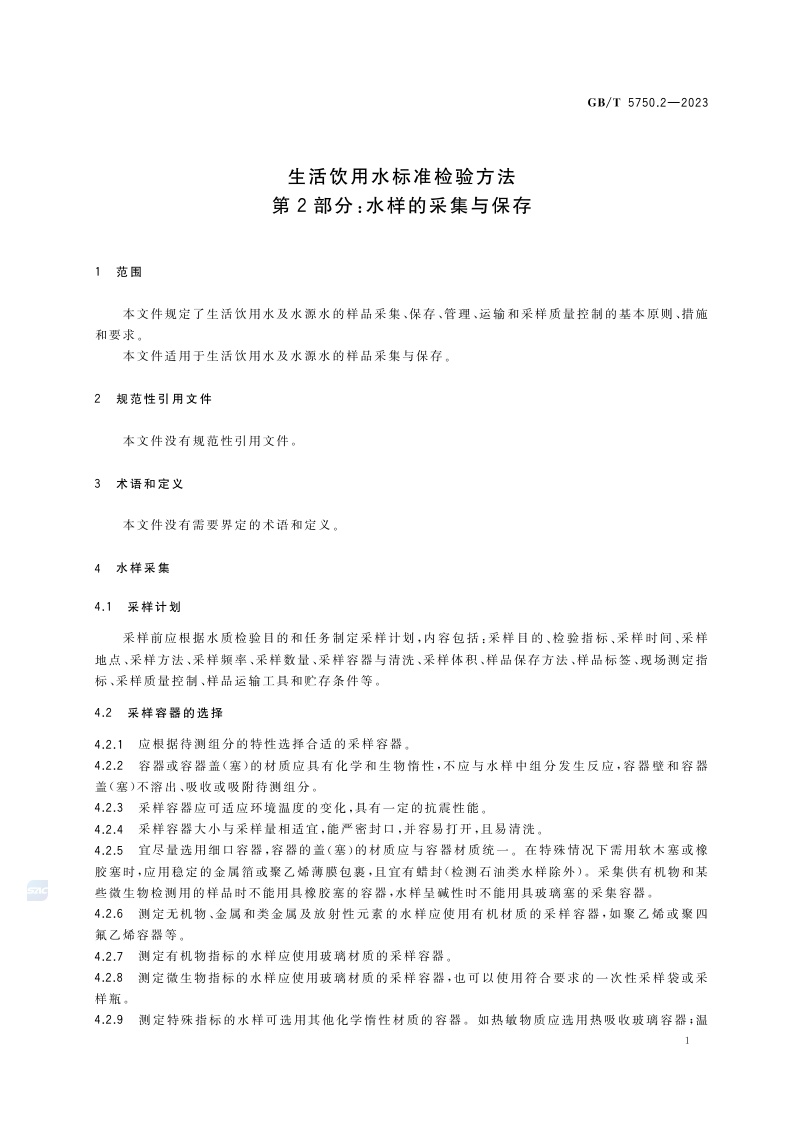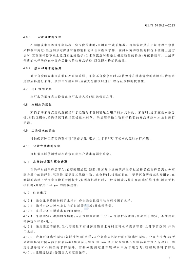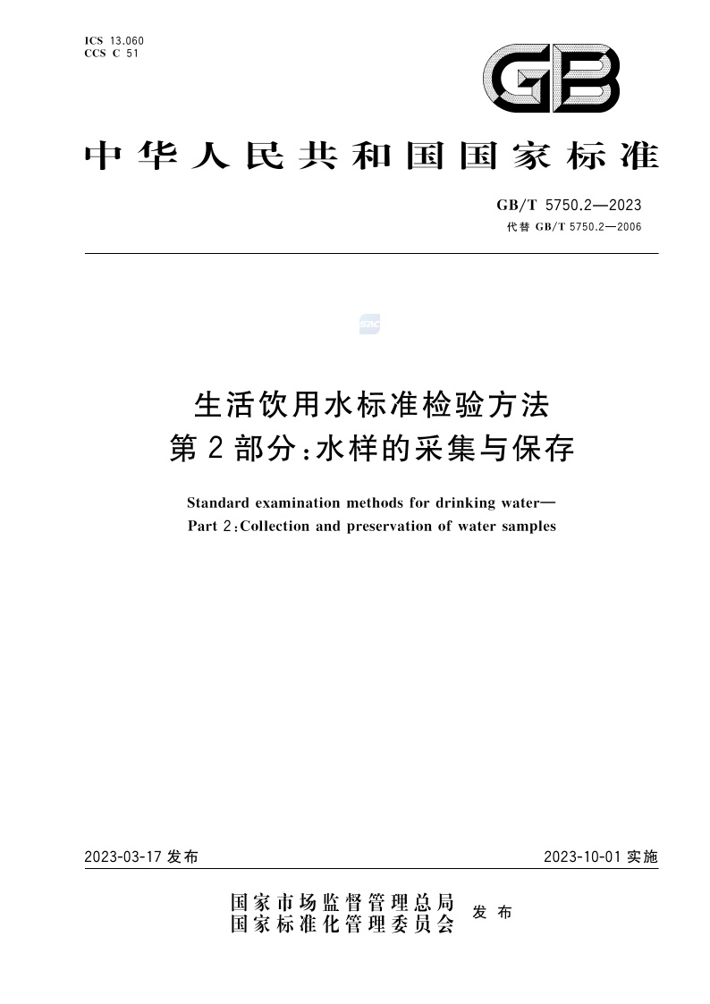 《生活饮用水标准检验方法 第2部分:水样的采集与保存》(GB/T 5750.2-2023)