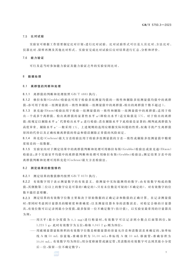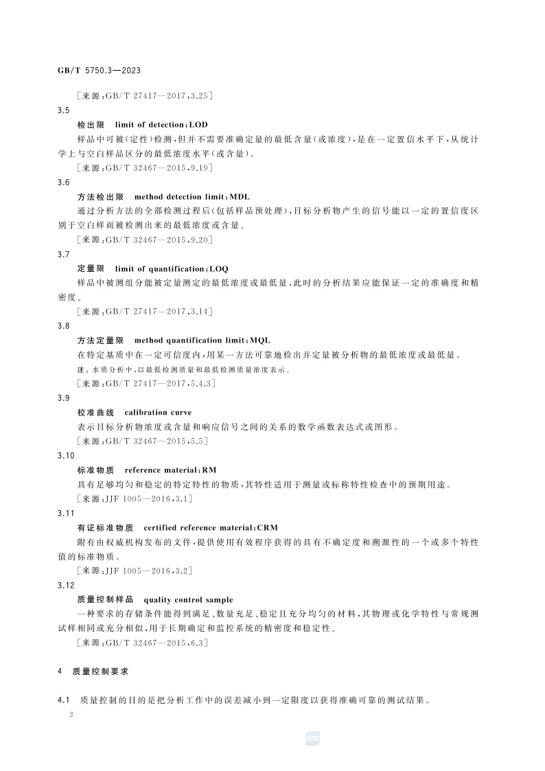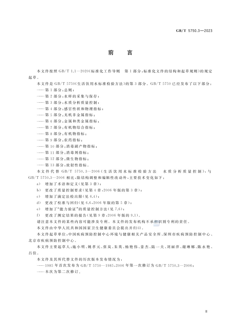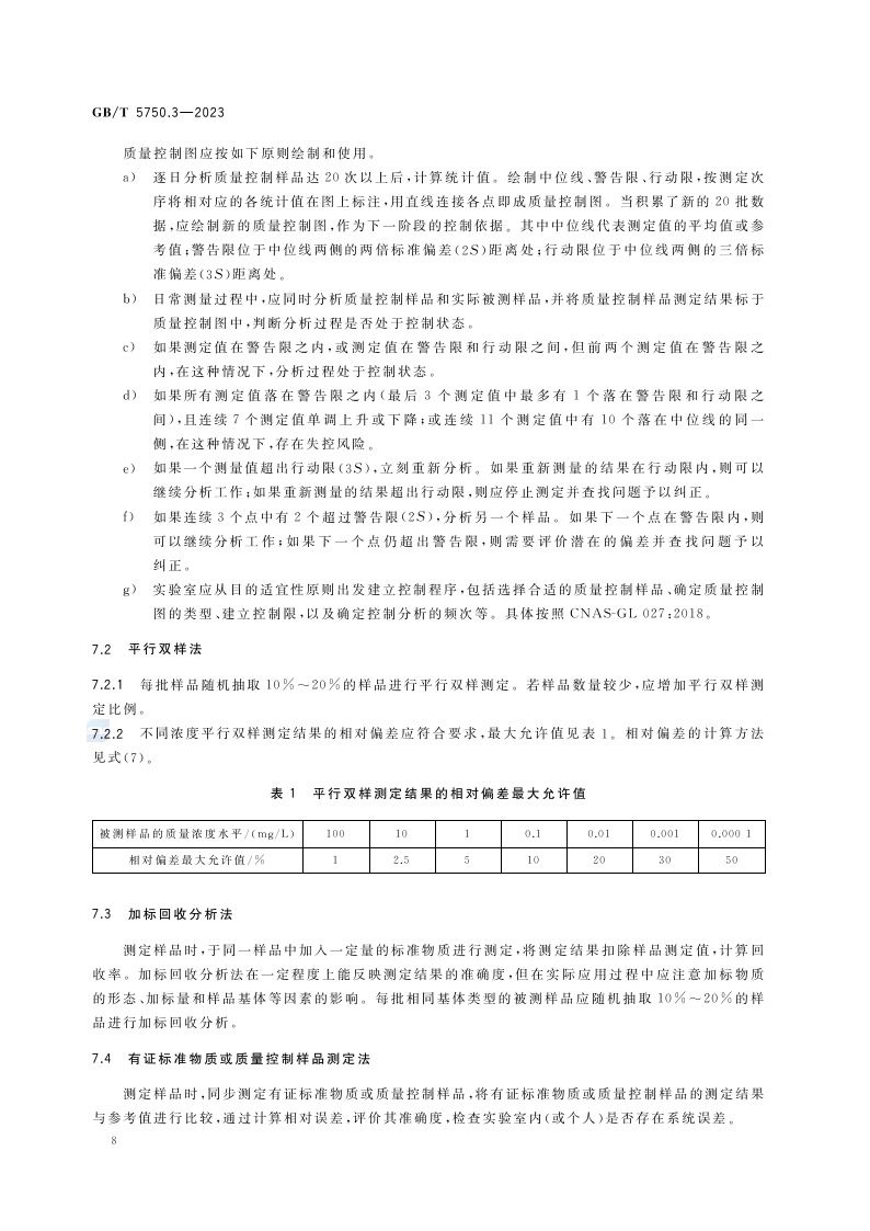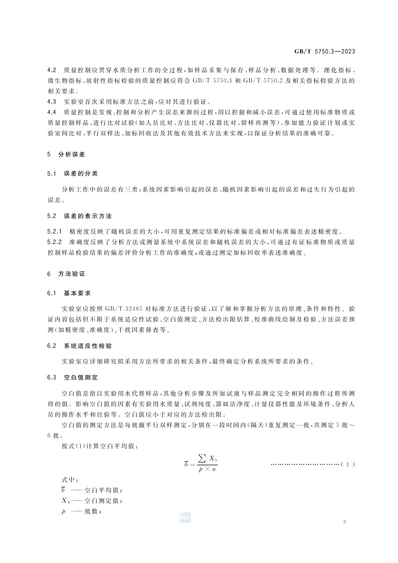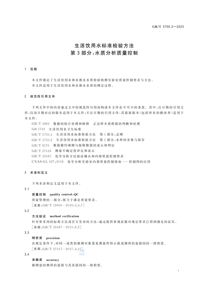 《生活饮用水标准检验方法 第3部分:水质分析质量控制》(GB/T 5750.3-2023)