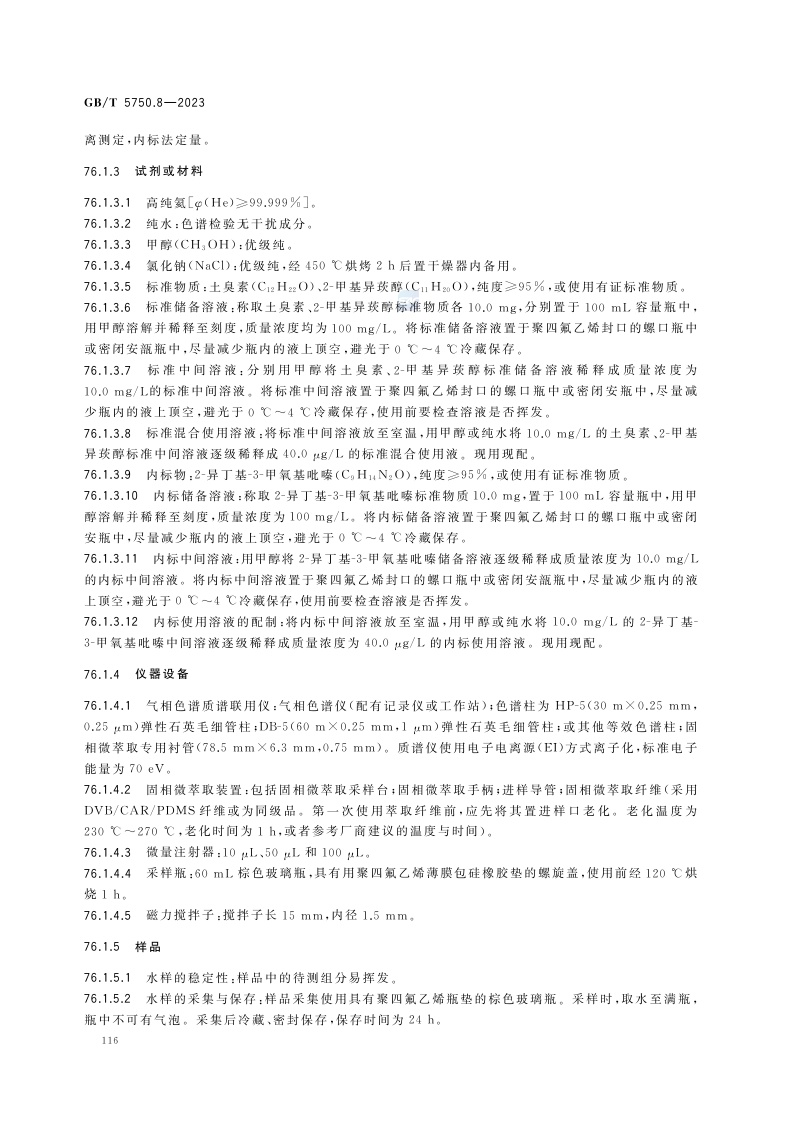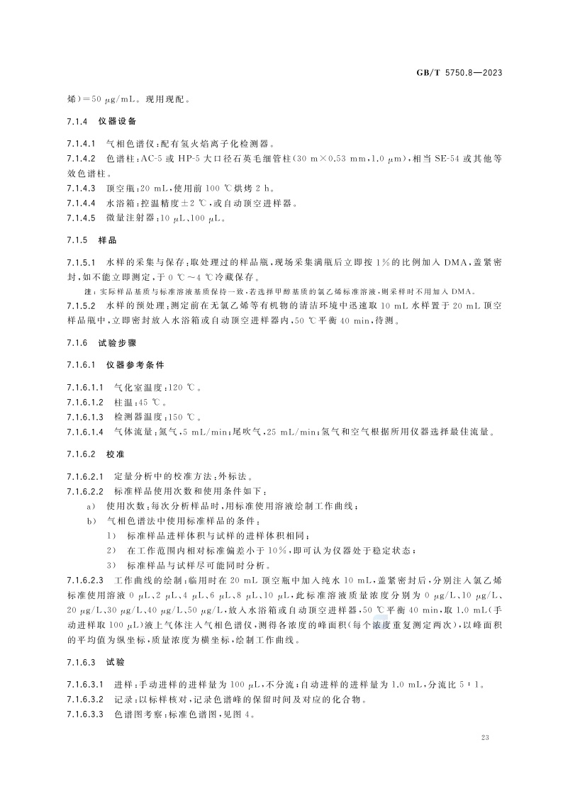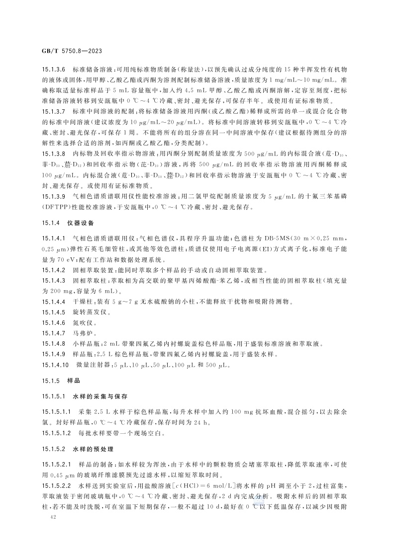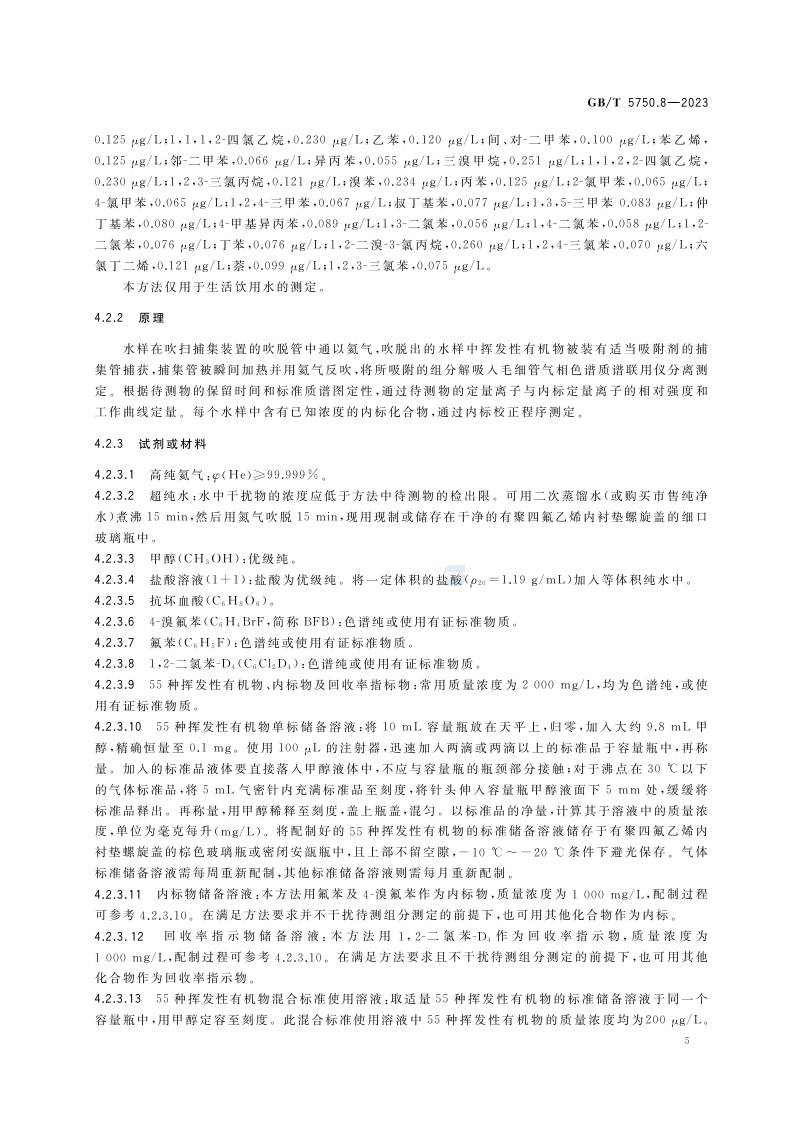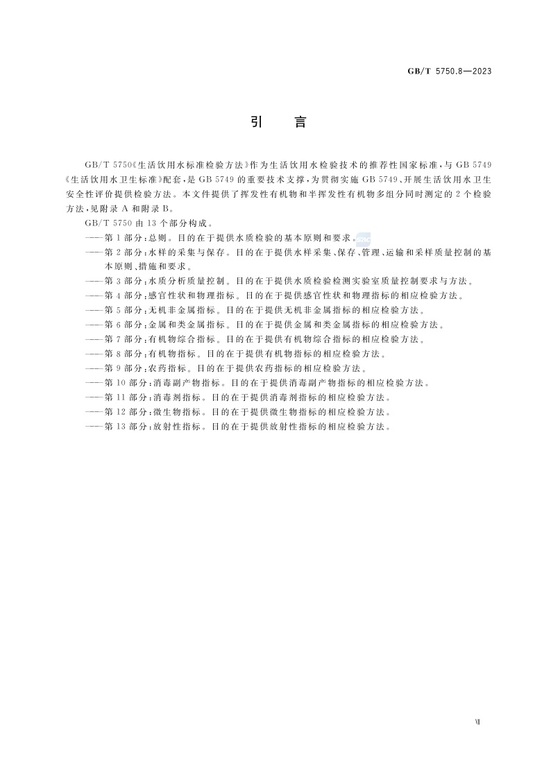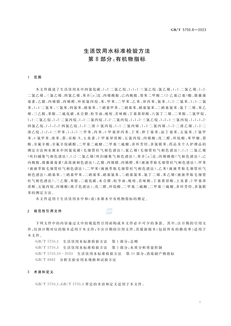 《生活饮用水标准检验方法 第8部分:有机物指标》(GB/T 5750.8-2023)