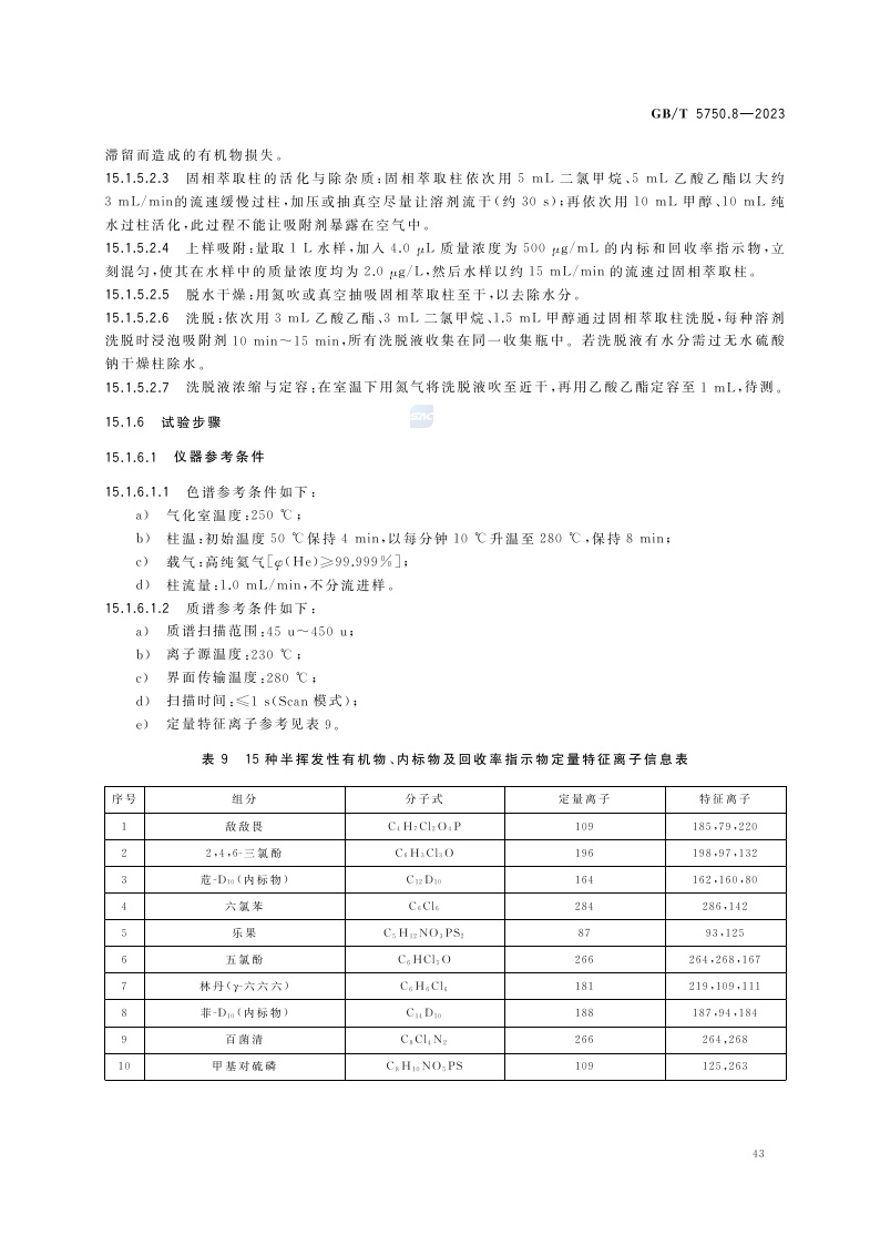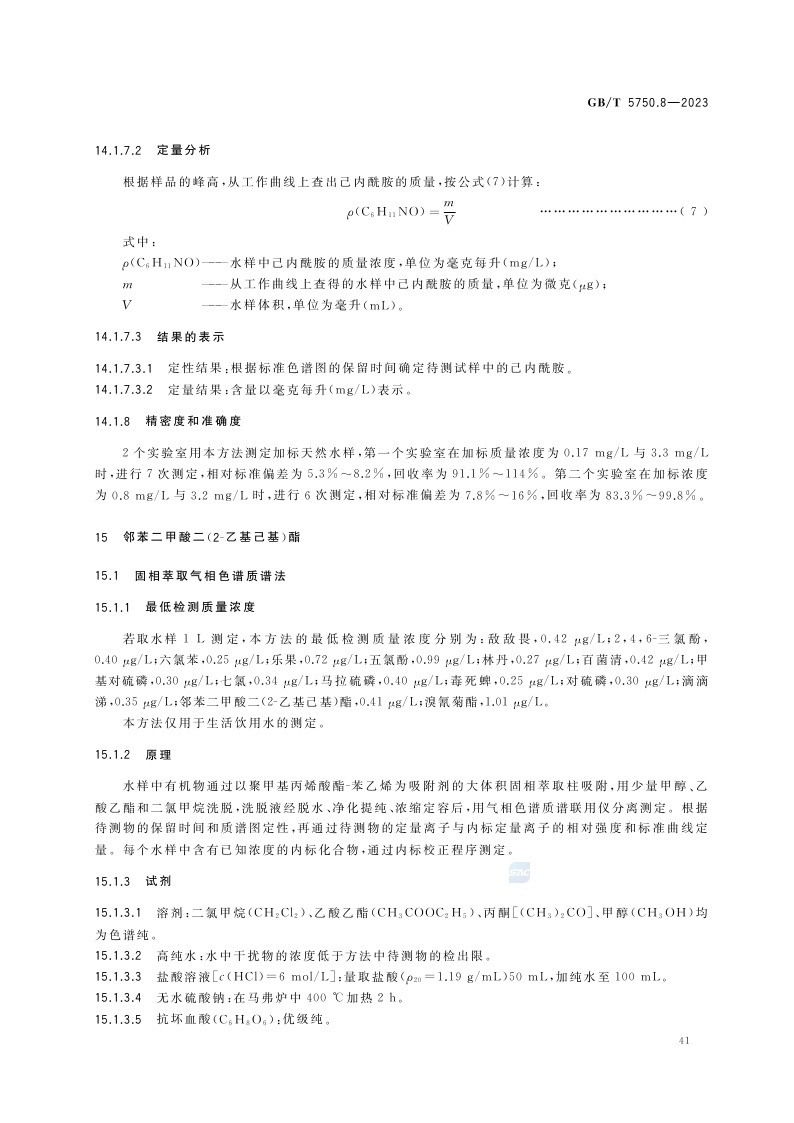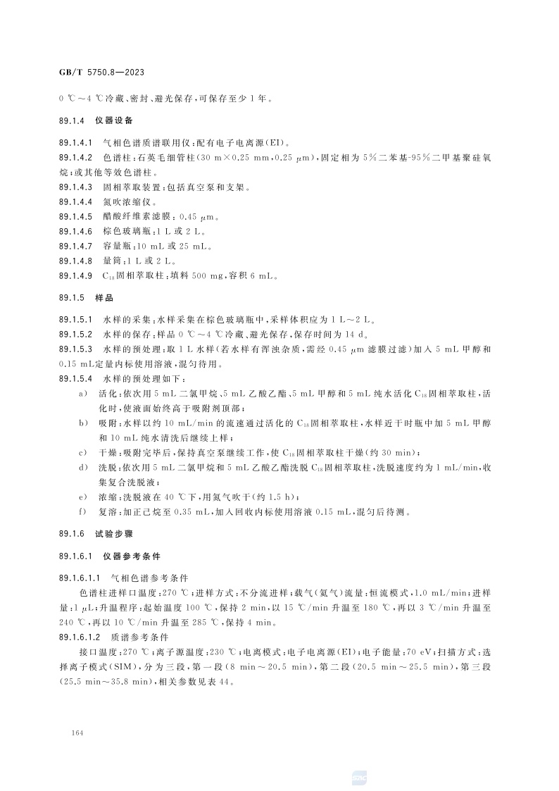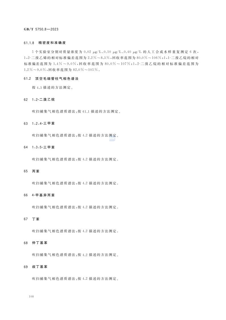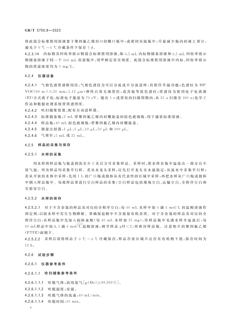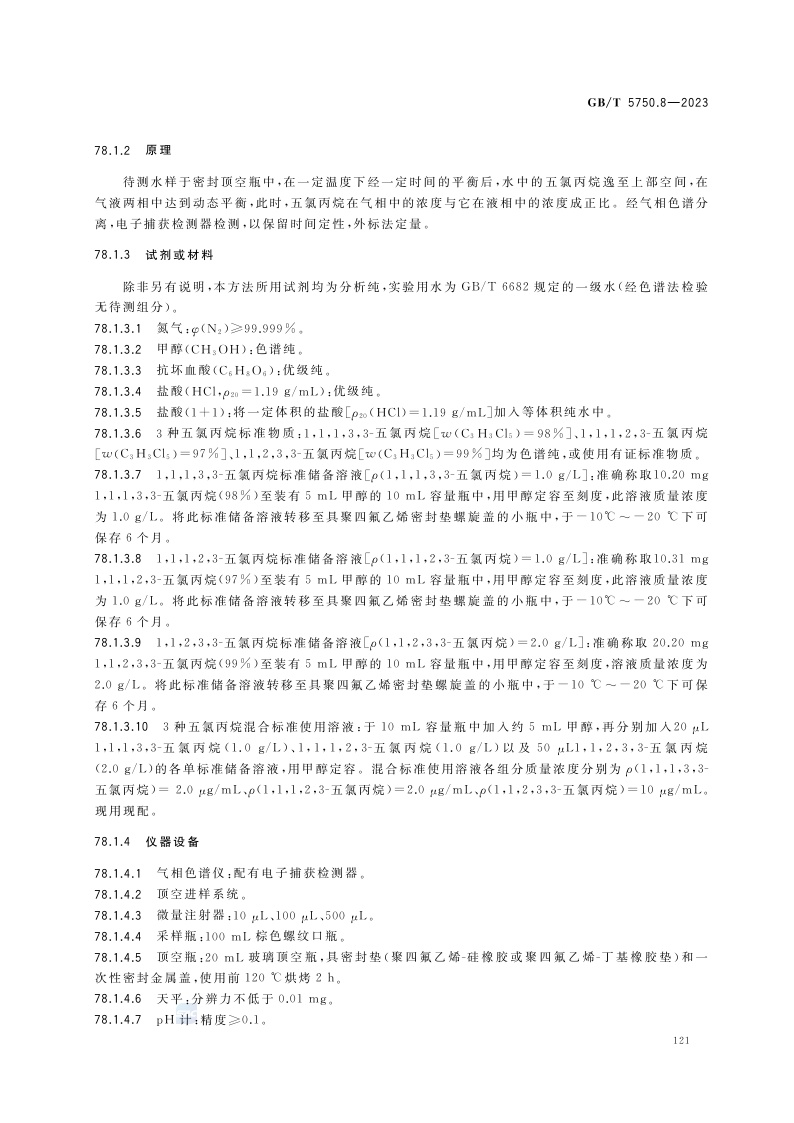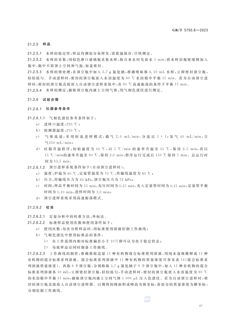《生活饮用水标准检验方法 第8部分:有机物指标》(GB/T 5750.8-2023)