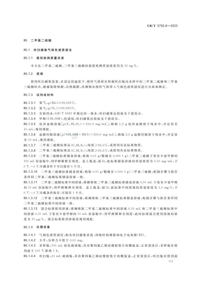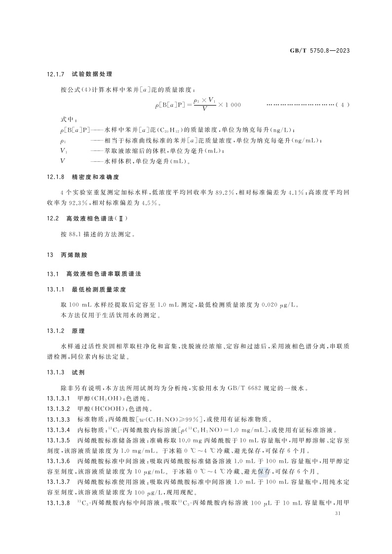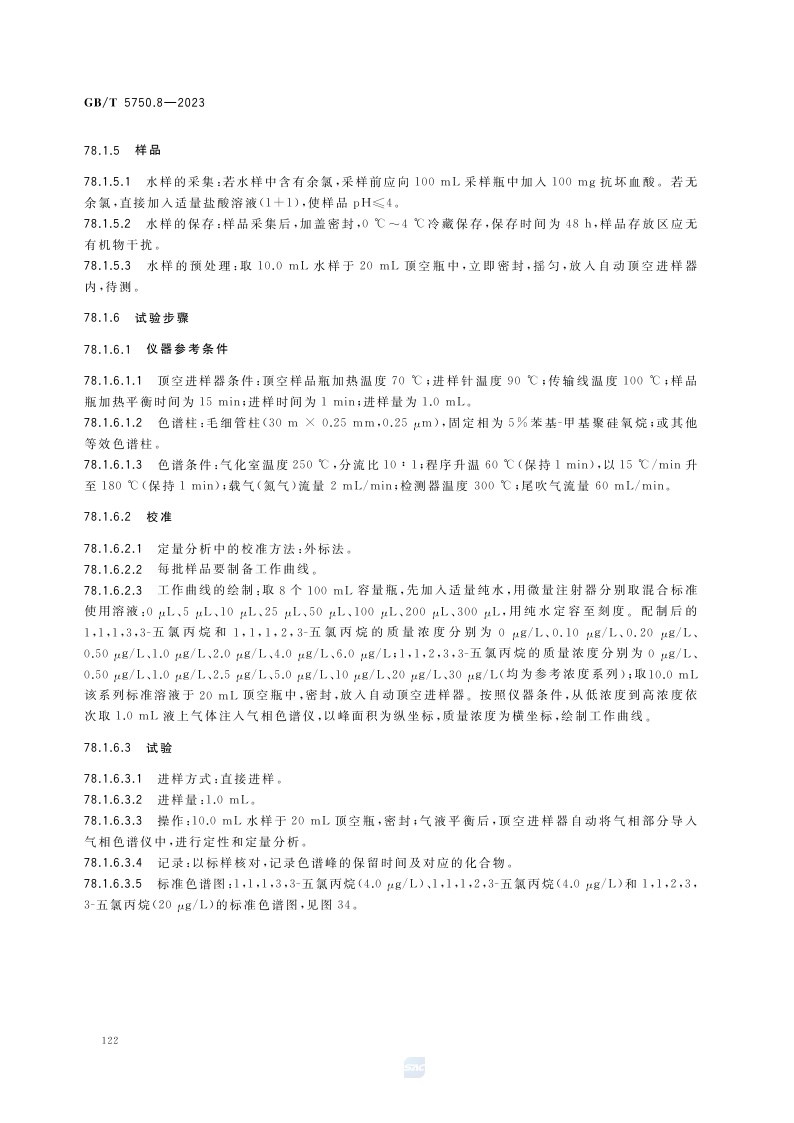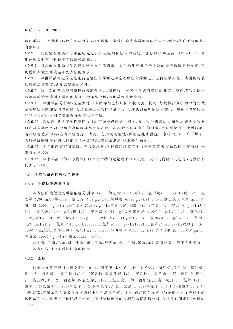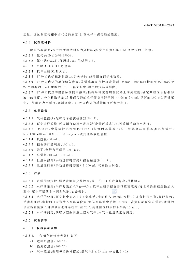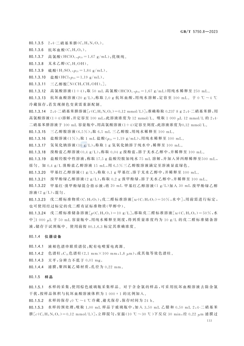 《生活饮用水标准检验方法 第8部分:有机物指标》(GB/T 5750.8-2023)
