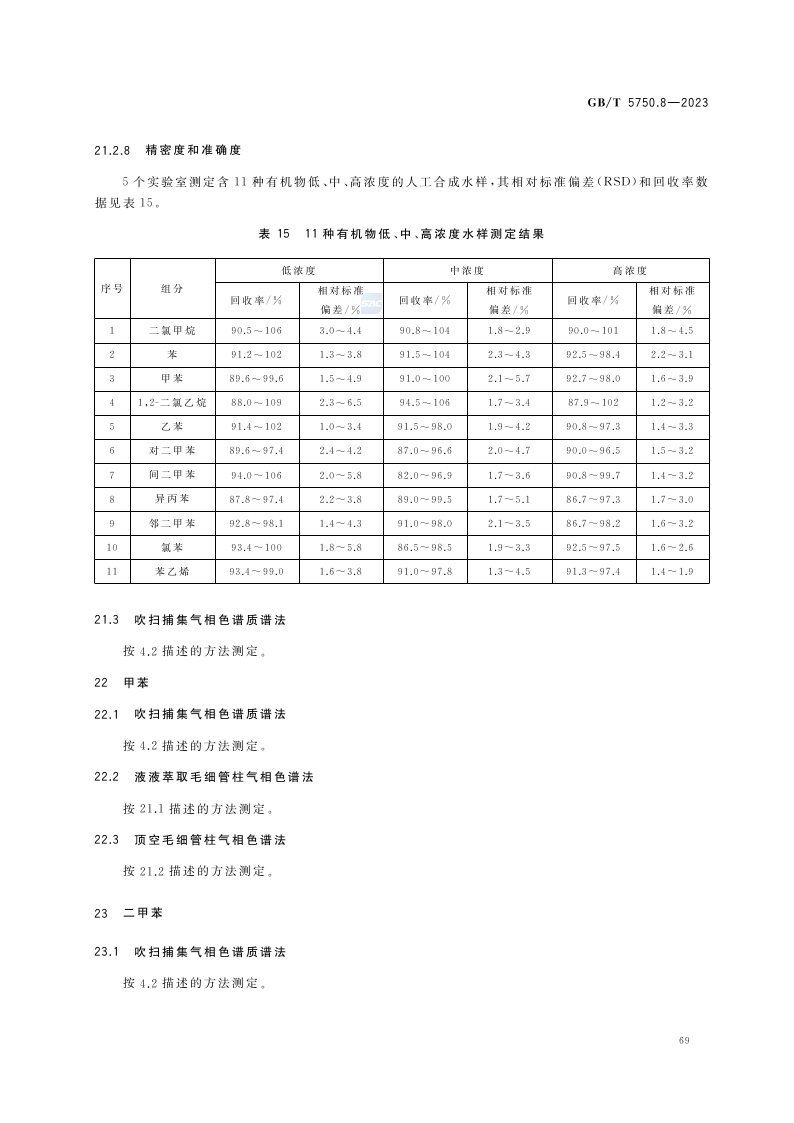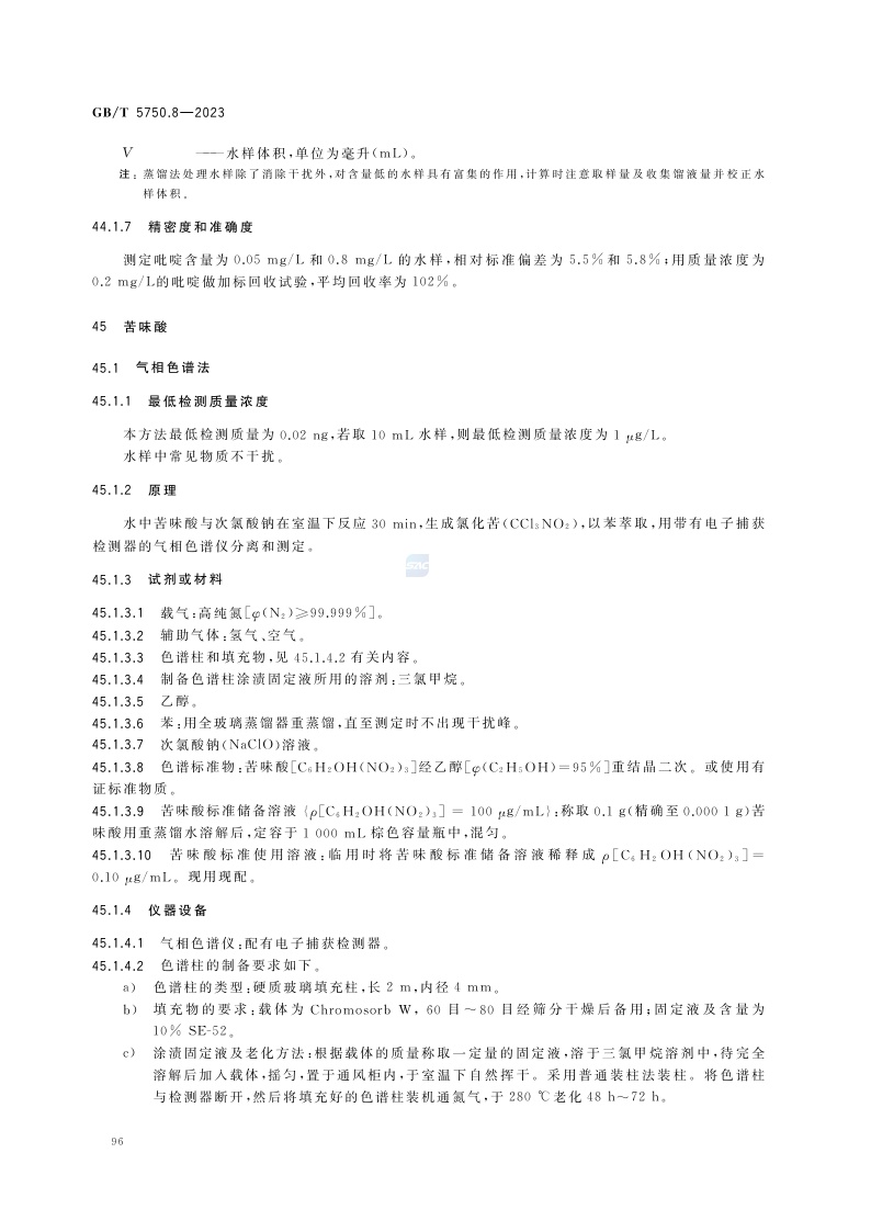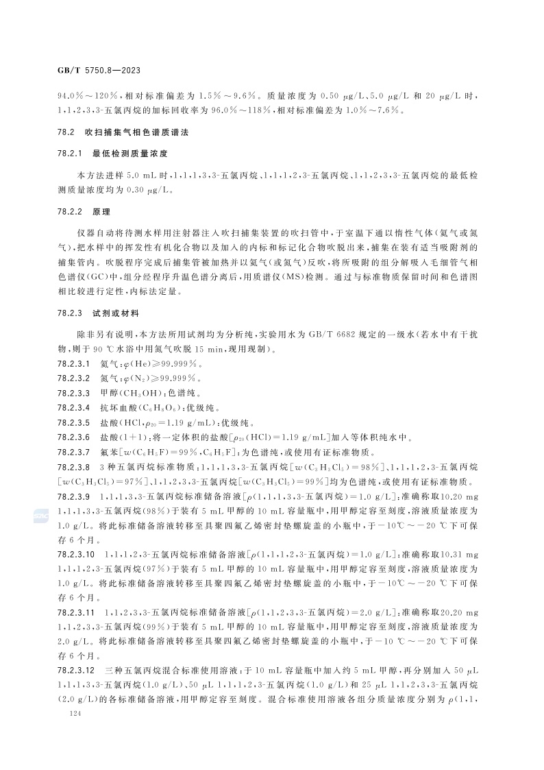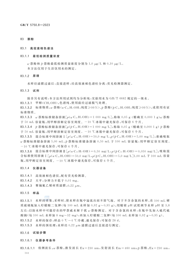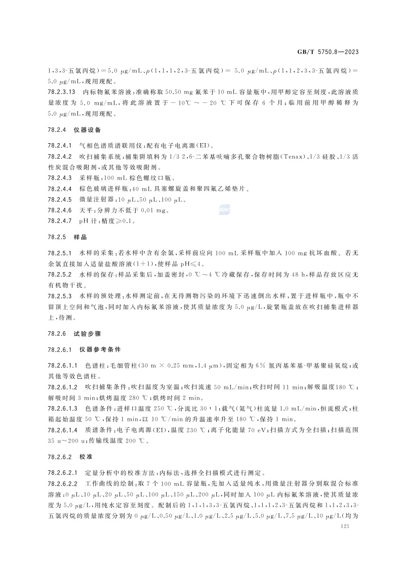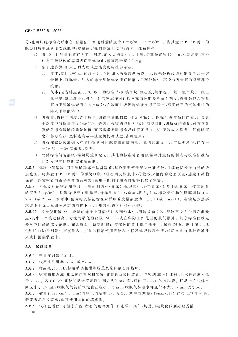 《生活饮用水标准检验方法 第8部分:有机物指标》(GB/T 5750.8-2023)