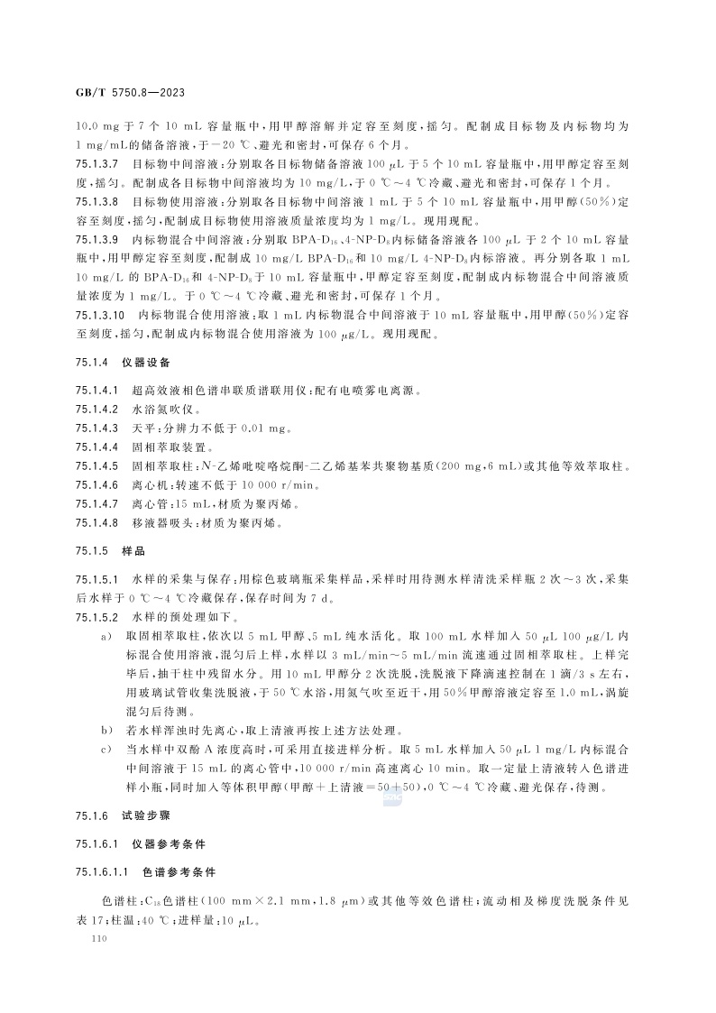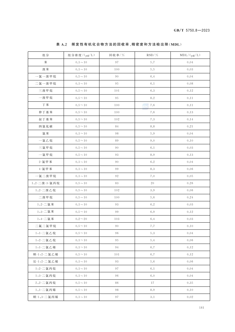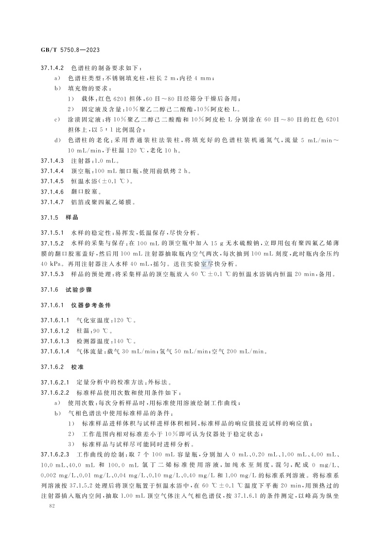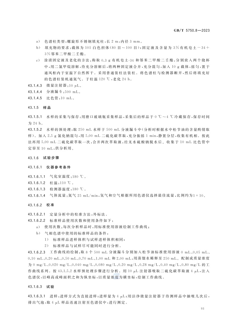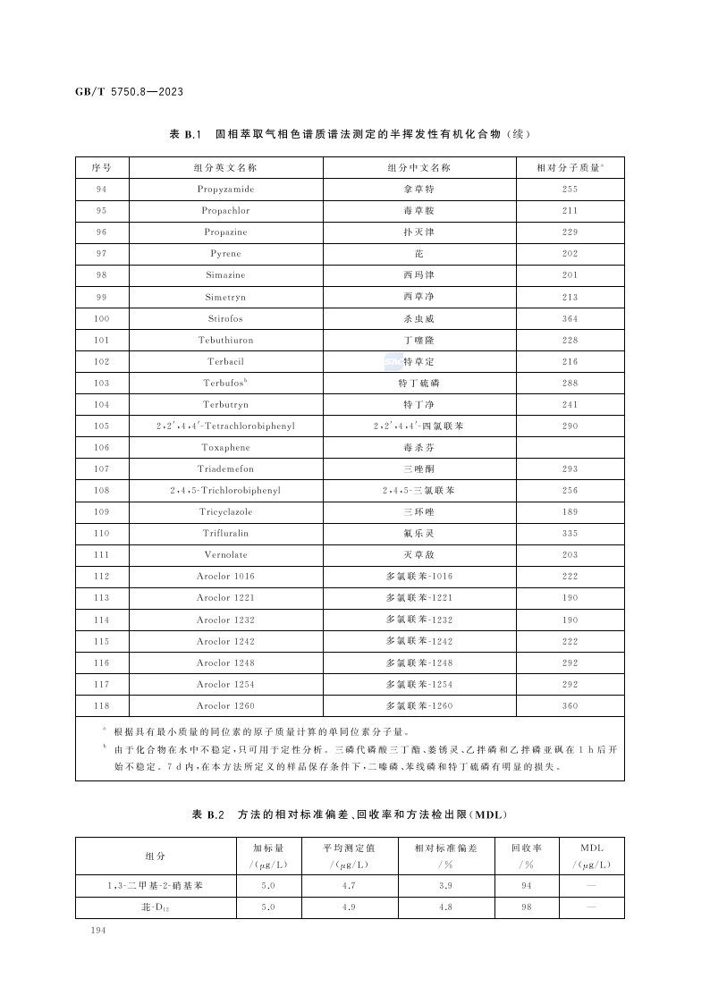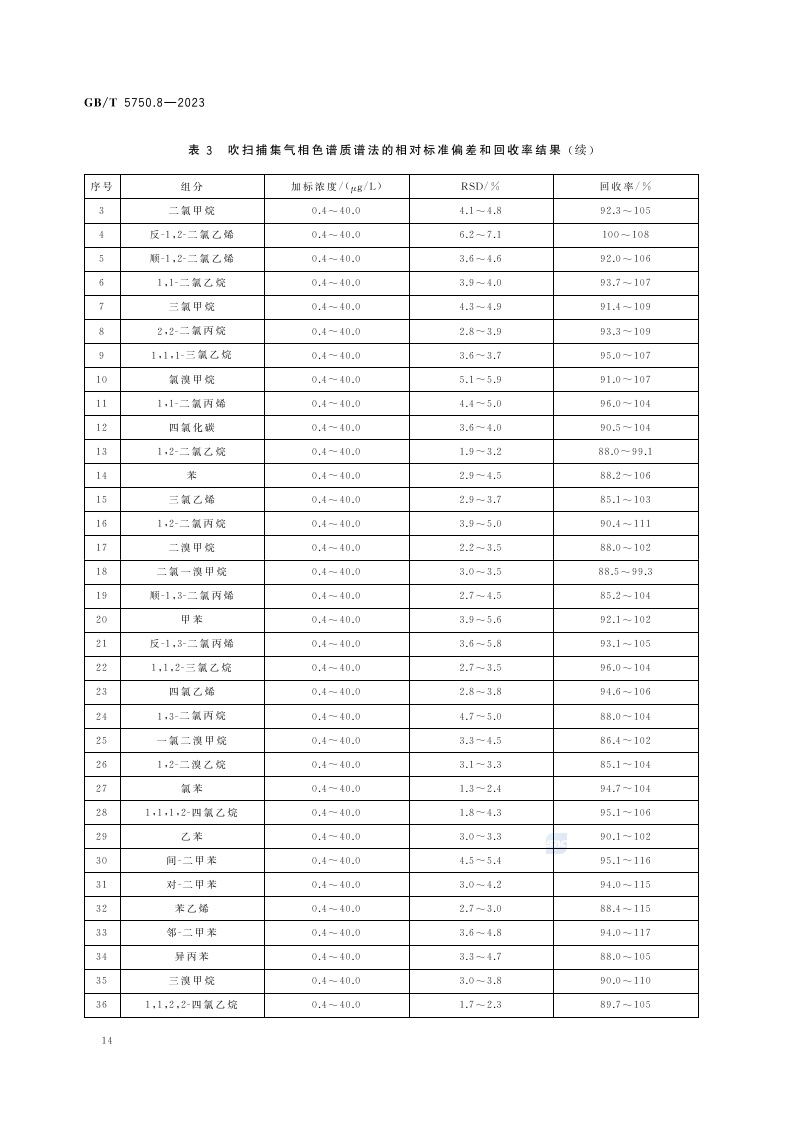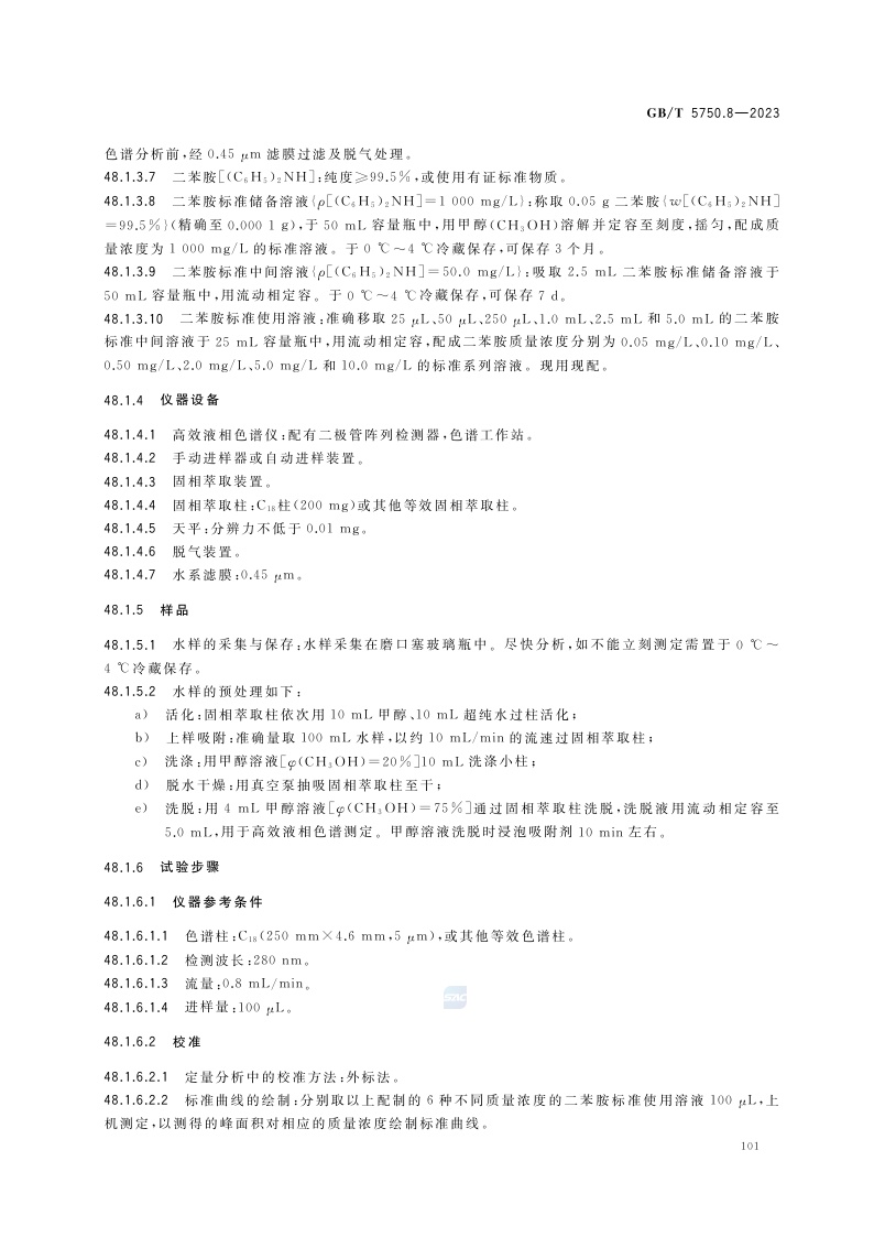 《生活饮用水标准检验方法 第8部分:有机物指标》(GB/T 5750.8-2023)